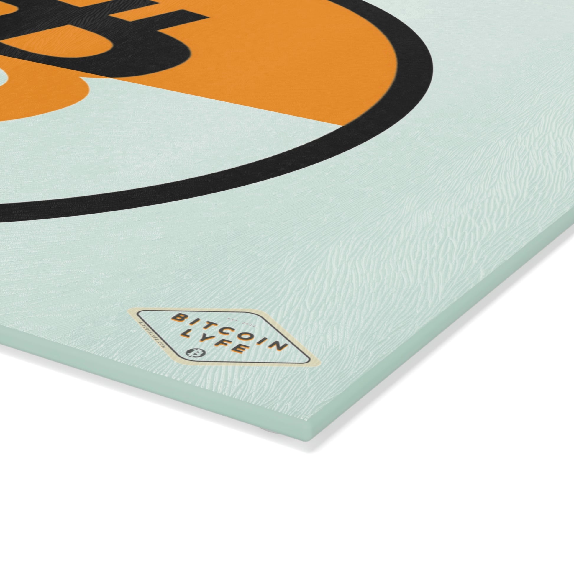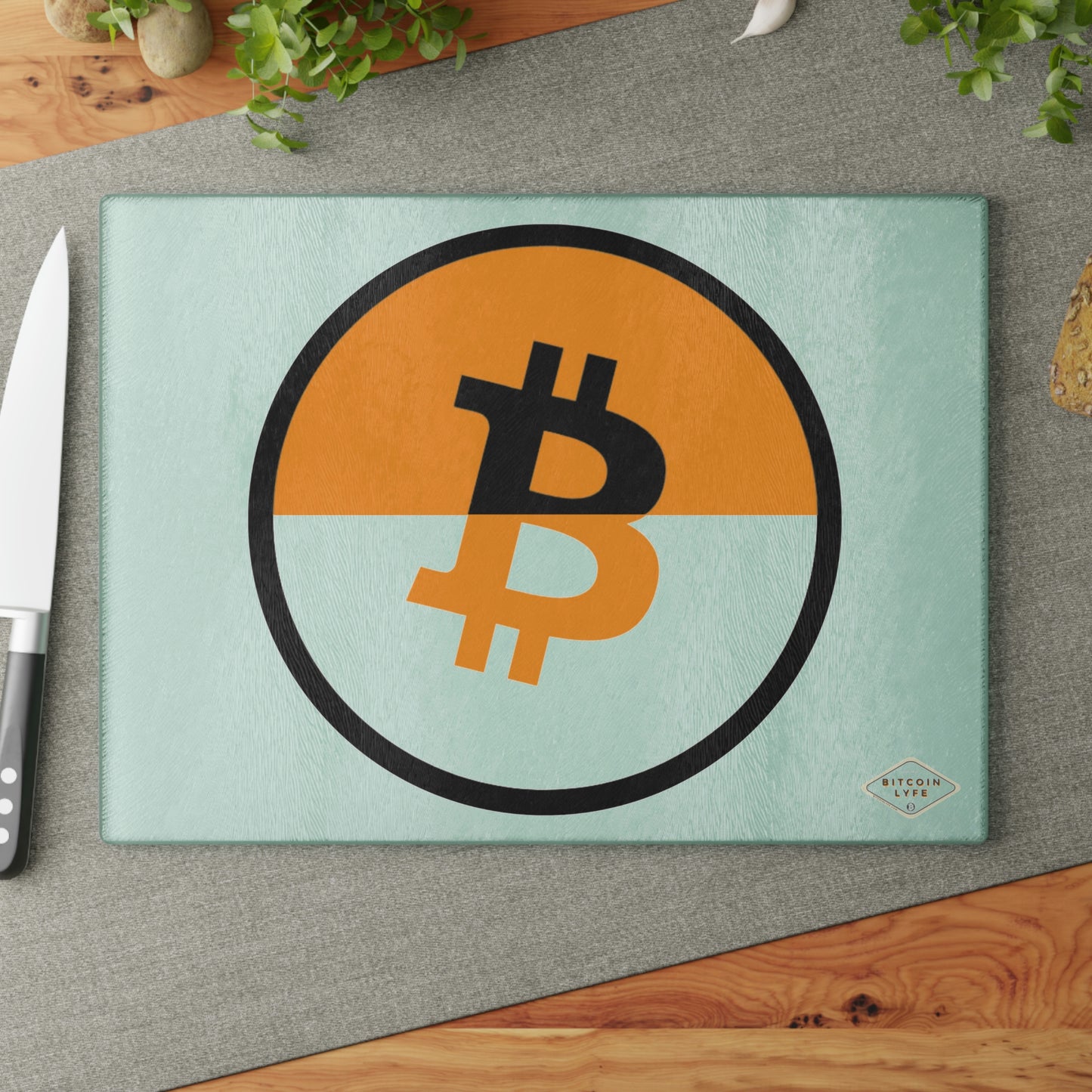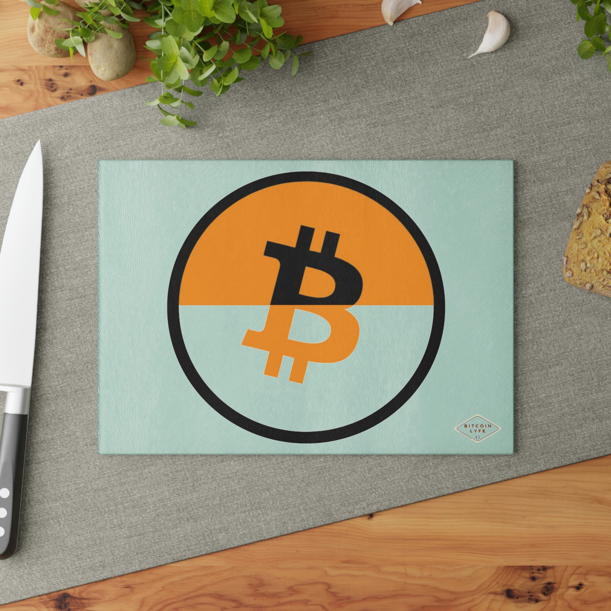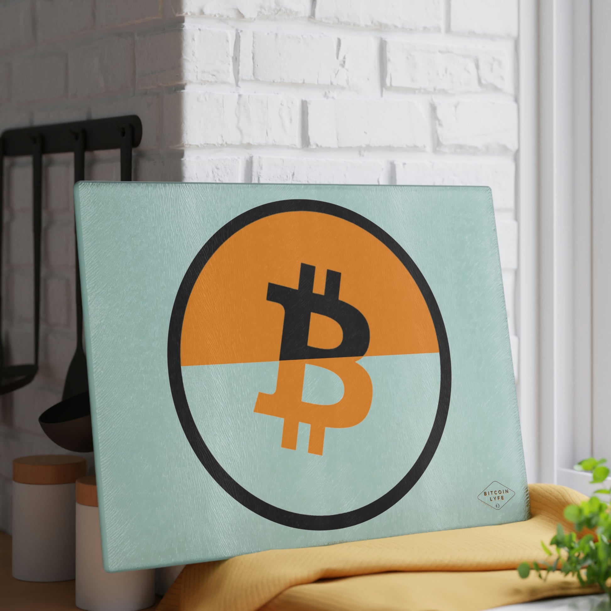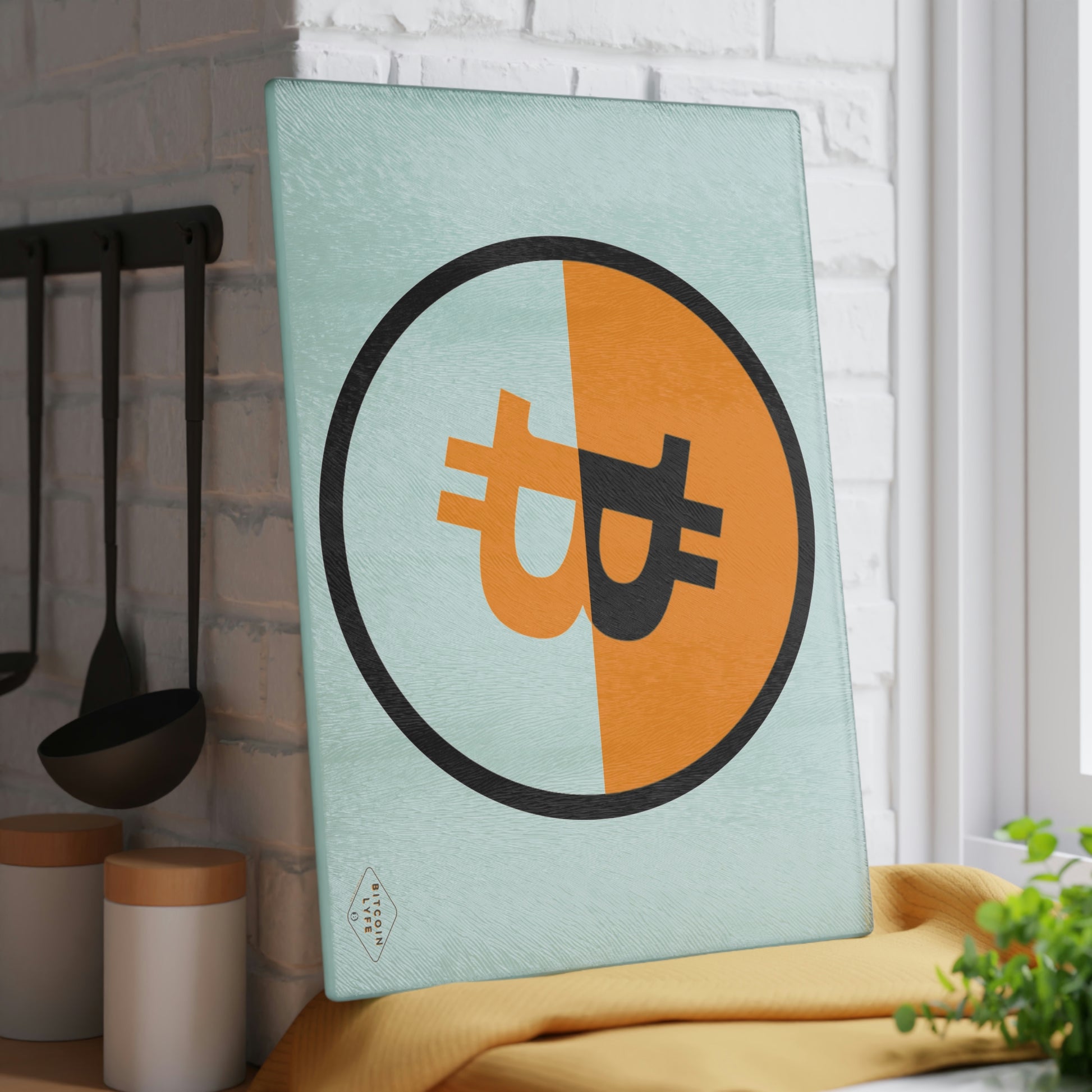 Bring a touch of character into any kitchen with this Bitcoin glass cutting board. Its tampered glass material is robust and helps prepare many a tasty meal for a long time to come. The textured surface makes it an ideal chopping, slicing, and dicing area. Available in two sizes: 8" x 11" and 11" x 15".