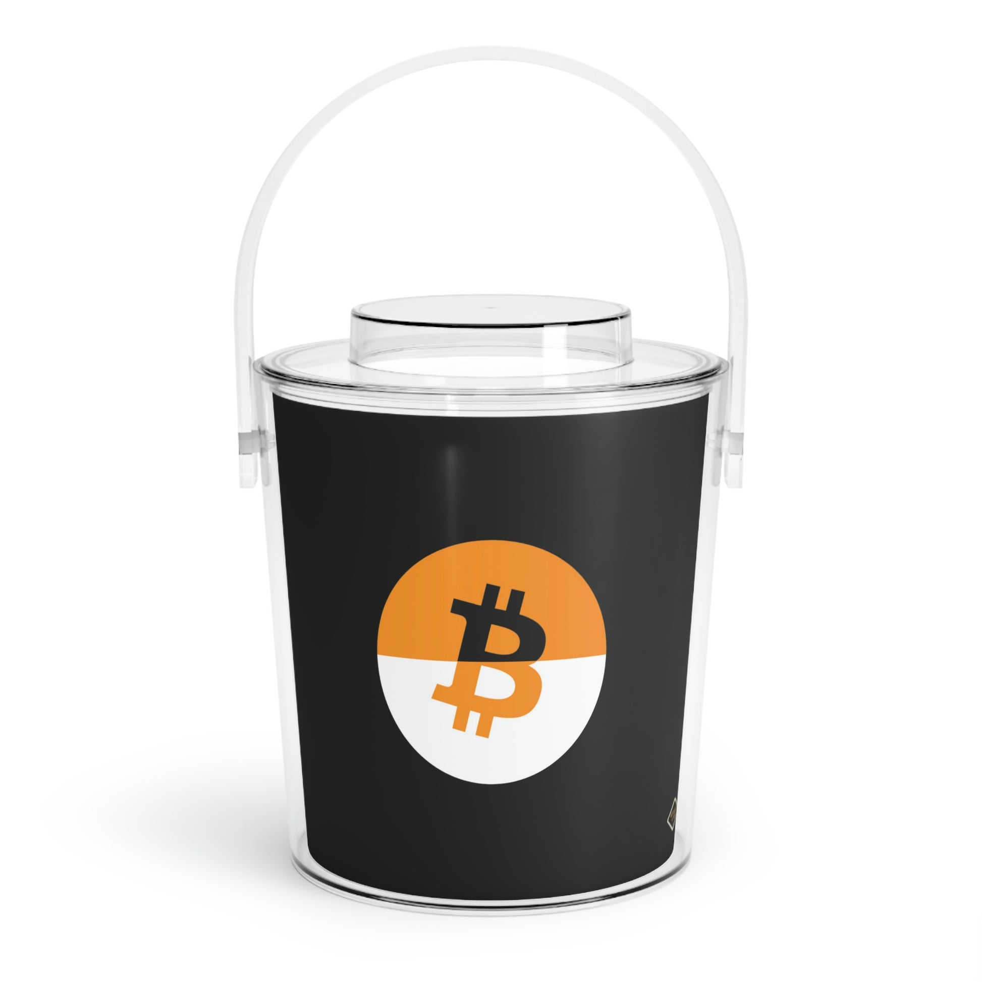 Add this Bitcoin touch to any gathering that requires frosty beverages. Each Bitcoin acrylic ice bucket comes with its own tongs and has a 3 QT (96oz) capacity. What's more, you also get an easily removable lid that adds convenient handling to the mix.