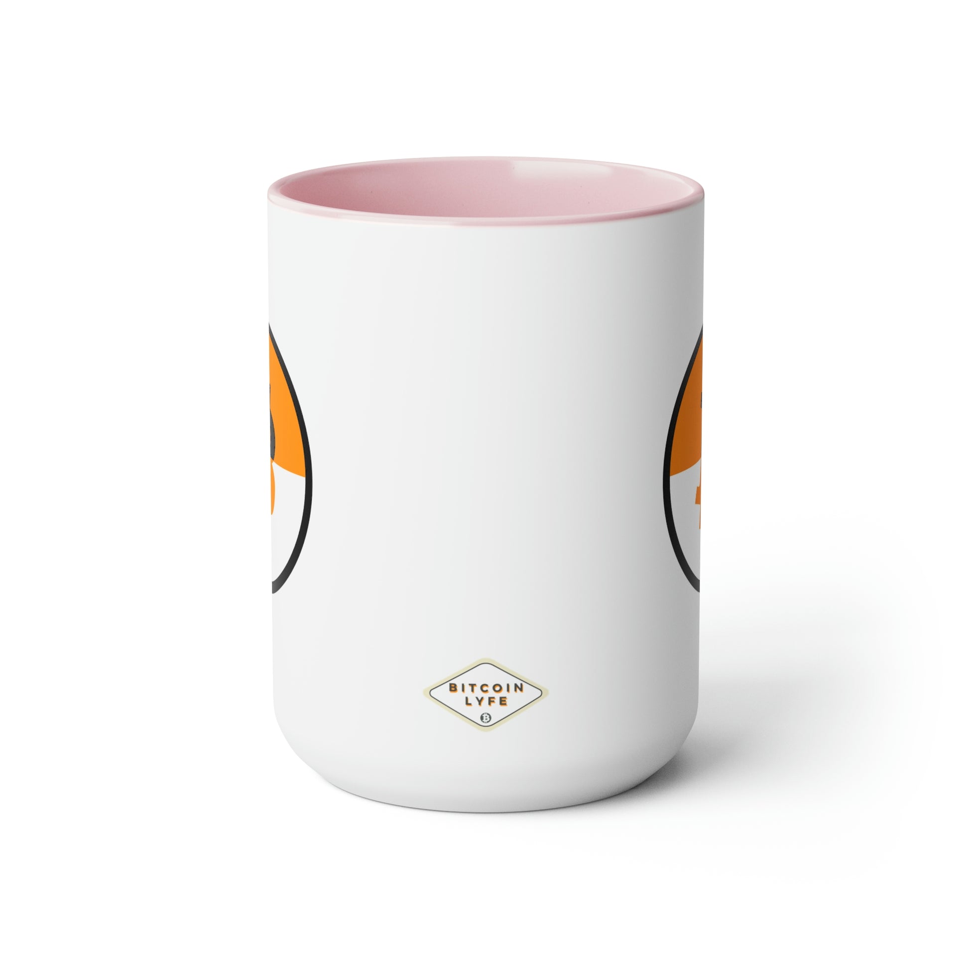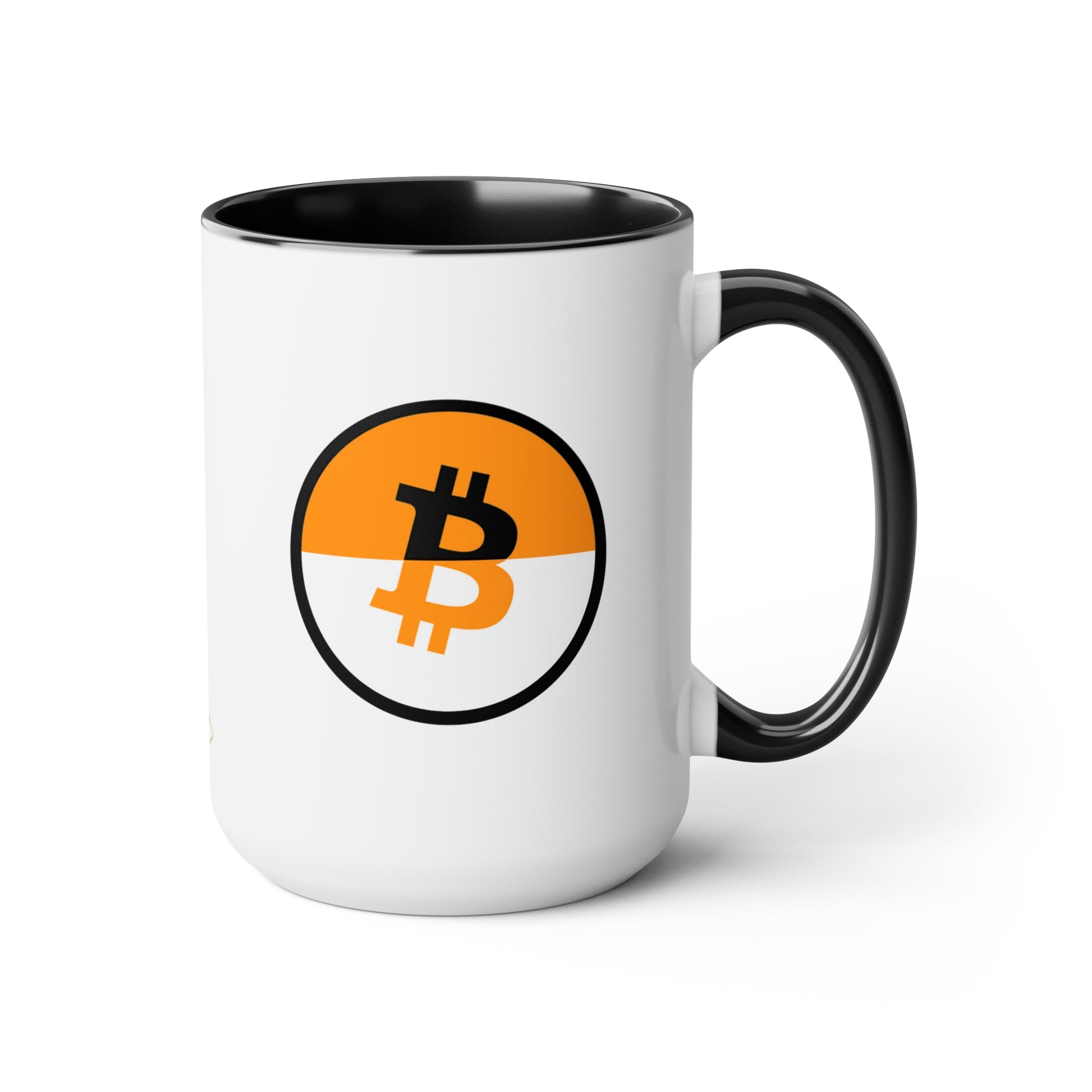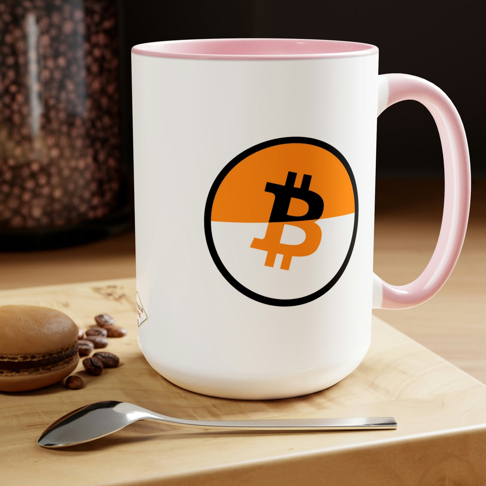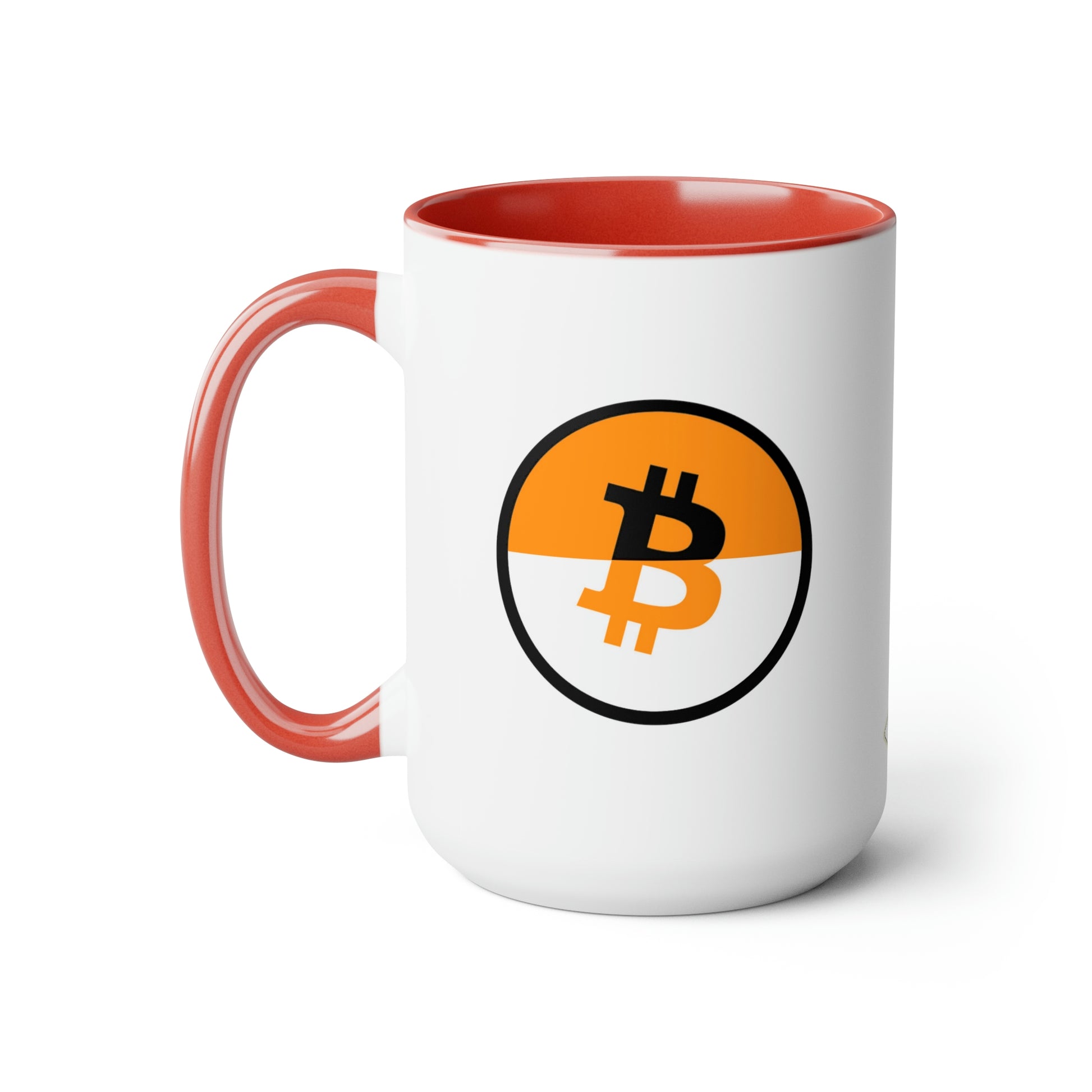 Here to bring big gulps of coffee and style, these two-tone coffee mugs help you start the day just right while helping you to express your support for Bitcoin, recognizing the importance of Bitcoin's developer. Choose between different color options to best complement your designs. Each mug comes with a colored handle, a colored interior, and a classy, glossy finish so that your mugs become an instant favorite.