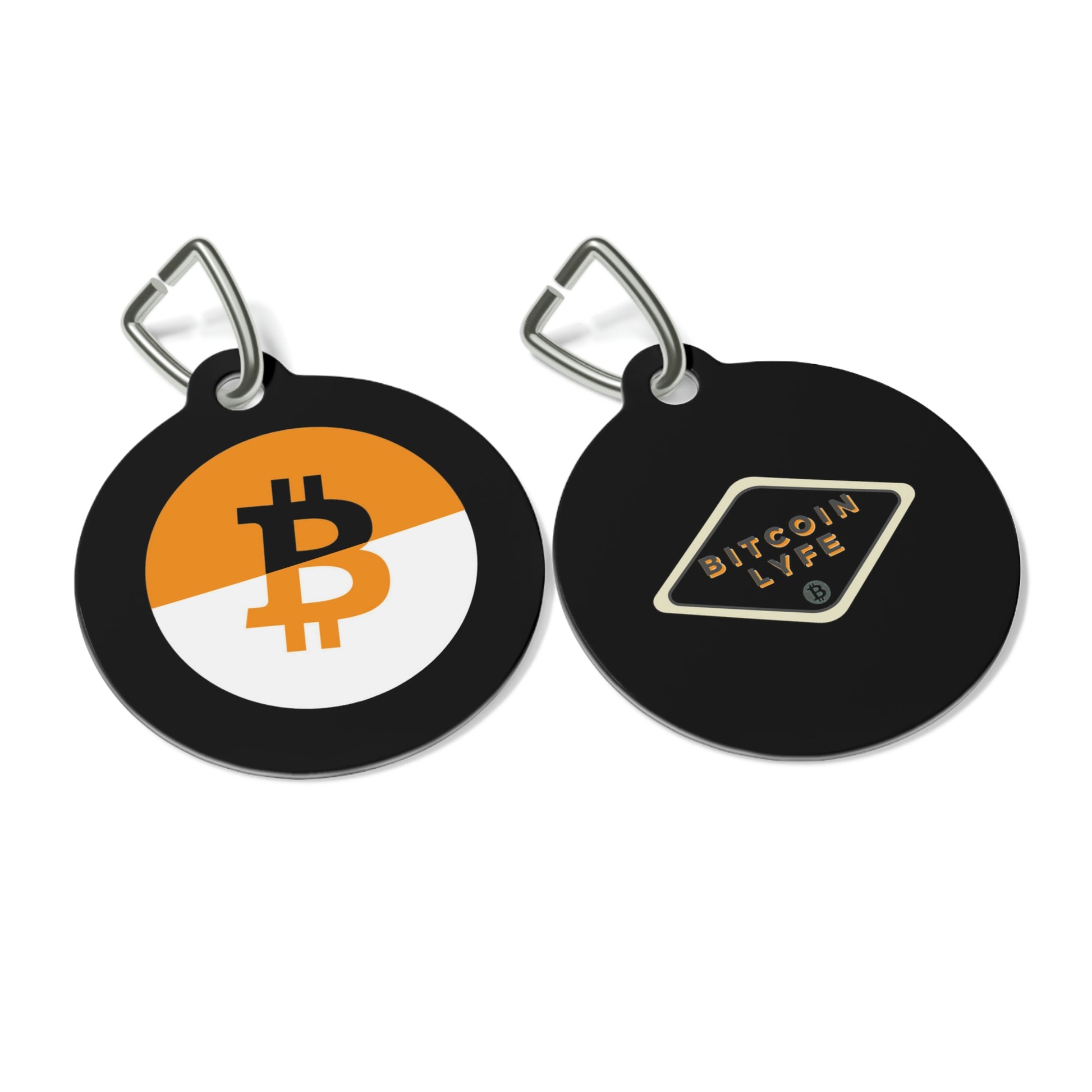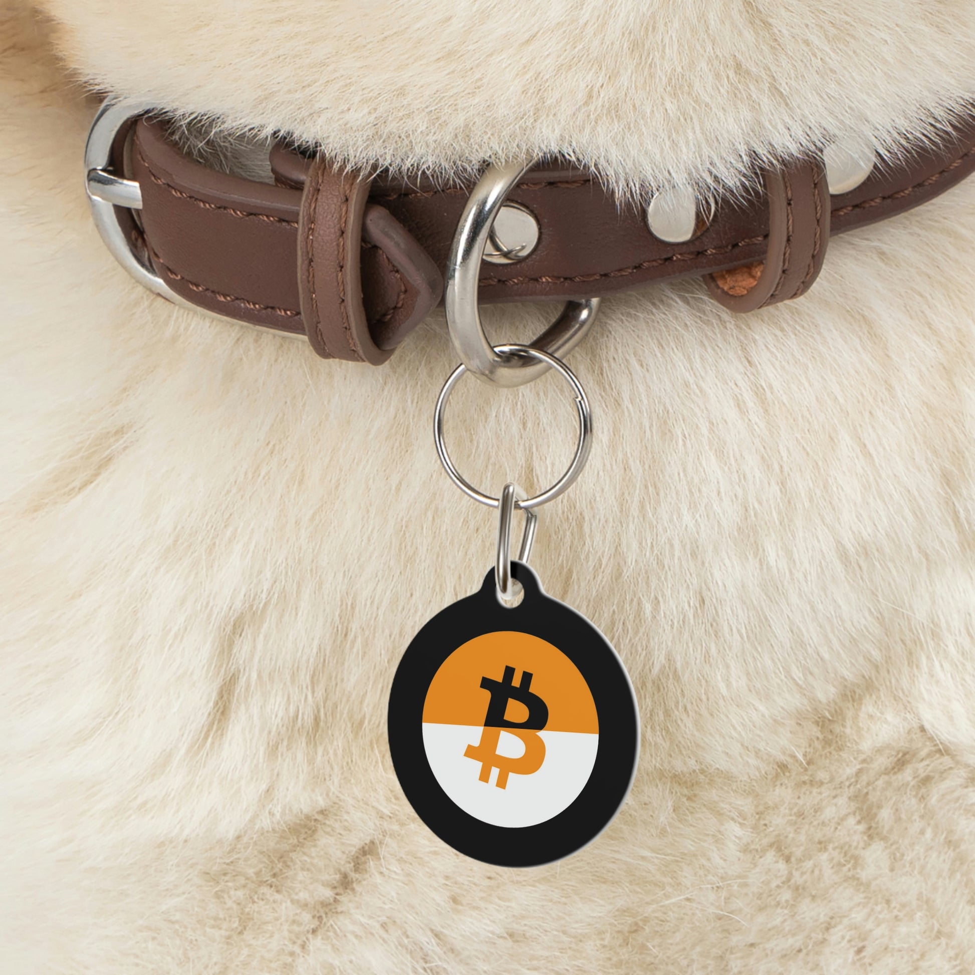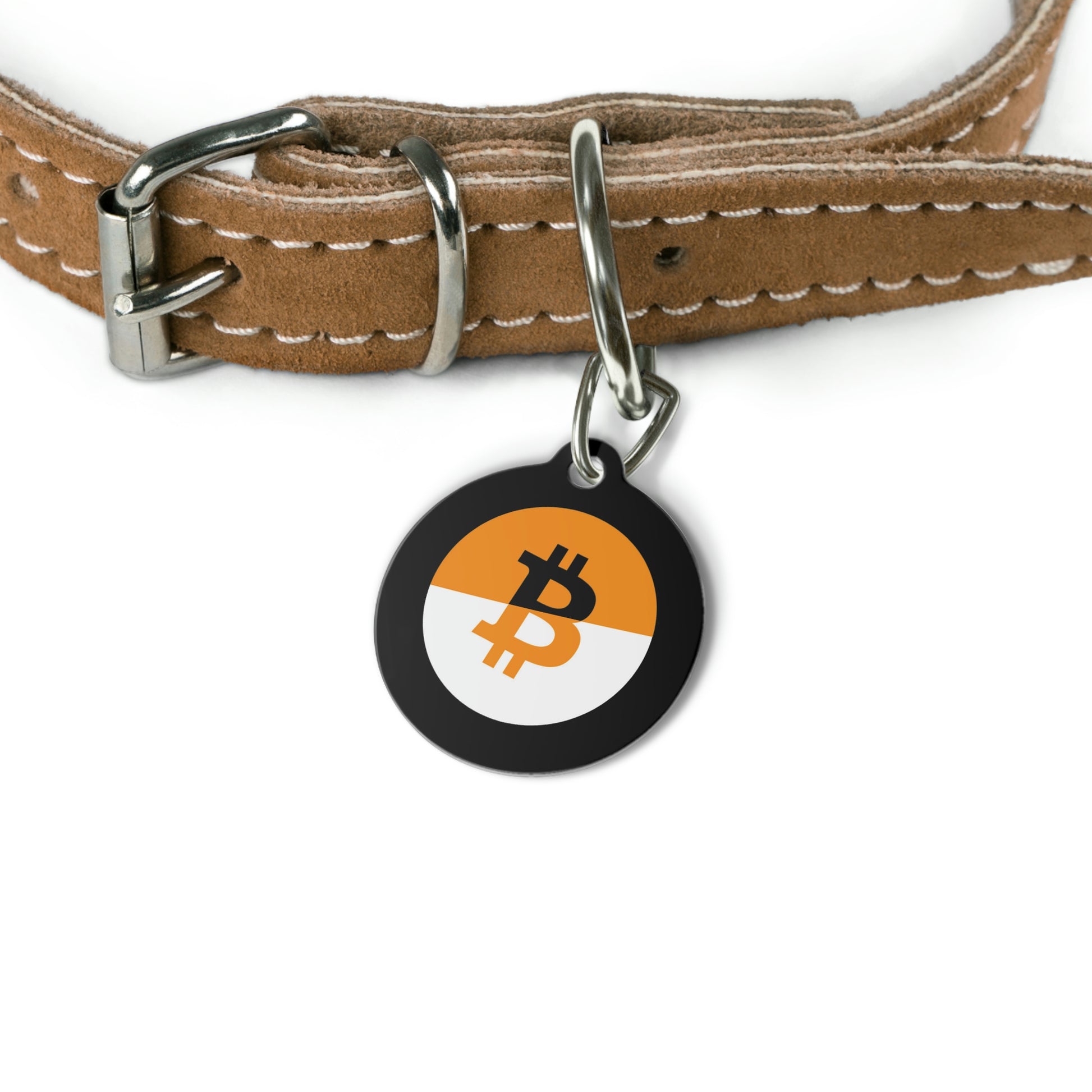 BItcoin pet tags provide a fresh way to spice up a furry friend's collar. The tag and clip are both made of metal. This increased durability comes in handy, as collar pieces can snag on brush, corners, etc.