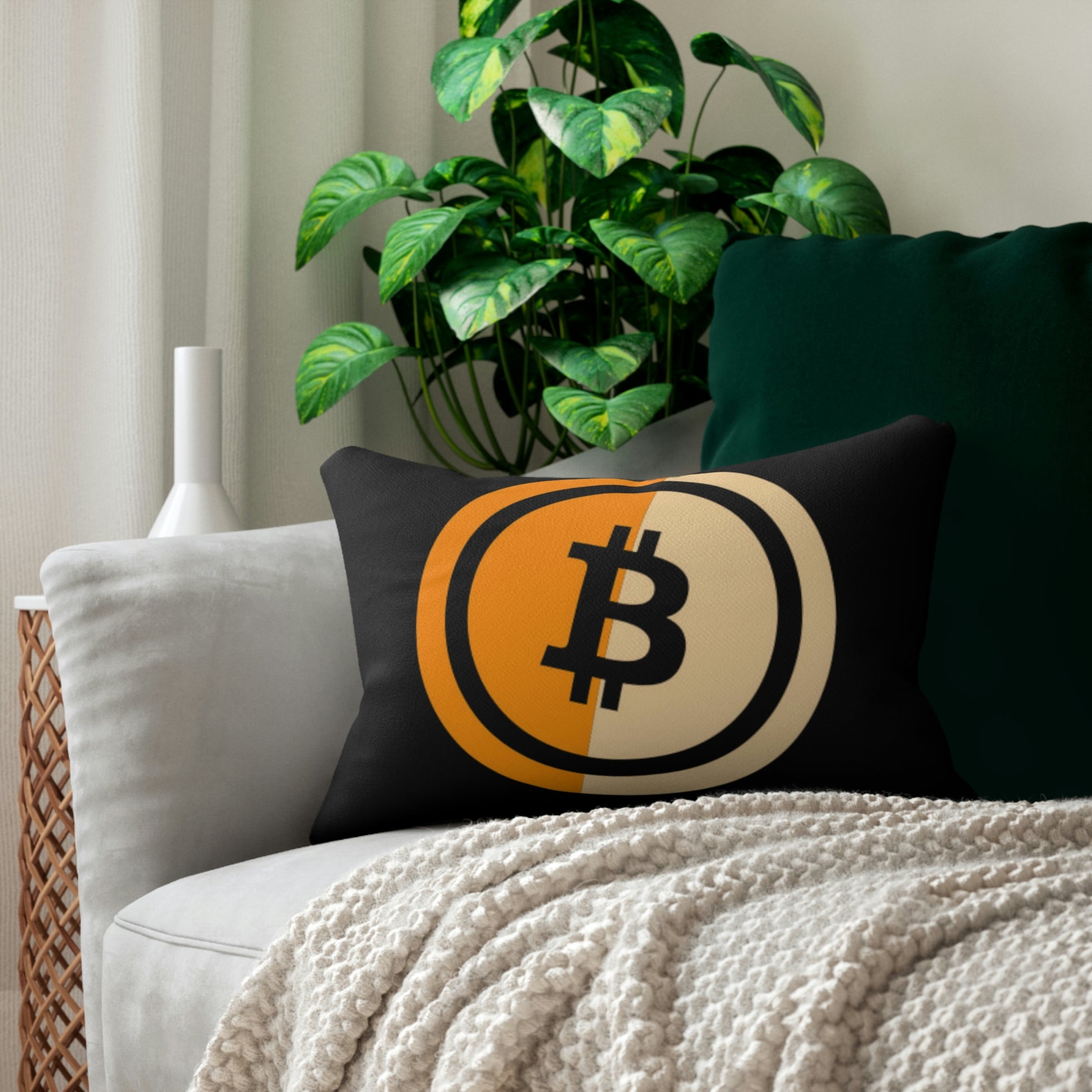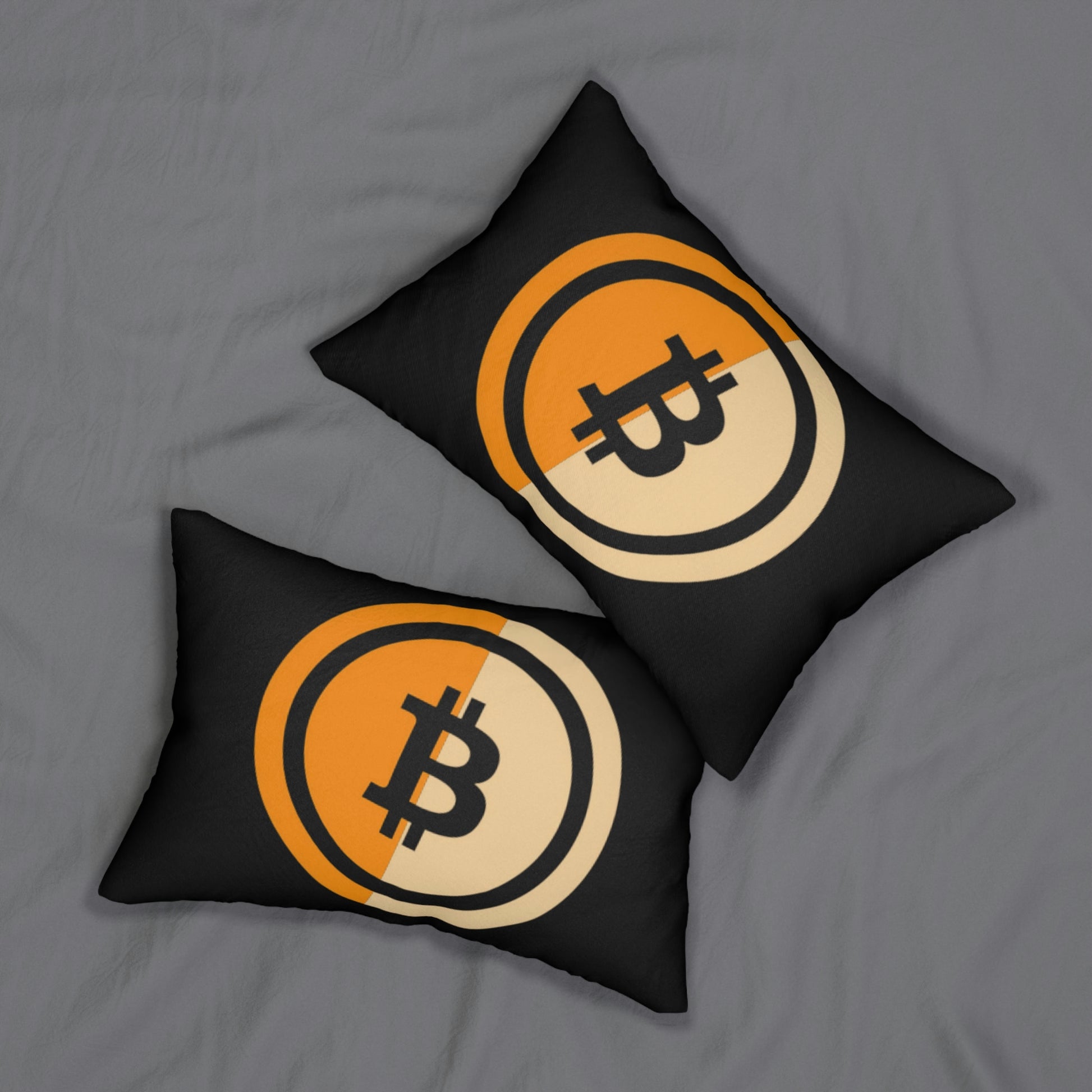 Add this beautiful spun-polyester Bitcoin lumbar pillow to your home decor pieces today. It comes with a stuffing pillow included. The casing is made of a spun polyester fabric that is inherently mildew and water-resistant. You can place your design on both sides or have a different design on each side. It has a hidden beige zipper to maintain a finished and stylish look.