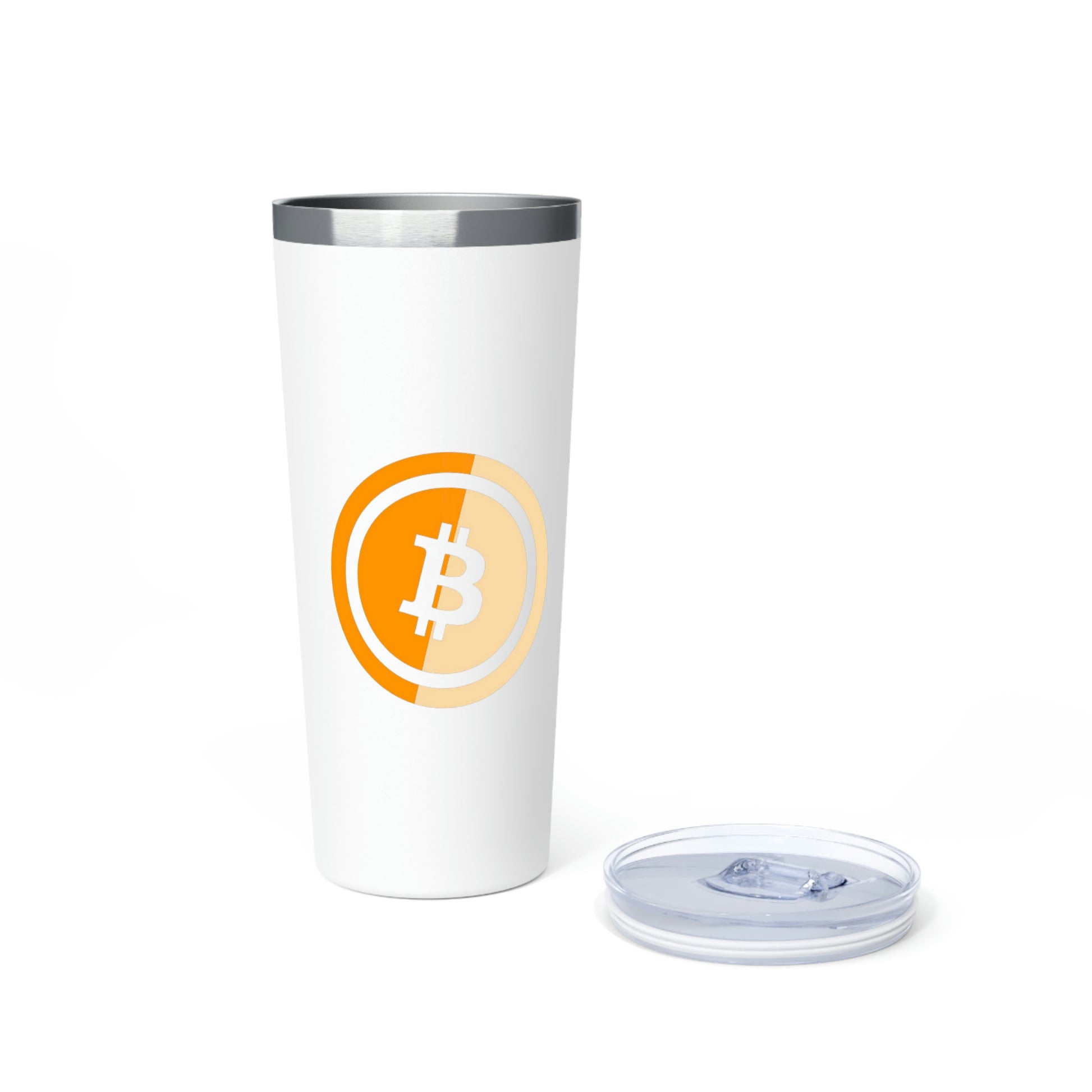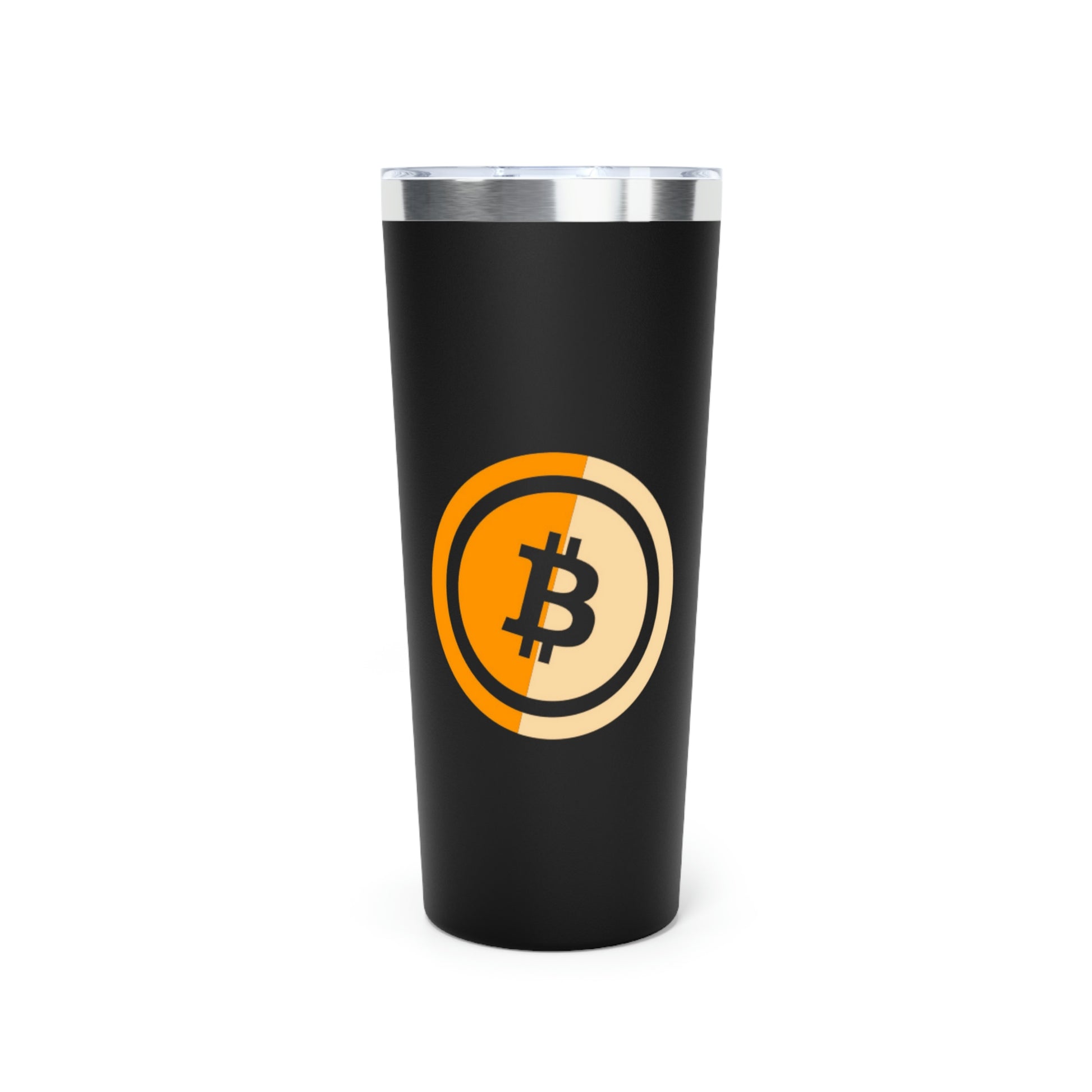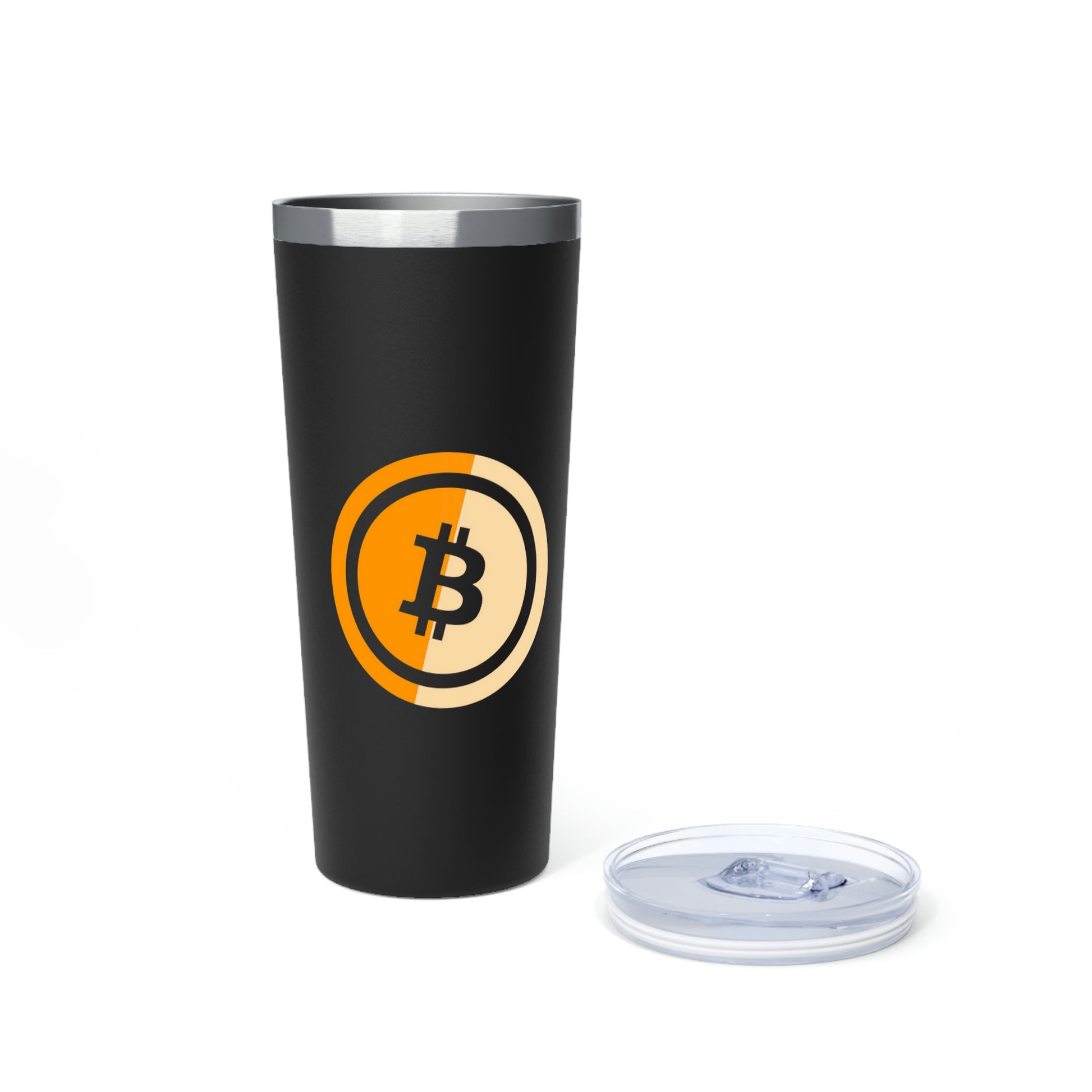 Stay hydrated in style on a daily basis with this Bitcoin tumbler. With a 22oz capacity and copper vacuum insulation, our tumbler keeps your favorite beverages refreshingly cold for 24 hours, and soothingly hot for up to 6. Its stainless steel exterior is condensation-resistant while the powder coating adds extra style points.