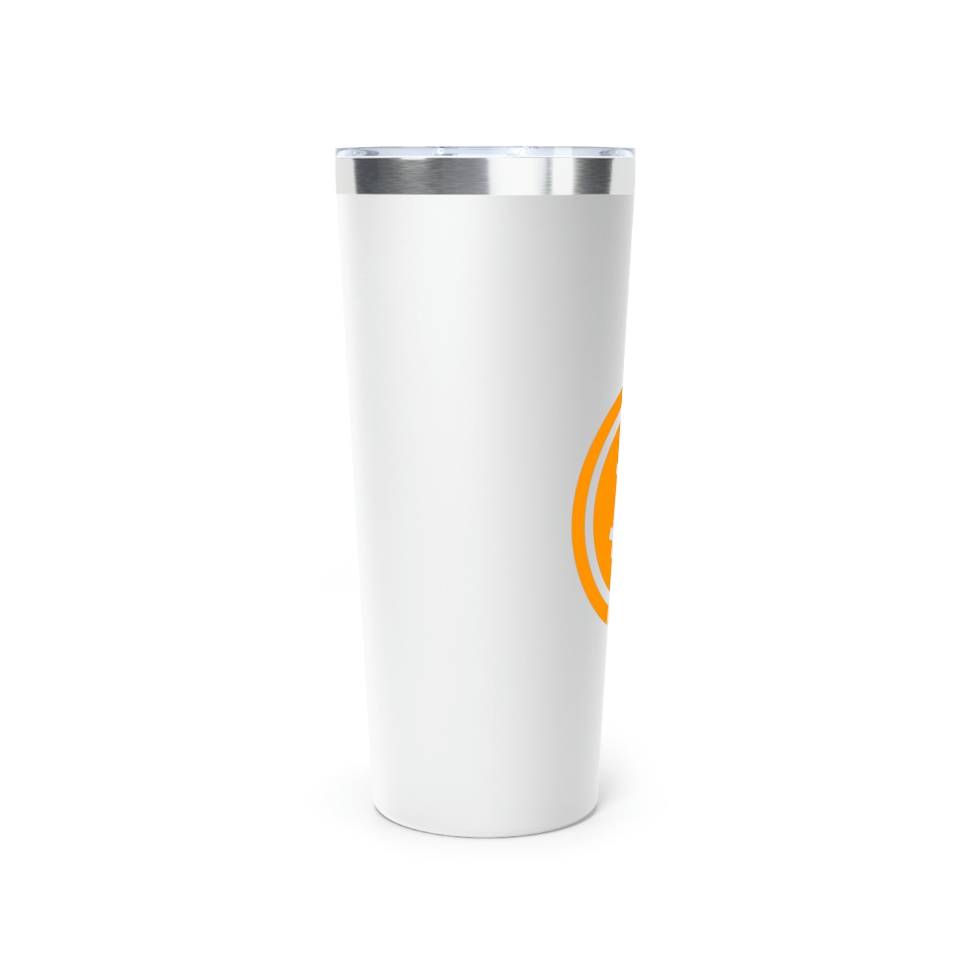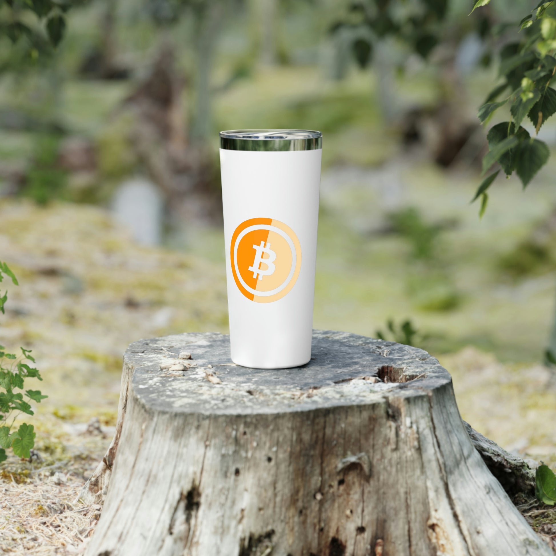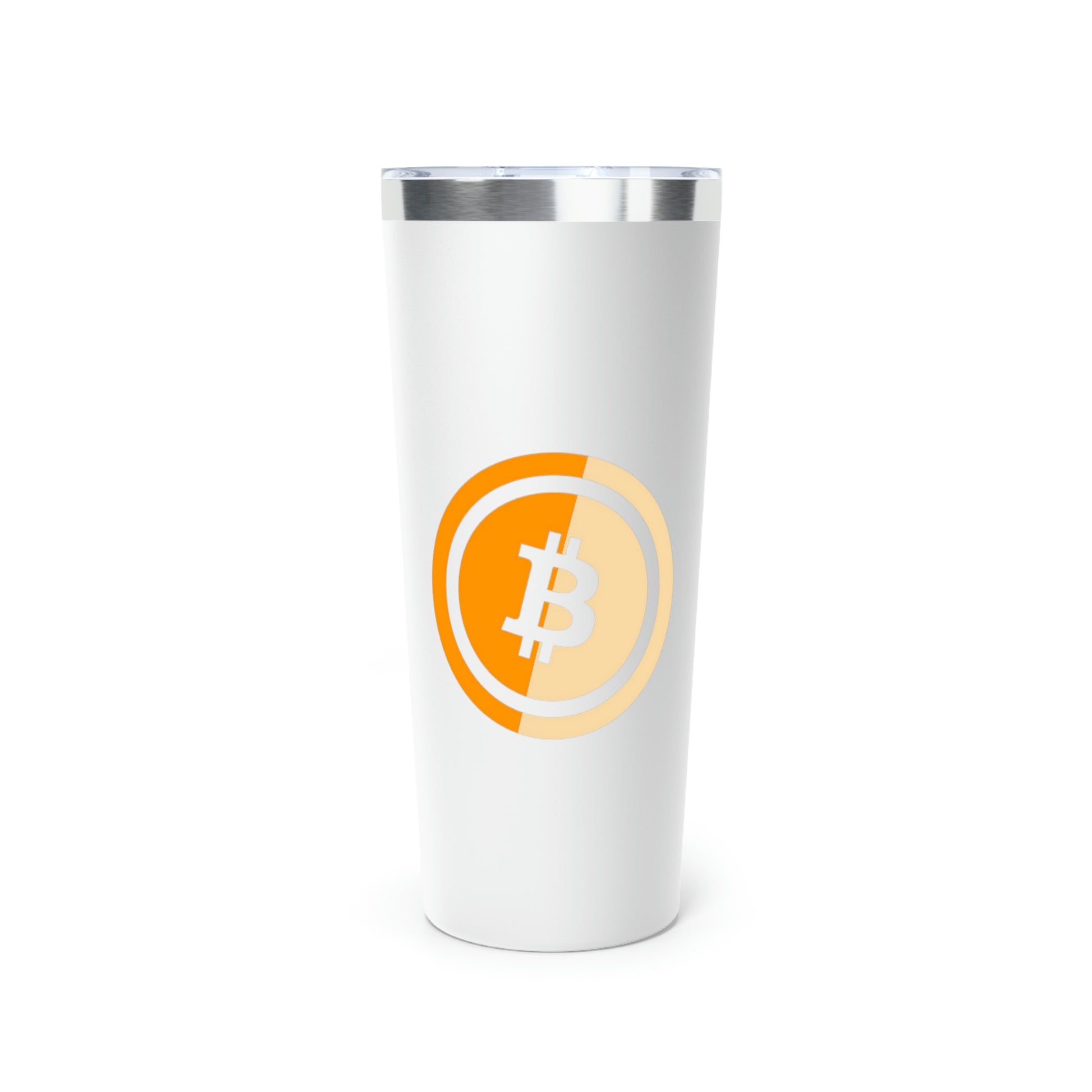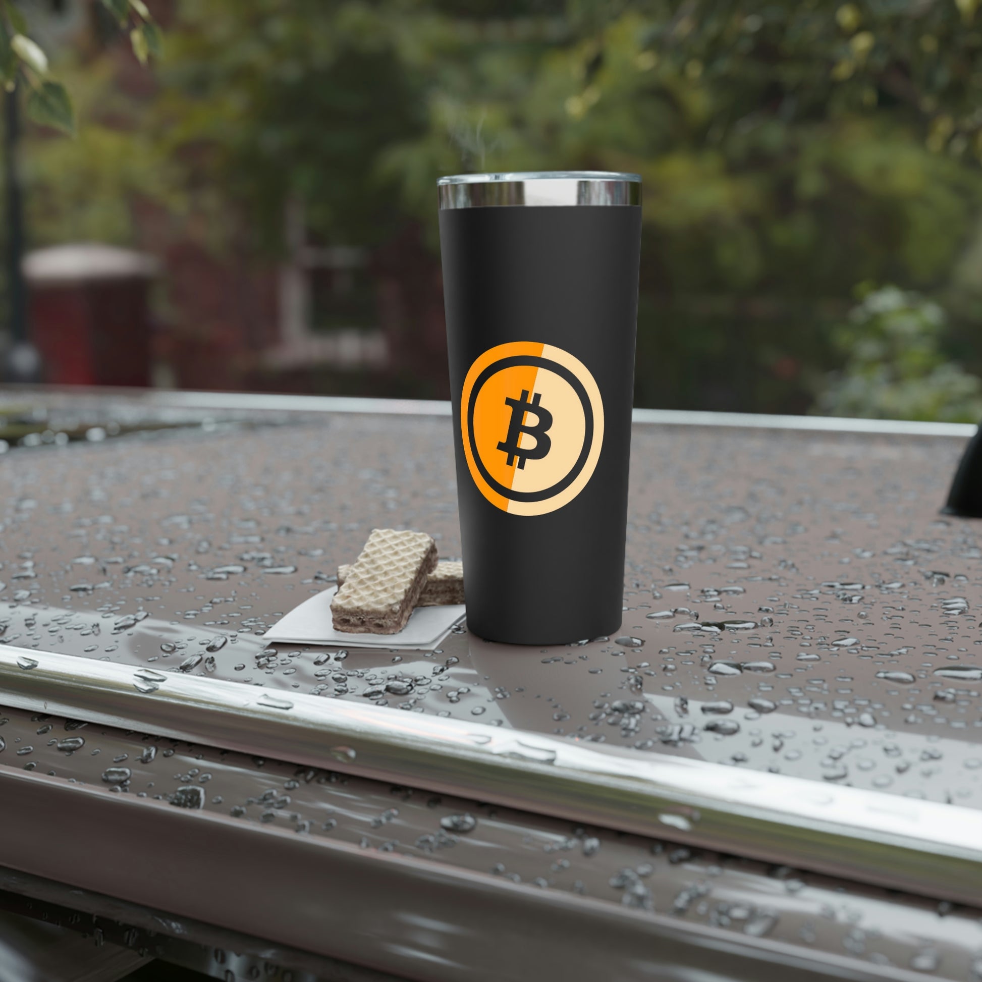 Stay hydrated in style on a daily basis with this Bitcoin tumbler. With a 22oz capacity and copper vacuum insulation, our tumbler keeps your favorite beverages refreshingly cold for 24 hours, and soothingly hot for up to 6. Its stainless steel exterior is condensation-resistant while the powder coating adds extra style points.
