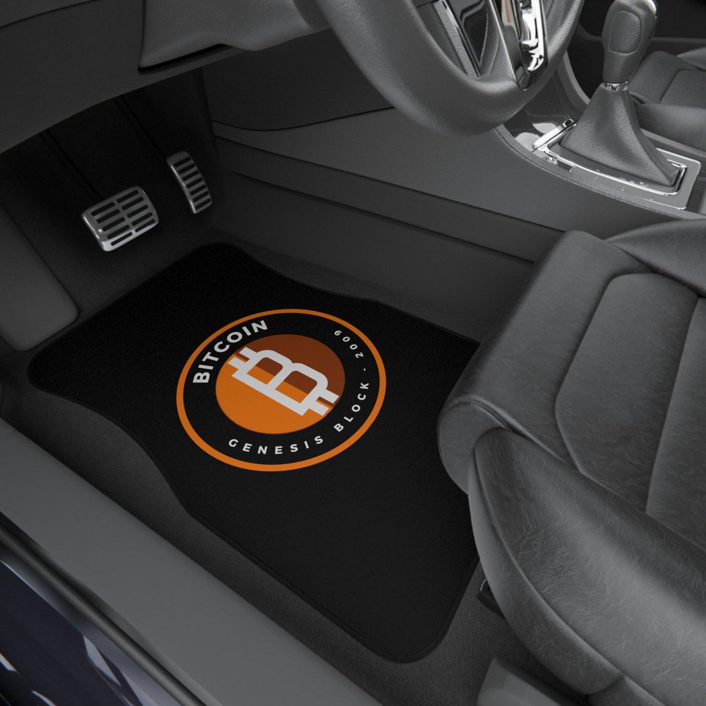 Here to add a custom touch of character to any car while showing off your interest in Bitcoin. Available in 2-packs, these car mats feature a non-slip rubber backing and a 20oz polyester needle punch surface.