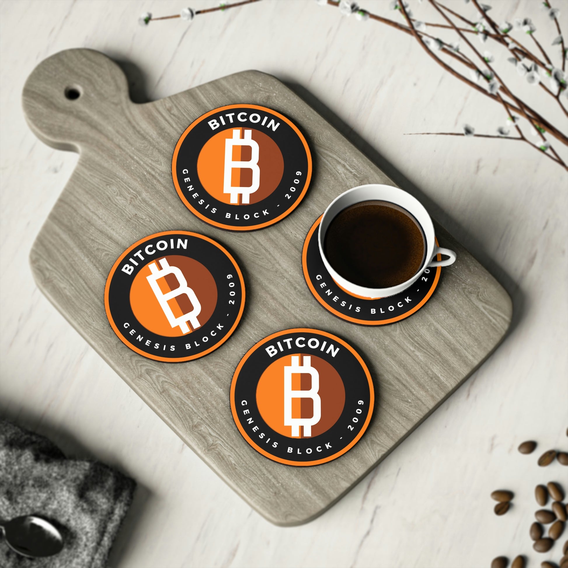 Who wouldn't want a set of Bitcoin coasters to use and have on display beneath you favorite beverages?!