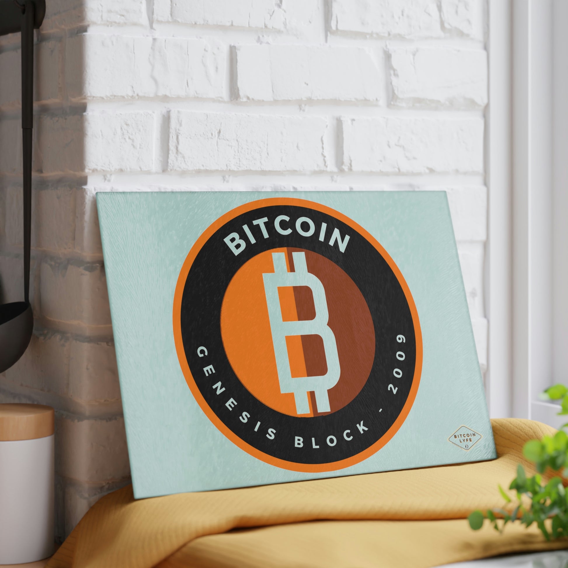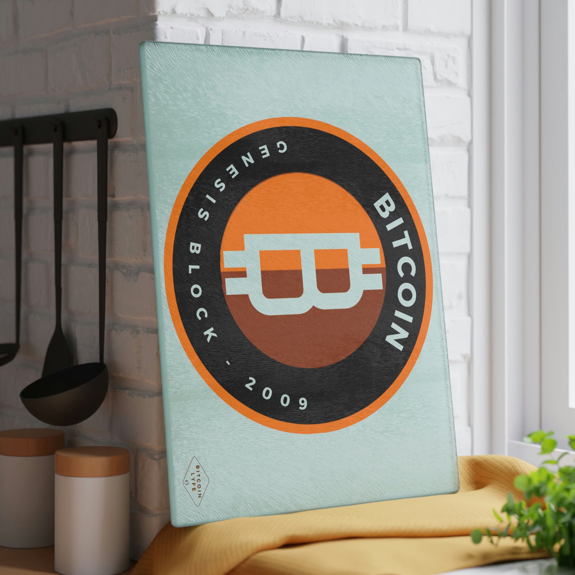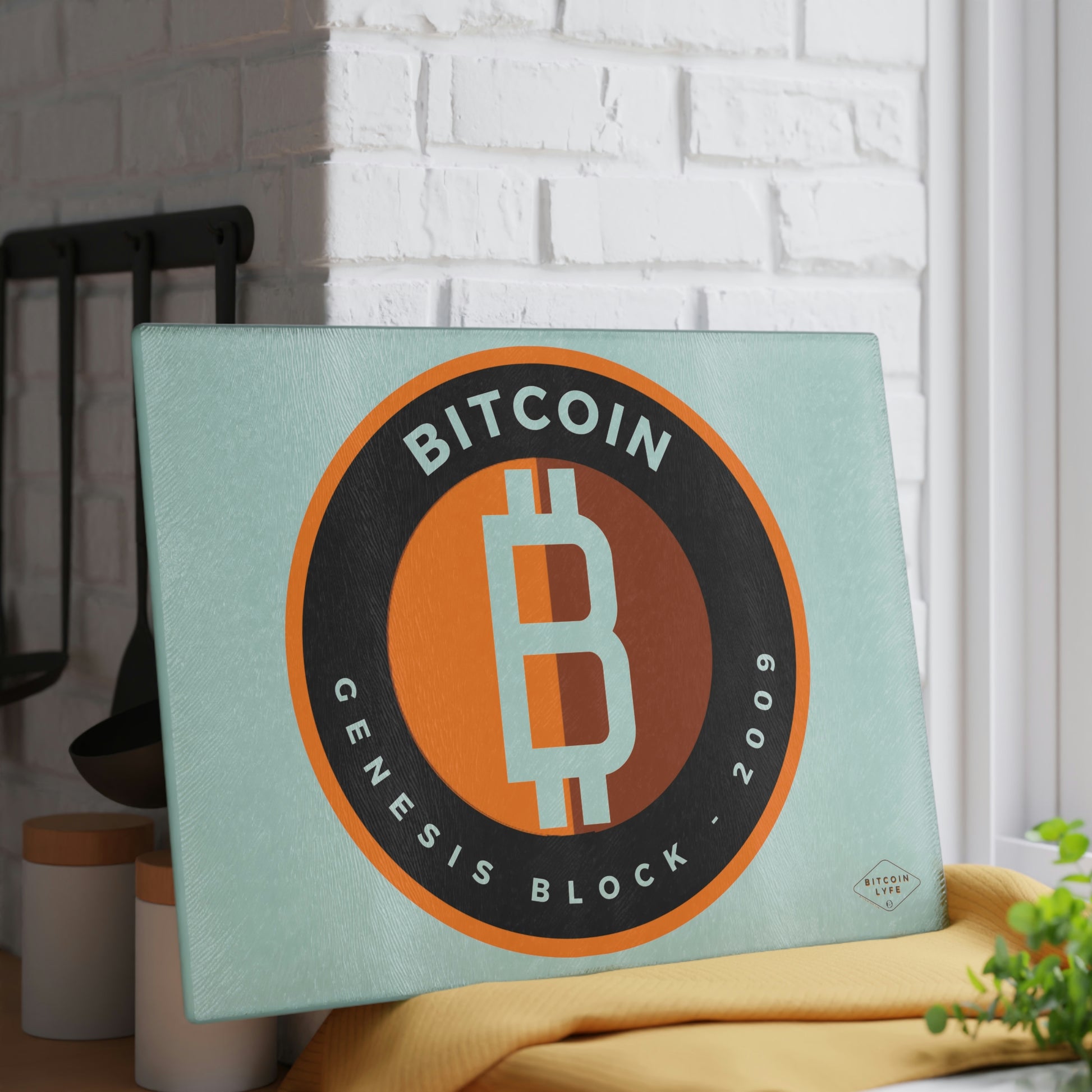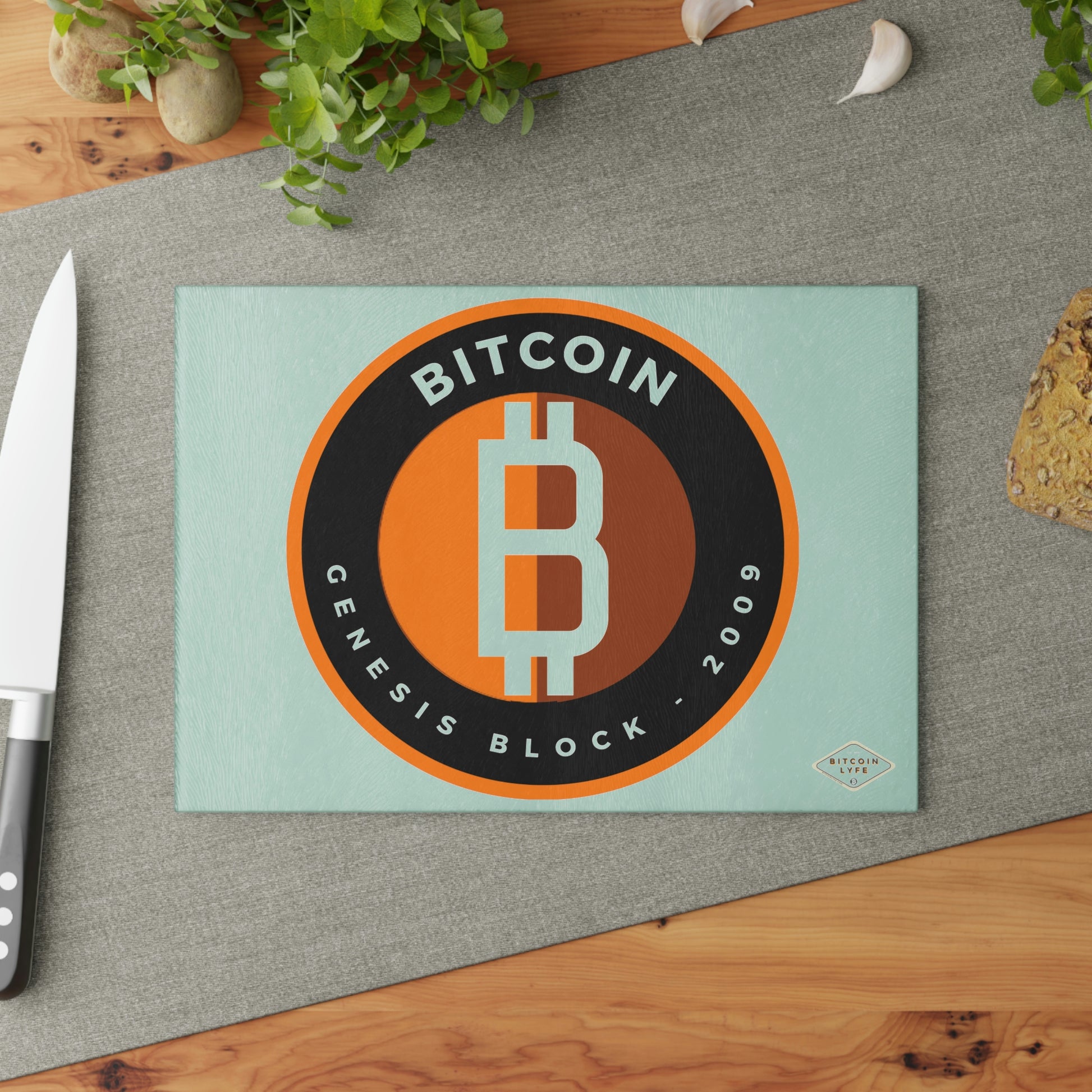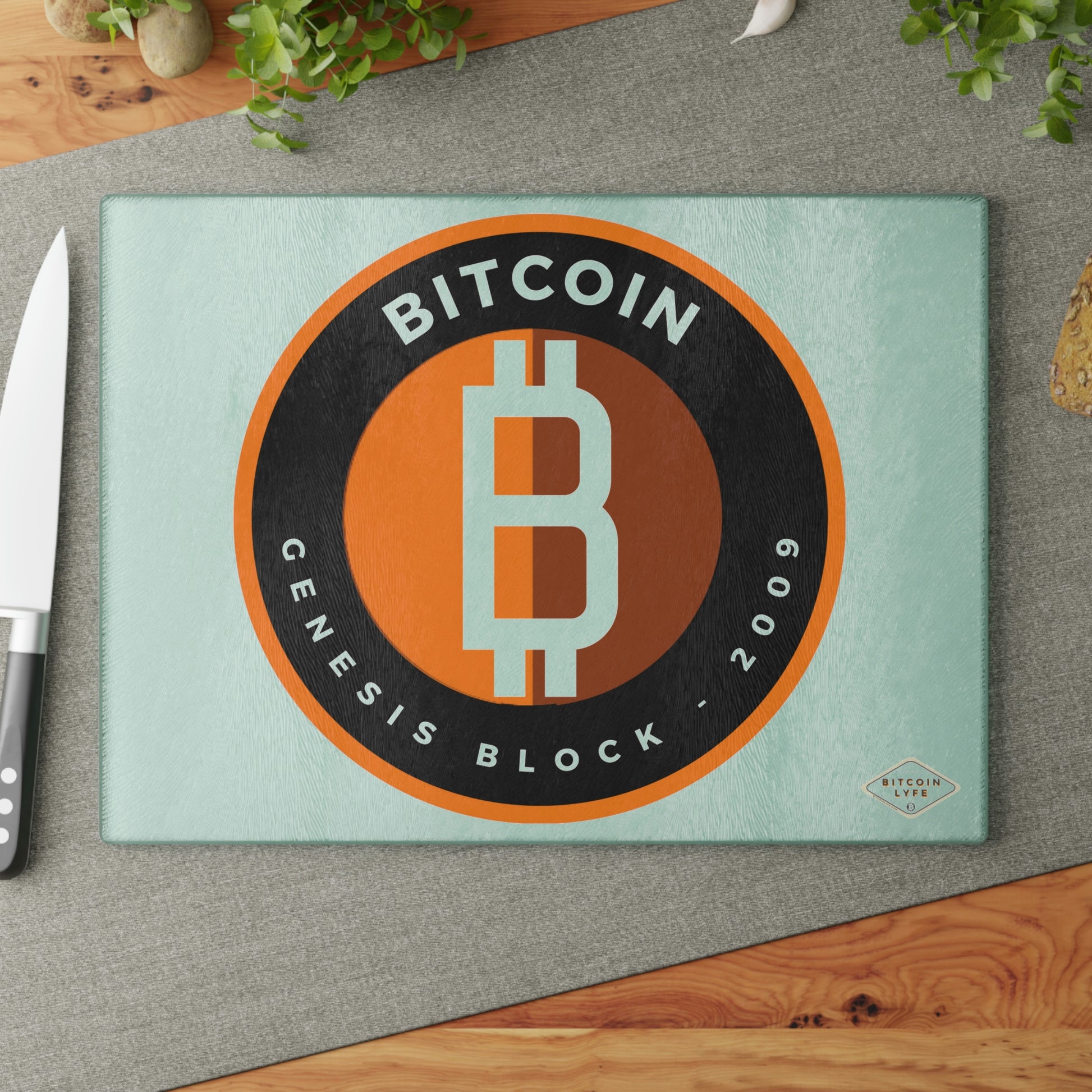 Bring a touch of character into any kitchen with this Bitcoin glass cutting board. Its tampered glass material is robust and helps prepare many a tasty meal for a long time to come. The textured surface makes it an ideal chopping, slicing, and dicing area. Available in two sizes: 8" x 11" and 11" x 15".