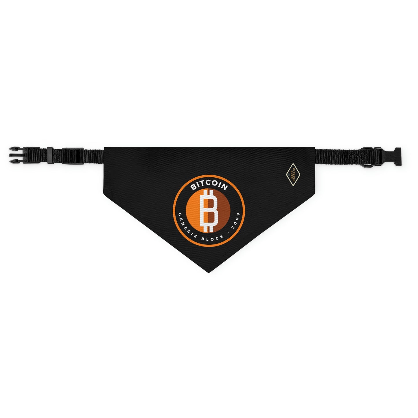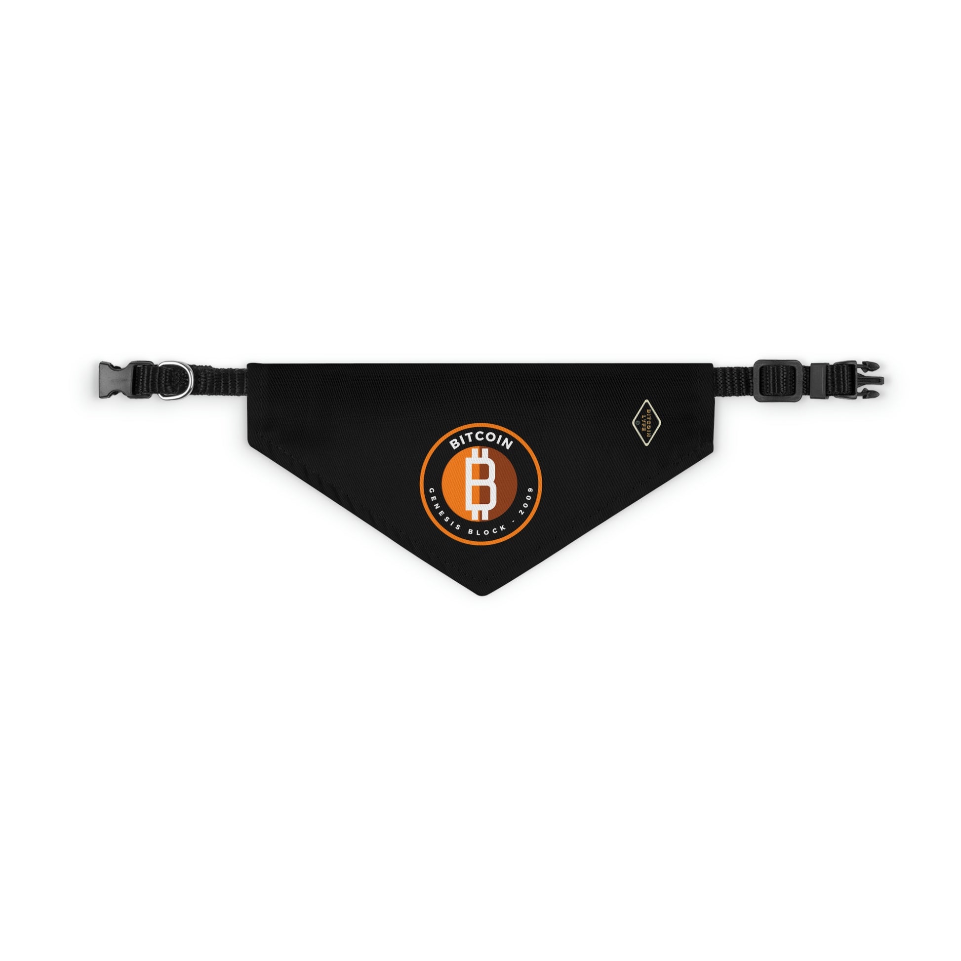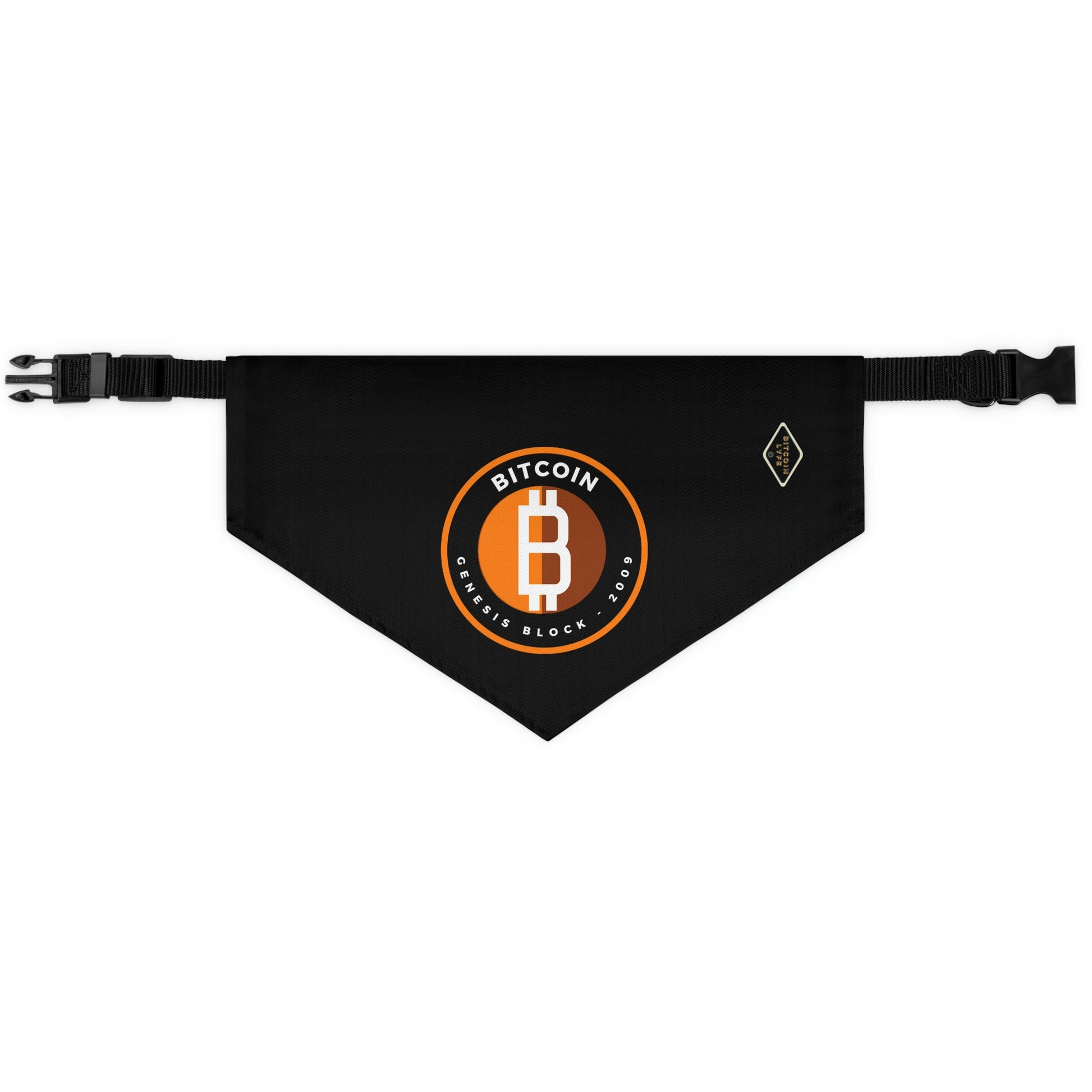The pet bandana collar puts a fun spin on standard animal accessories, and this one helps your best furry friend to express their conviction for Bitcoin. It is made of polyester duck fabric and is printed on one side. The bandana collar is available in three sizes to fit any pet. The construction and printing is durable enough for machine washing. The collar fastening helps to keep the bandana fitting correctly, even during play.