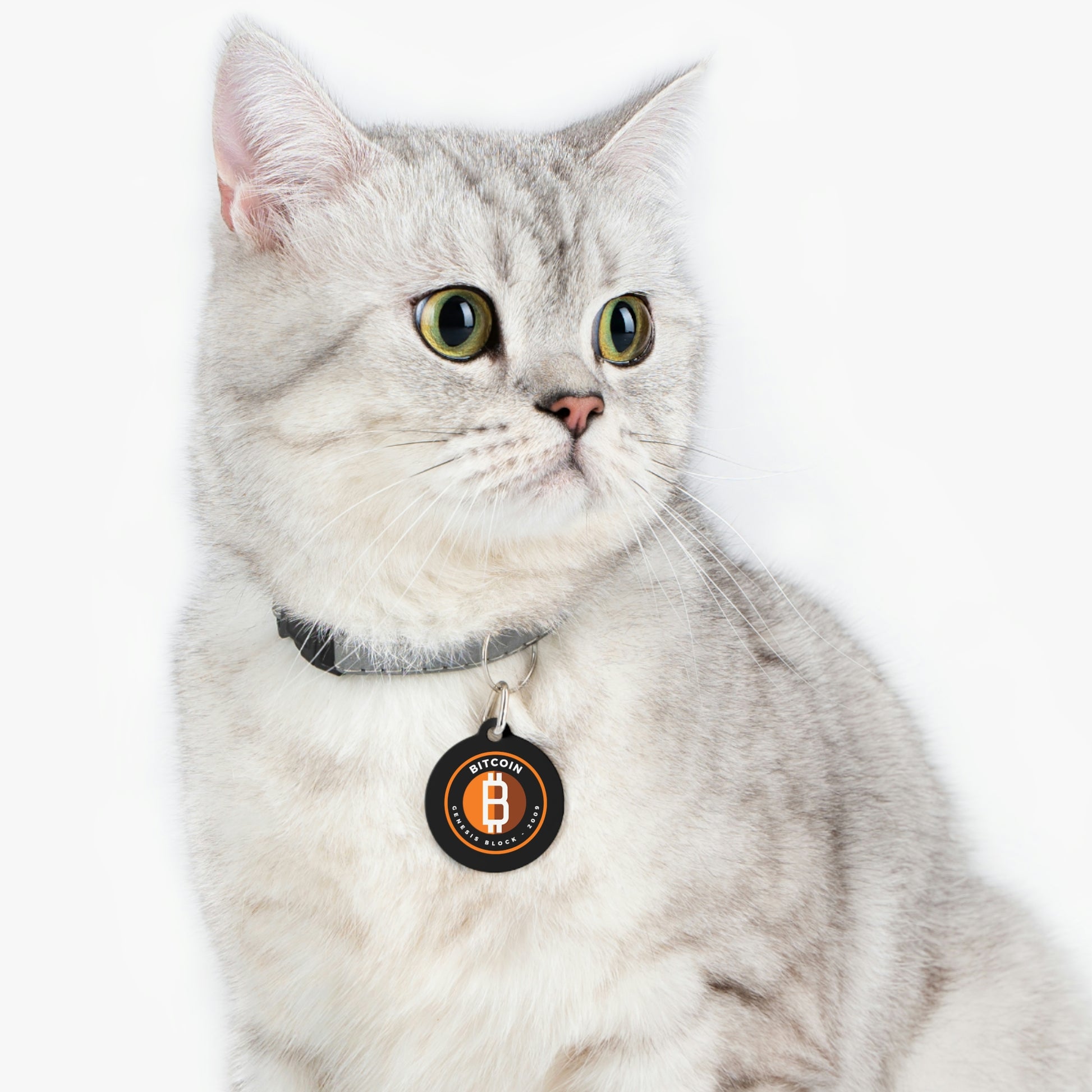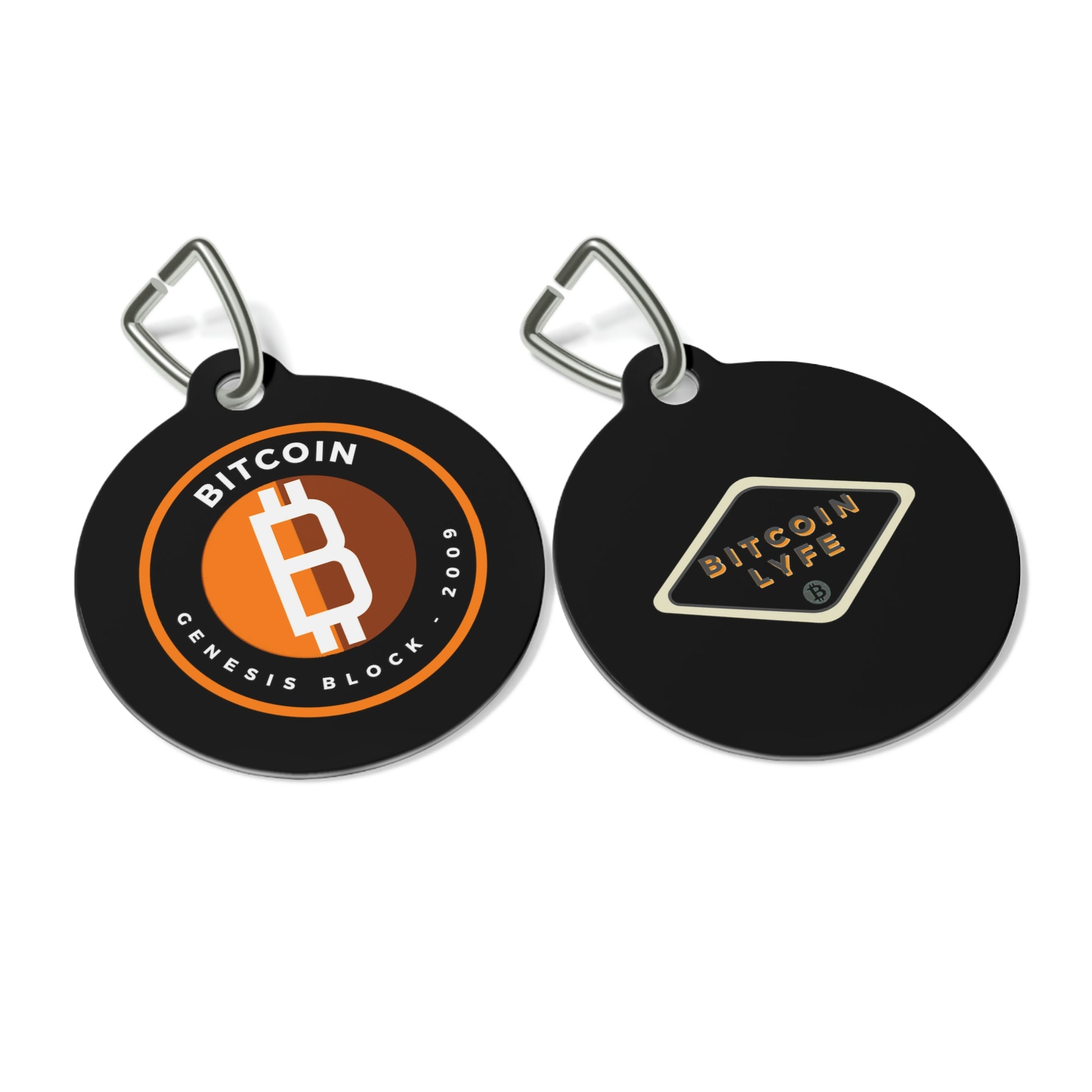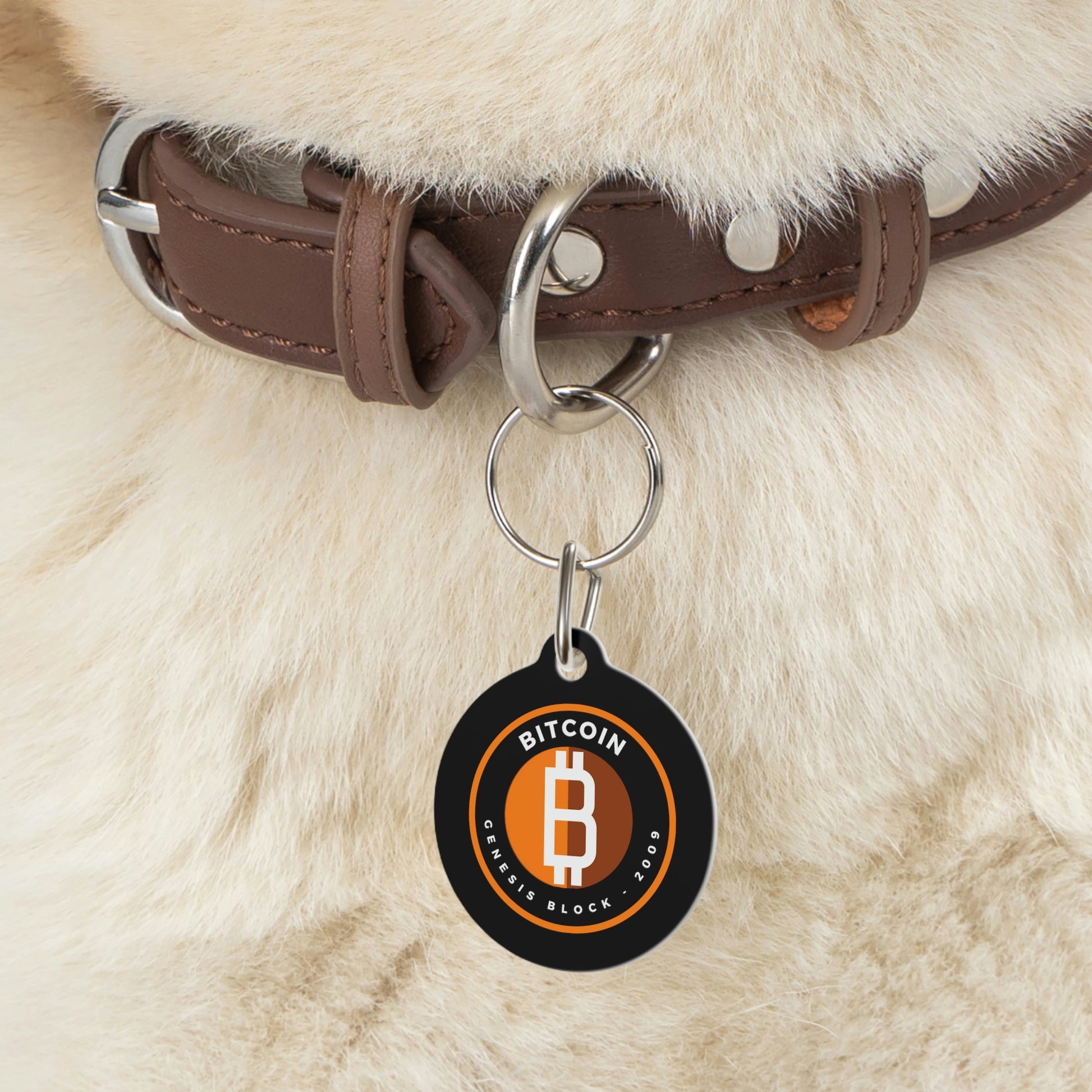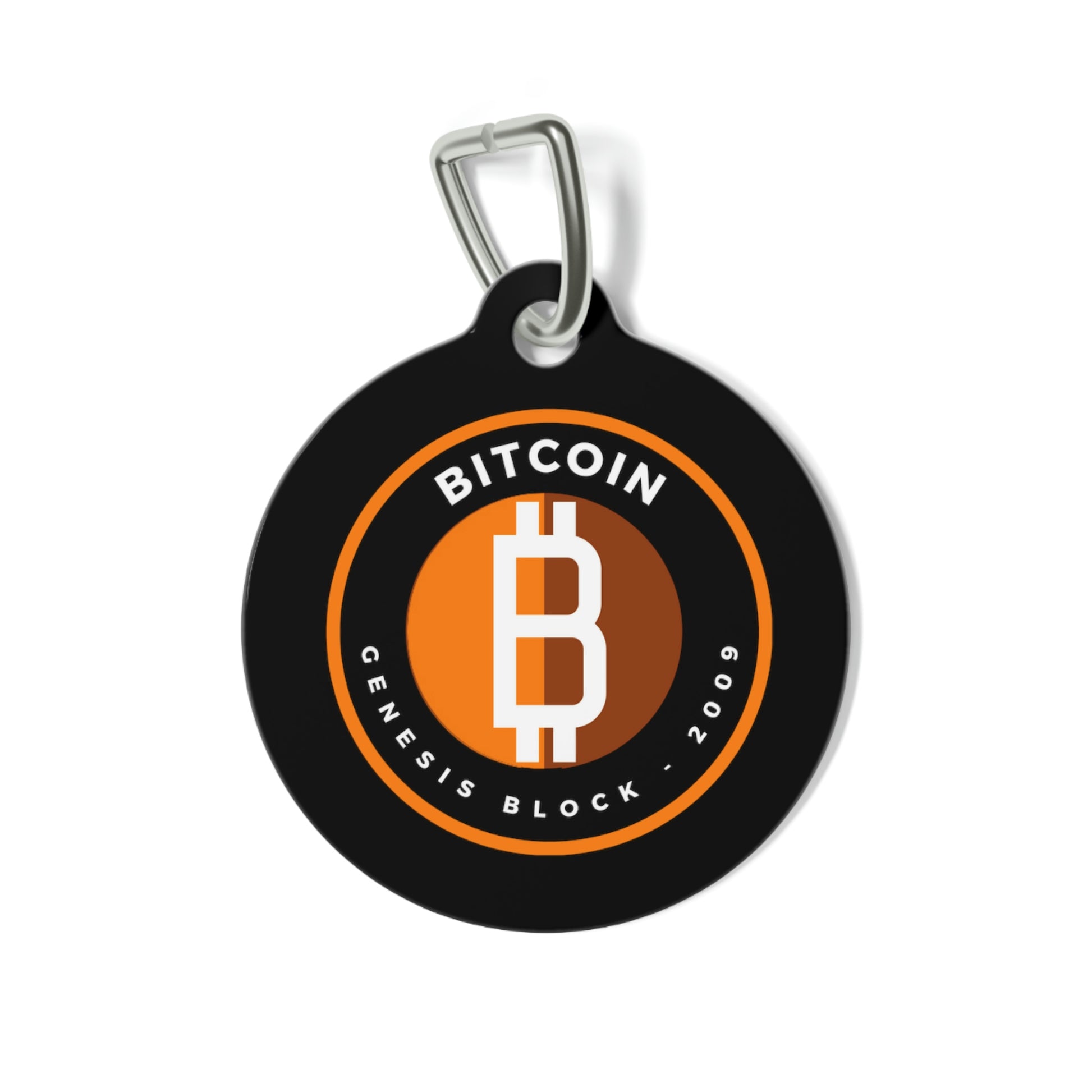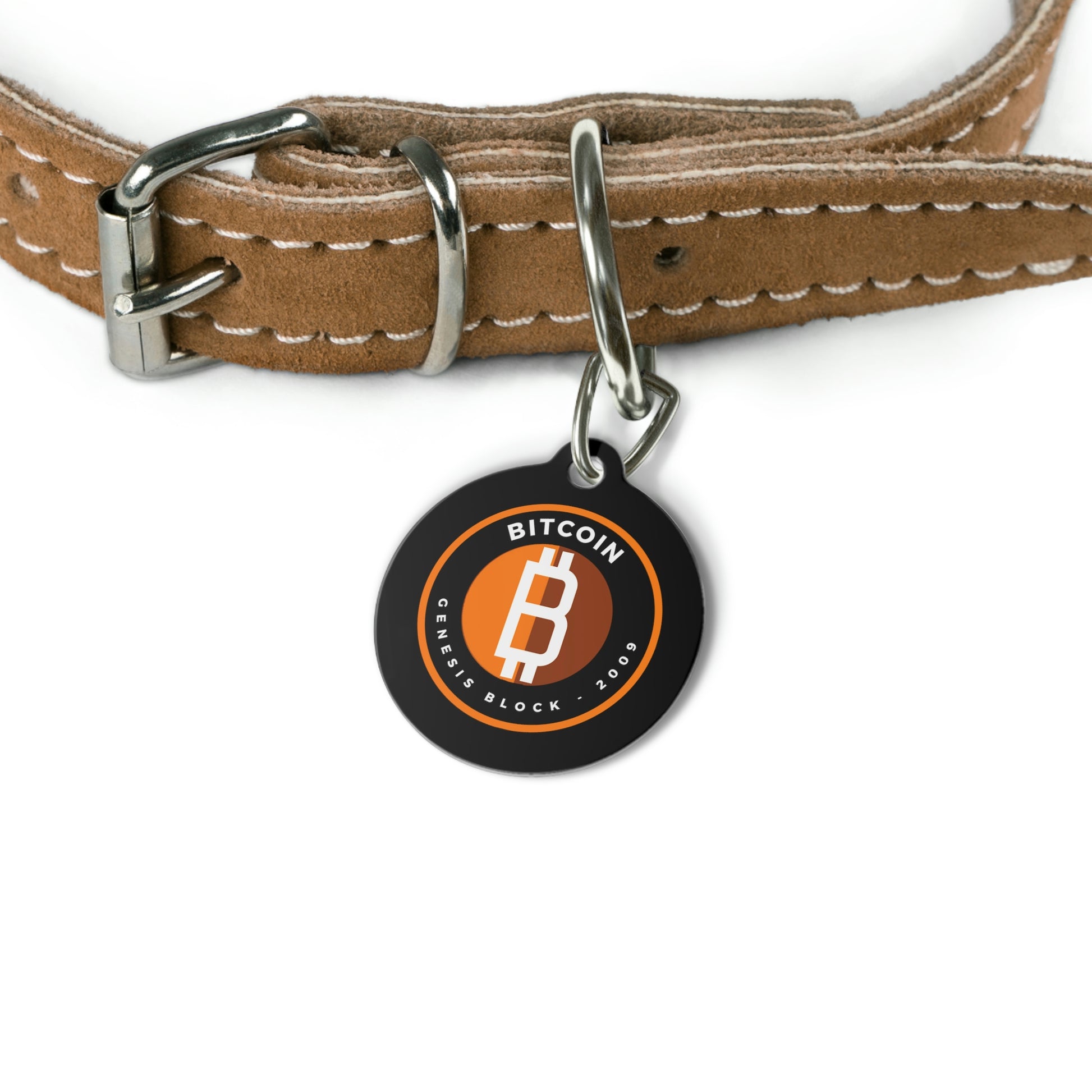 BItcoin pet tags provide a fresh way to spice up a furry friend's collar. The tag and clip are both made of metal. This increased durability comes in handy, as collar pieces can snag on brush, corners, etc.