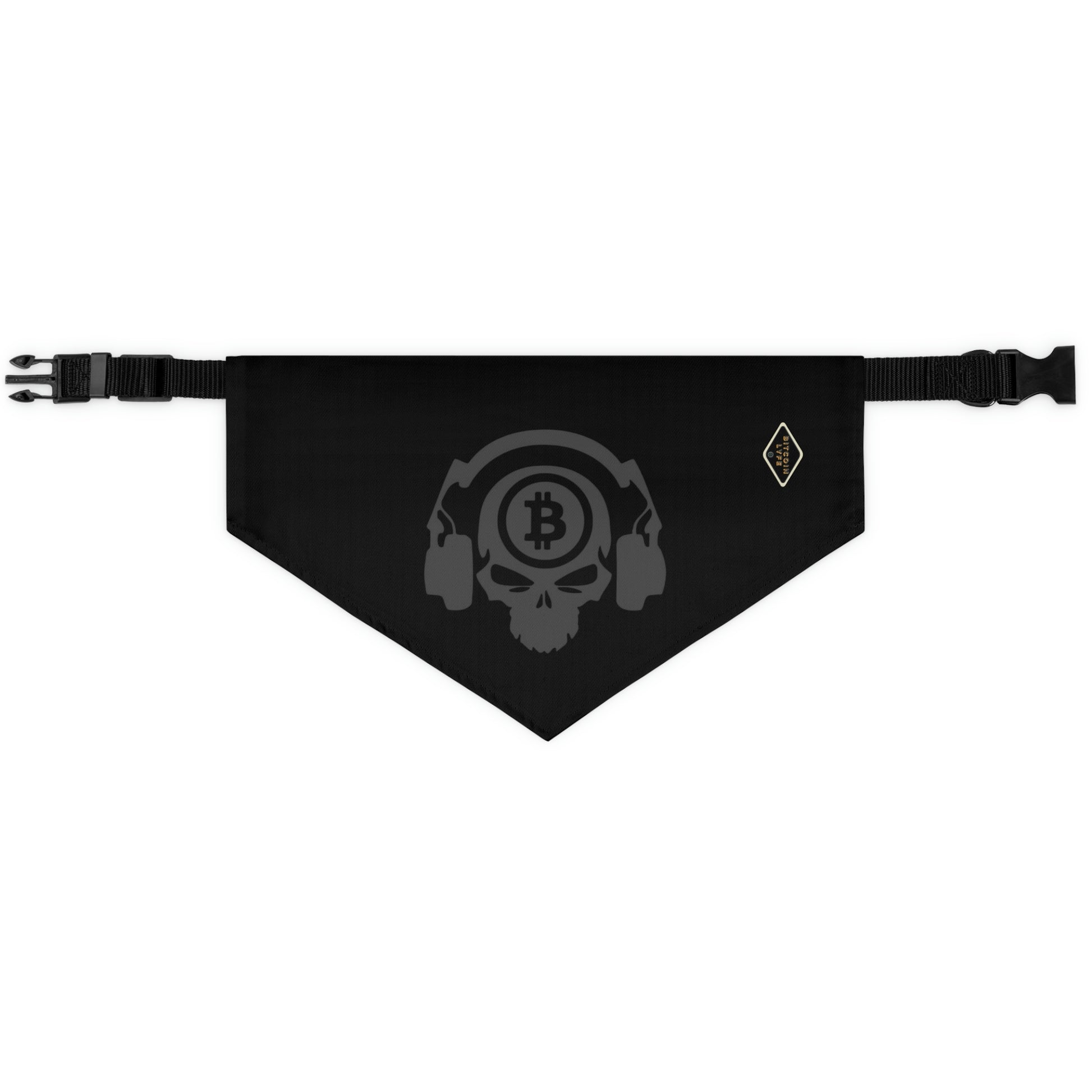 The pet bandana collar puts a fun spin on standard animal accessories, and this one helps your best furry friend to express their conviction for Bitcoin. It is made of polyester duck fabric and is printed on one side. The bandana collar is available in three sizes to fit any pet. The construction and printing is durable enough for machine washing. The collar fastening helps to keep the bandana fitting correctly, even during play.