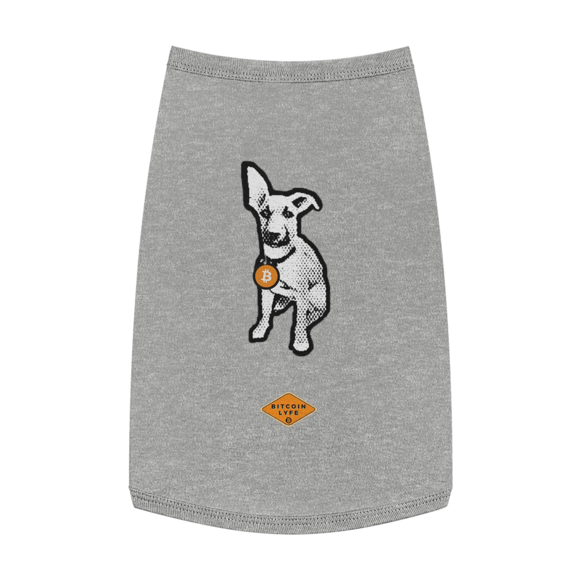 How about a cool shirt for you four-legged best friend with a pic of Luke with his Bitcoin collar? Yea, Luke really liked the idea! Enjoy!