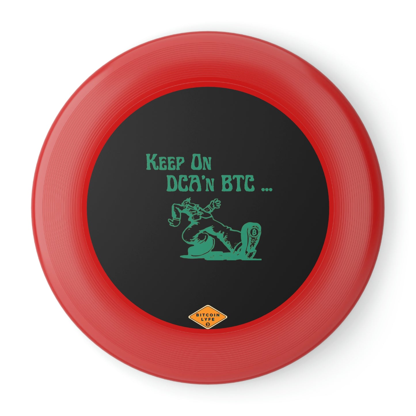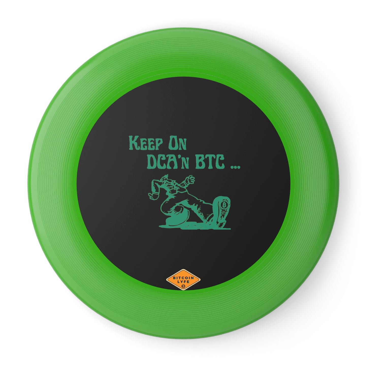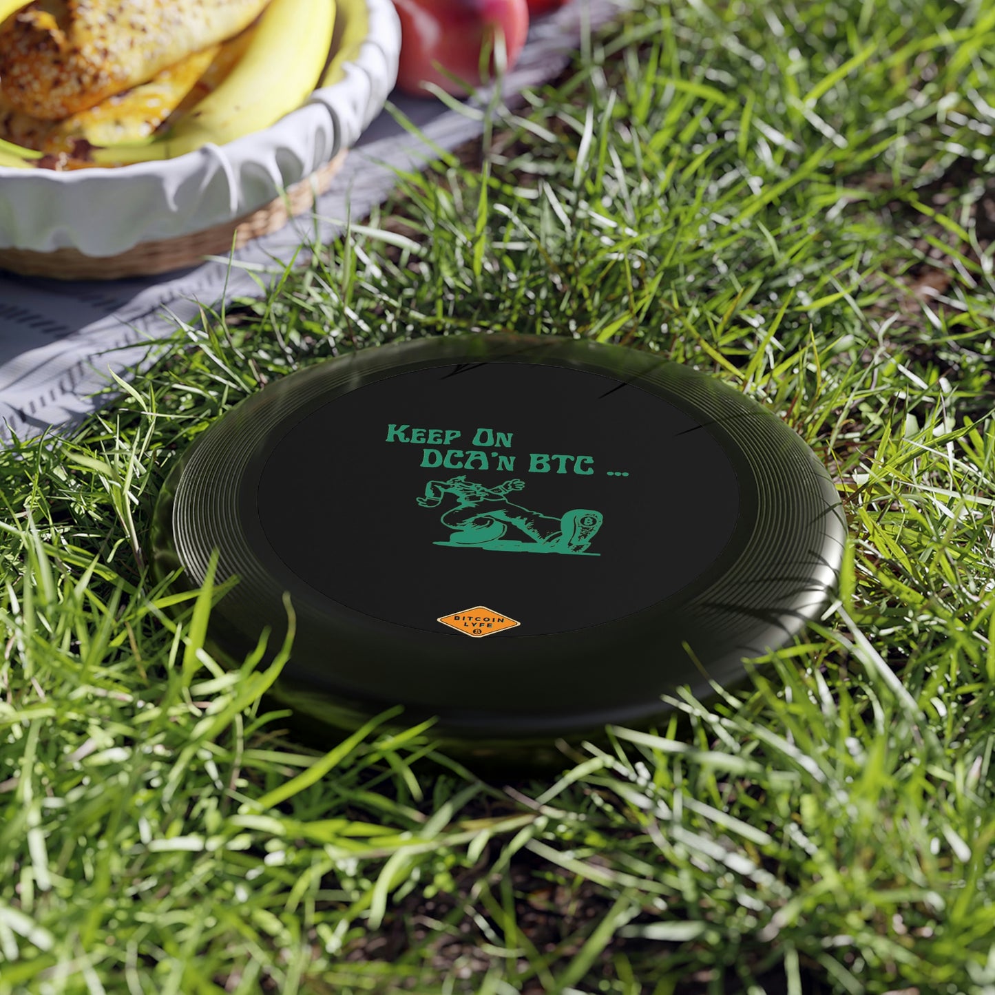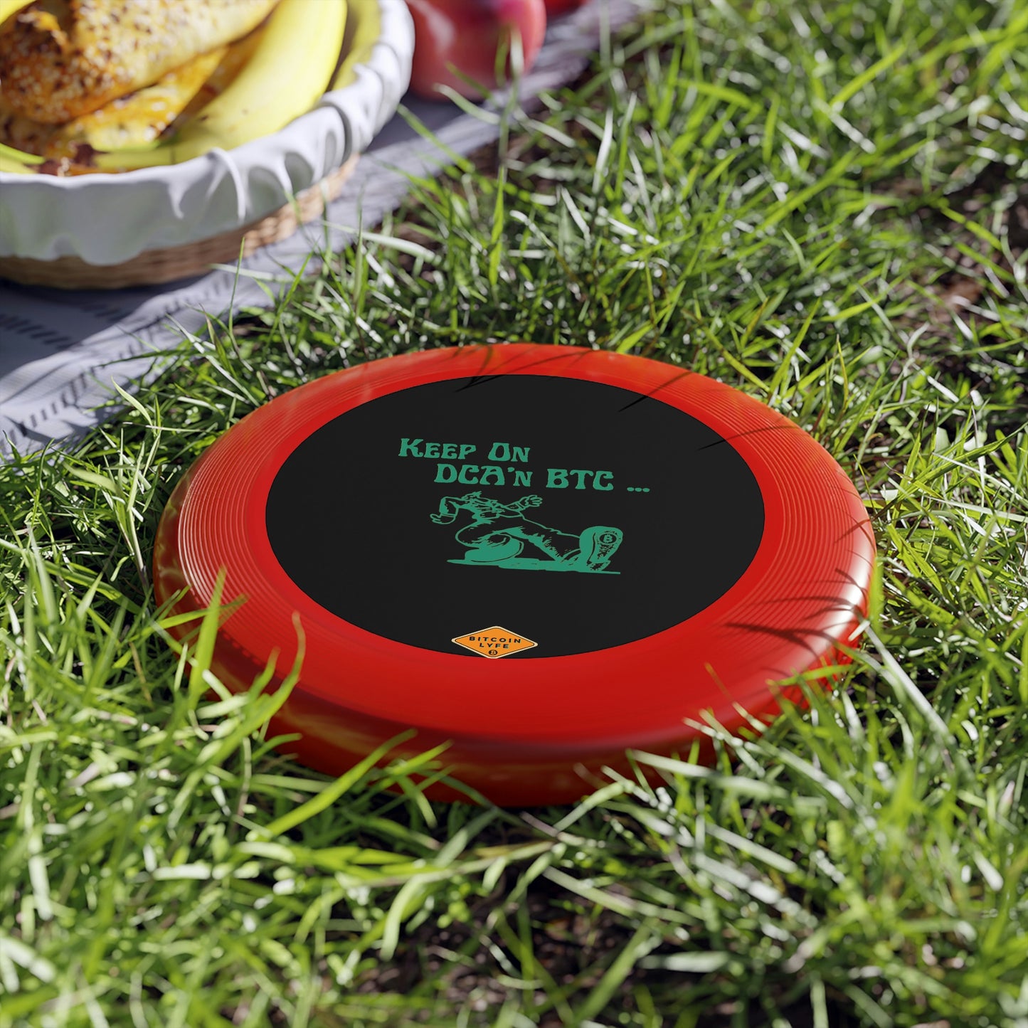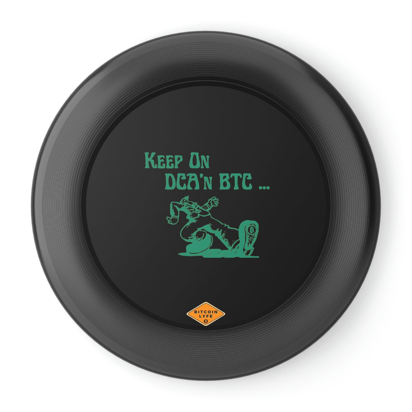 The iconic Wham-O frisbee is here and it carries an awesome Bitcoin DCA message message. Thanks to its advanced design, you can count on Wham-O's excellent performance under any weather conditions, while its floating ability makes the perfect choice for serious Ultimate Frisbee action or casual fun. Available in black, white, green, blue, or red colors.
