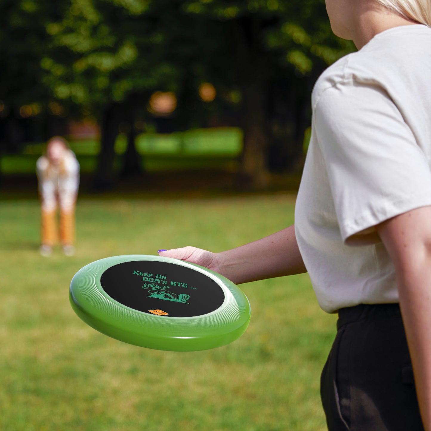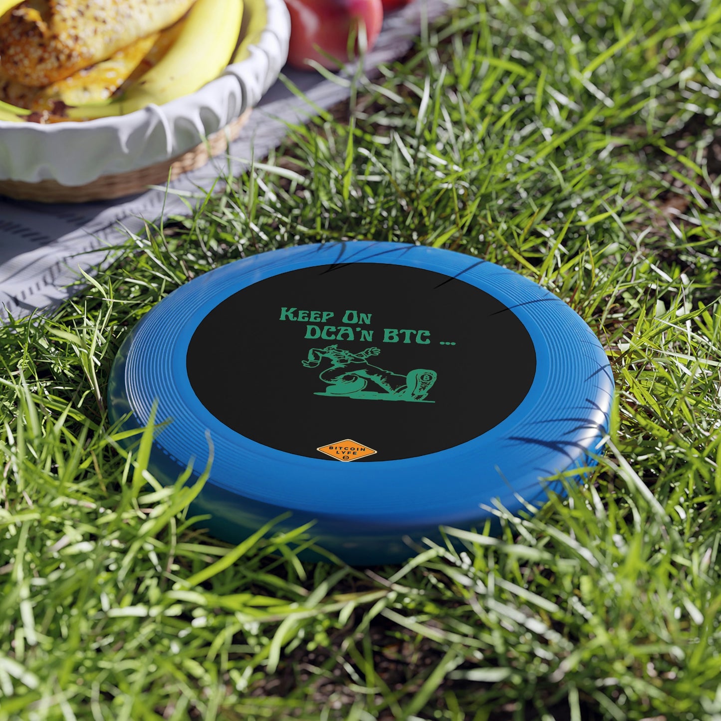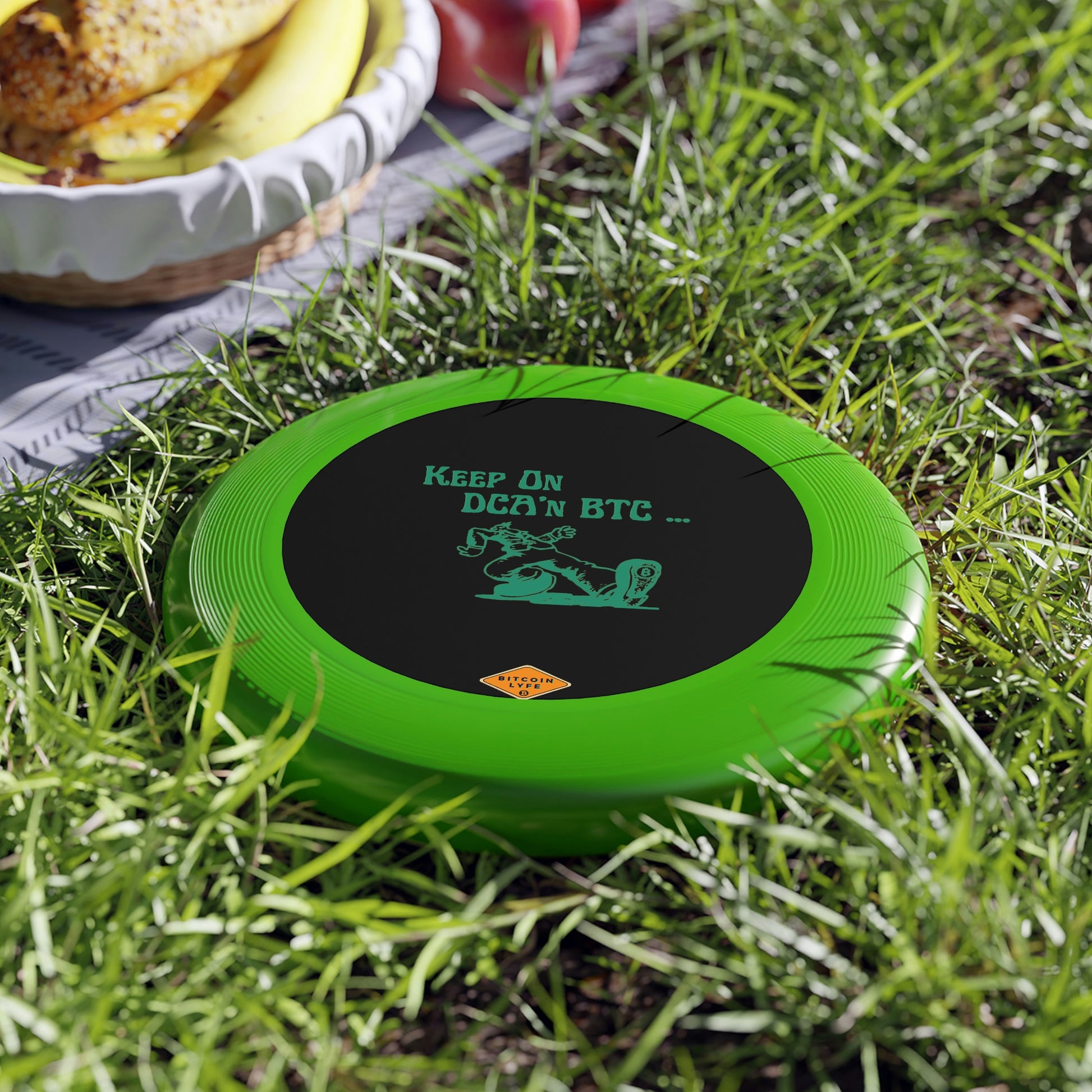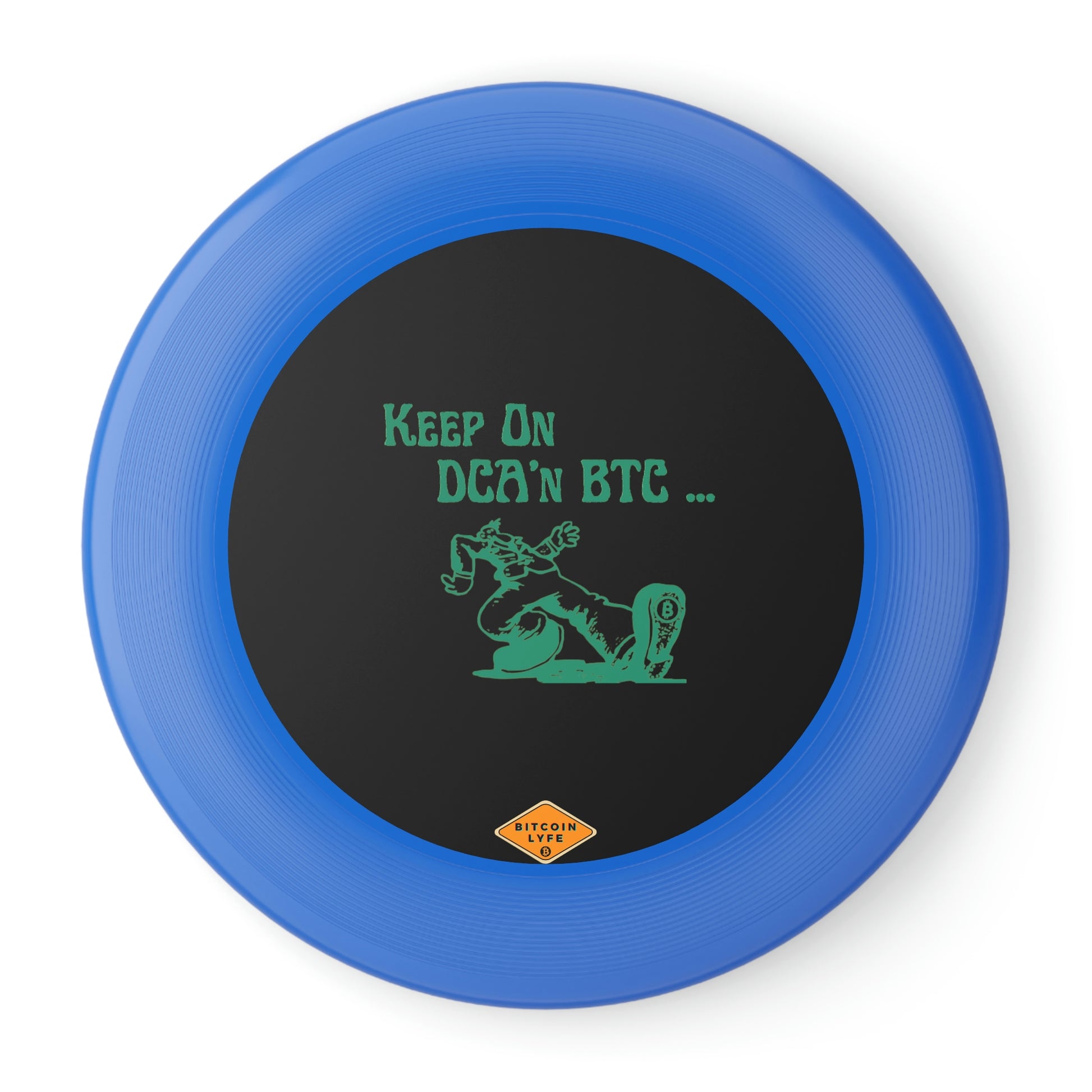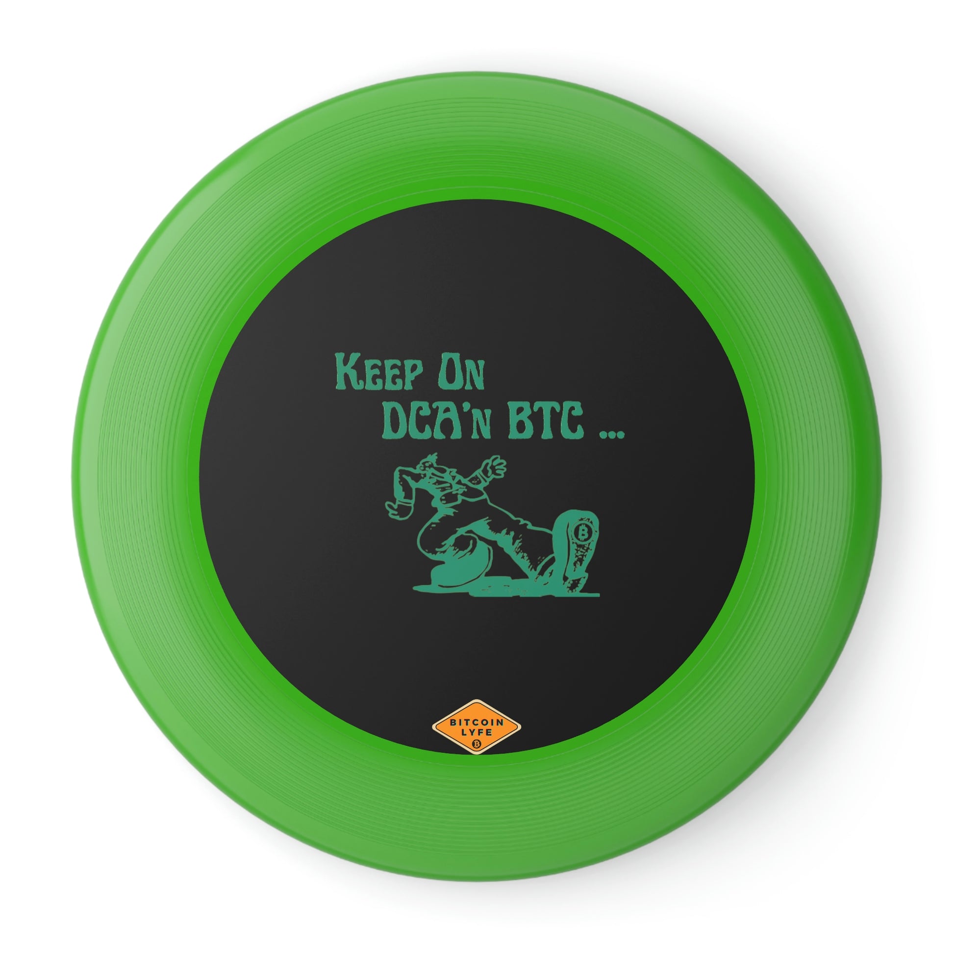 The iconic Wham-O frisbee is here and it carries an awesome Bitcoin DCA message message. Thanks to its advanced design, you can count on Wham-O's excellent performance under any weather conditions, while its floating ability makes the perfect choice for serious Ultimate Frisbee action or casual fun. Available in black, white, green, blue, or red colors.