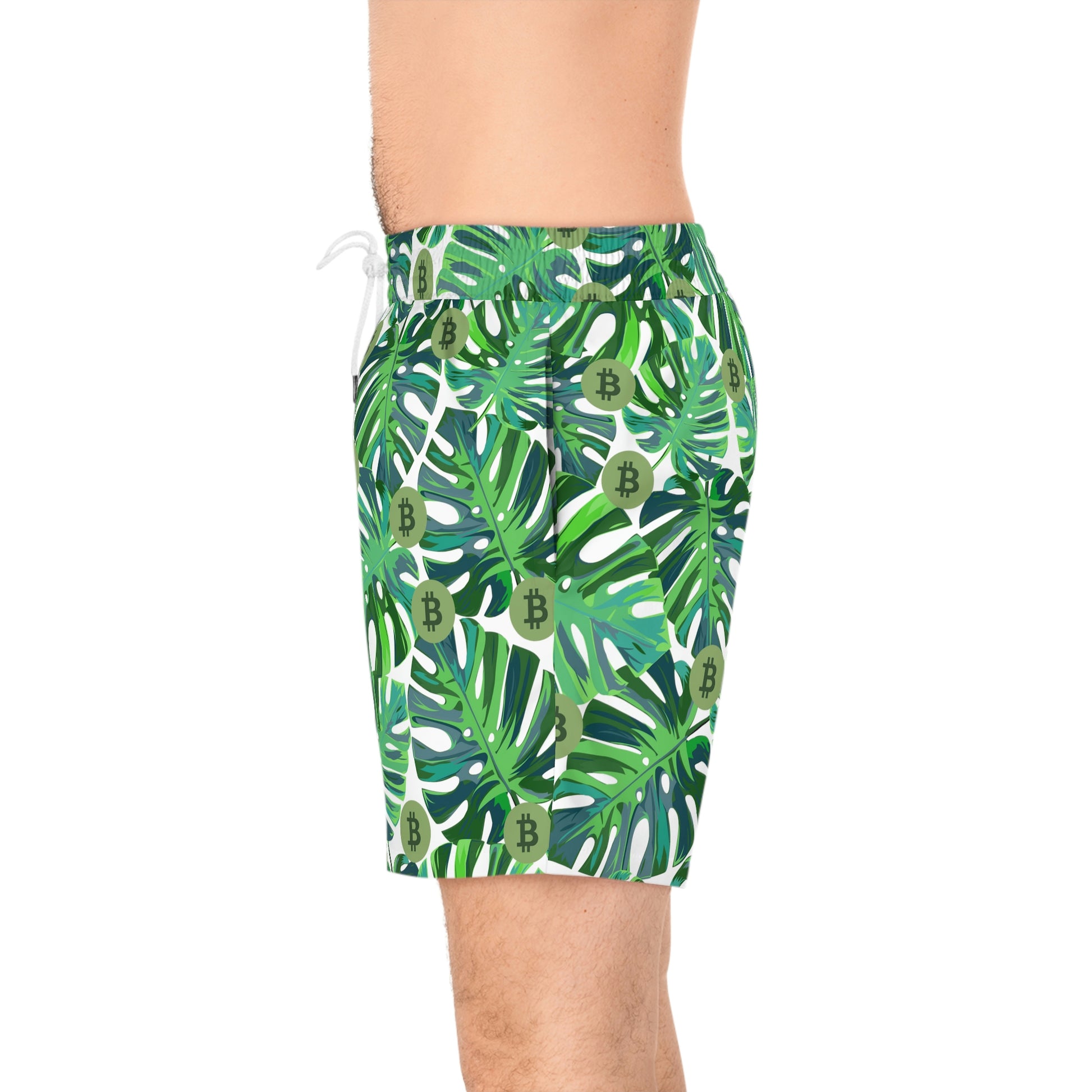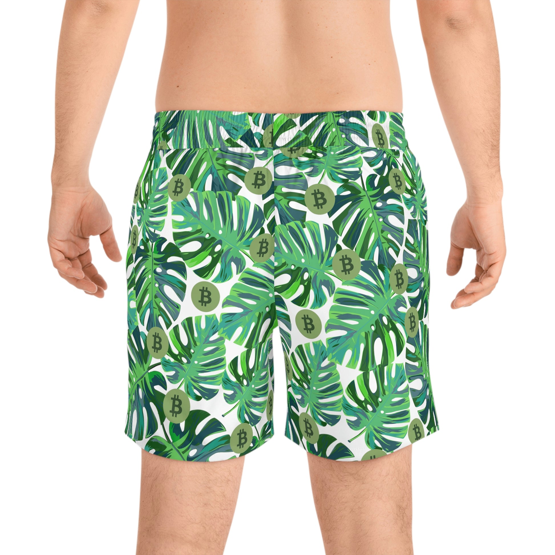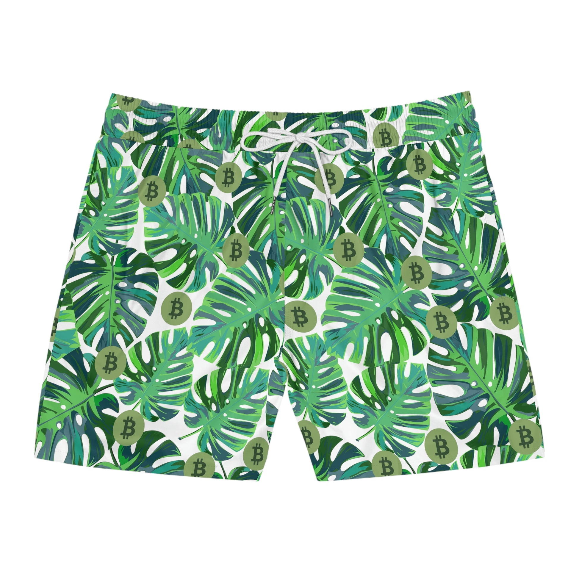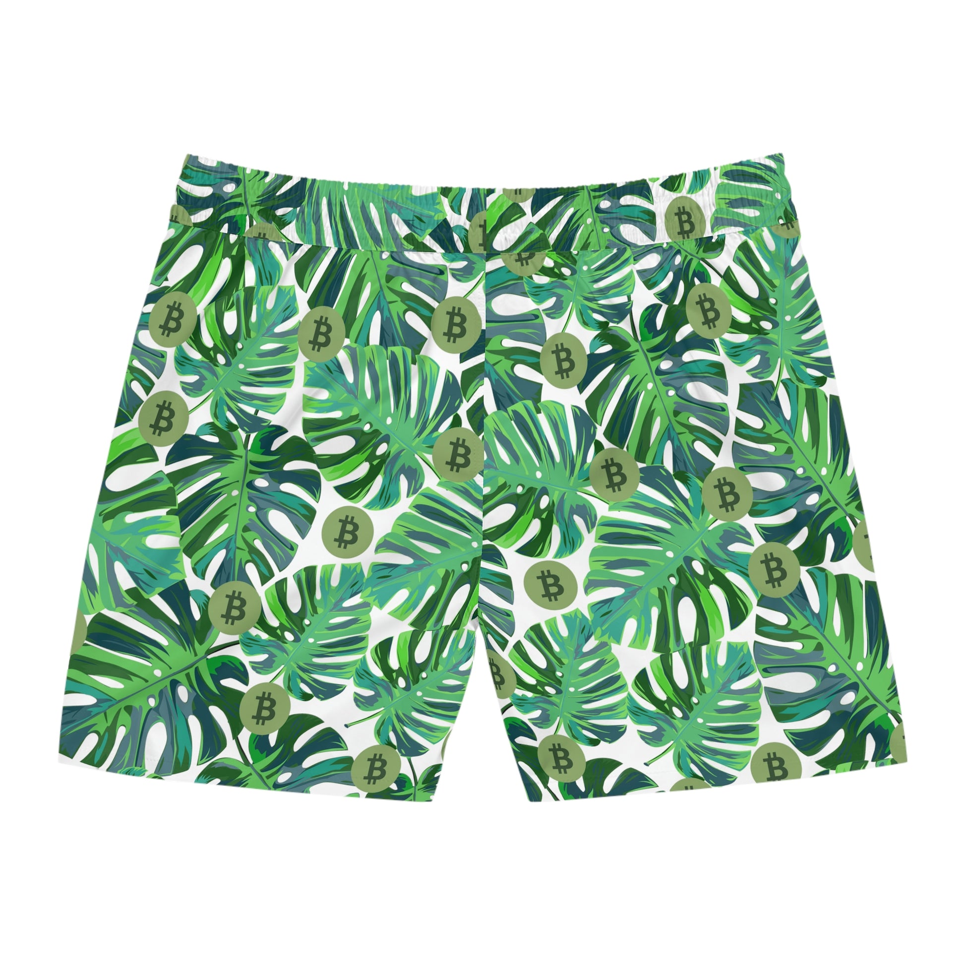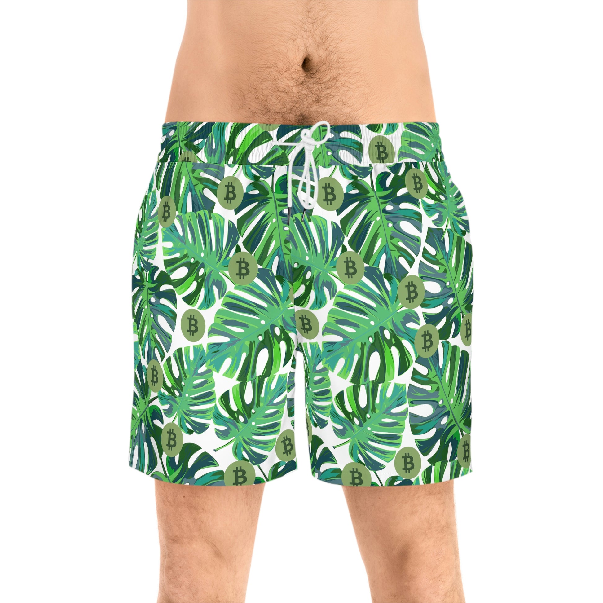 Made with 95% polyester and 5% spandex, it's the perfect blend for swimming and relaxing. These mid-length shorts are lightweight, come with an inner mesh brief and a relaxed fit, because sunny days at the coast are all about lounging and showing your Bitcoin pride. These shorts also come with two side pockets for added practicality.