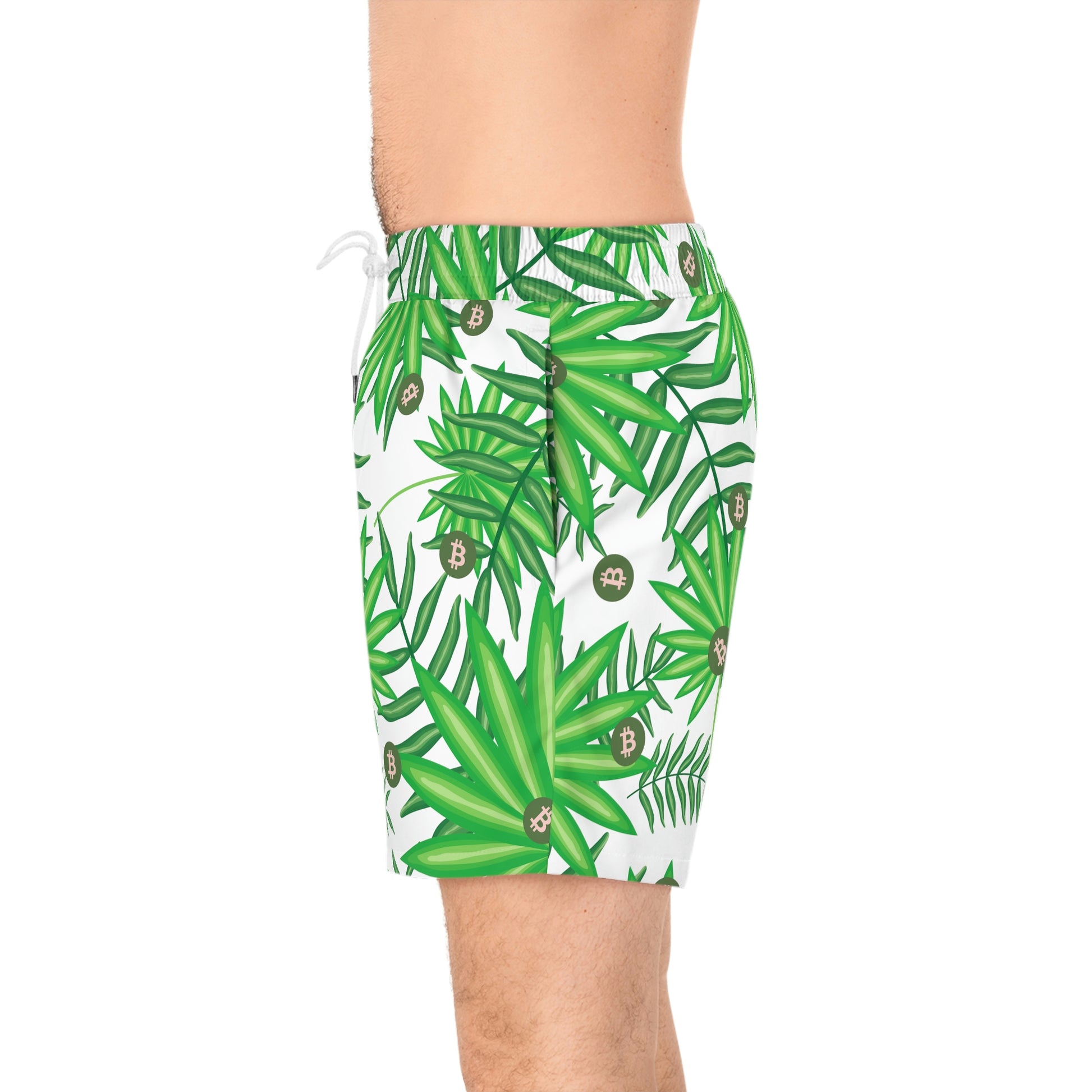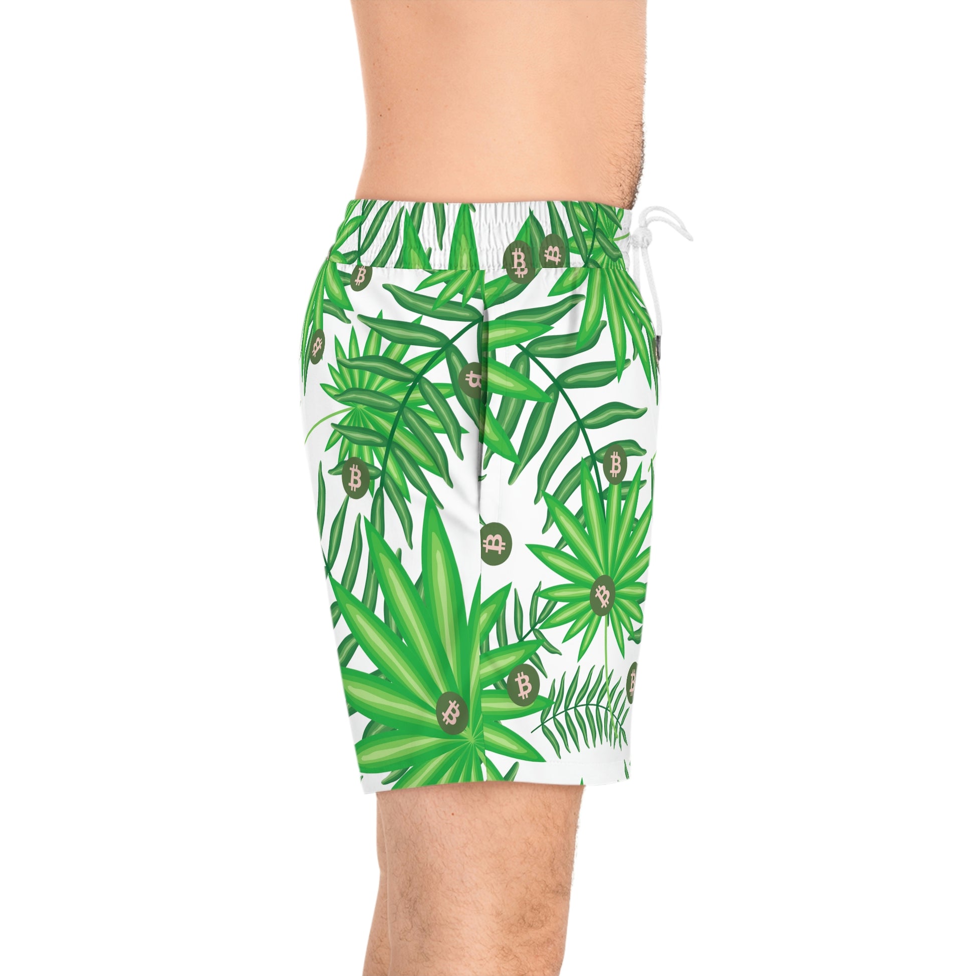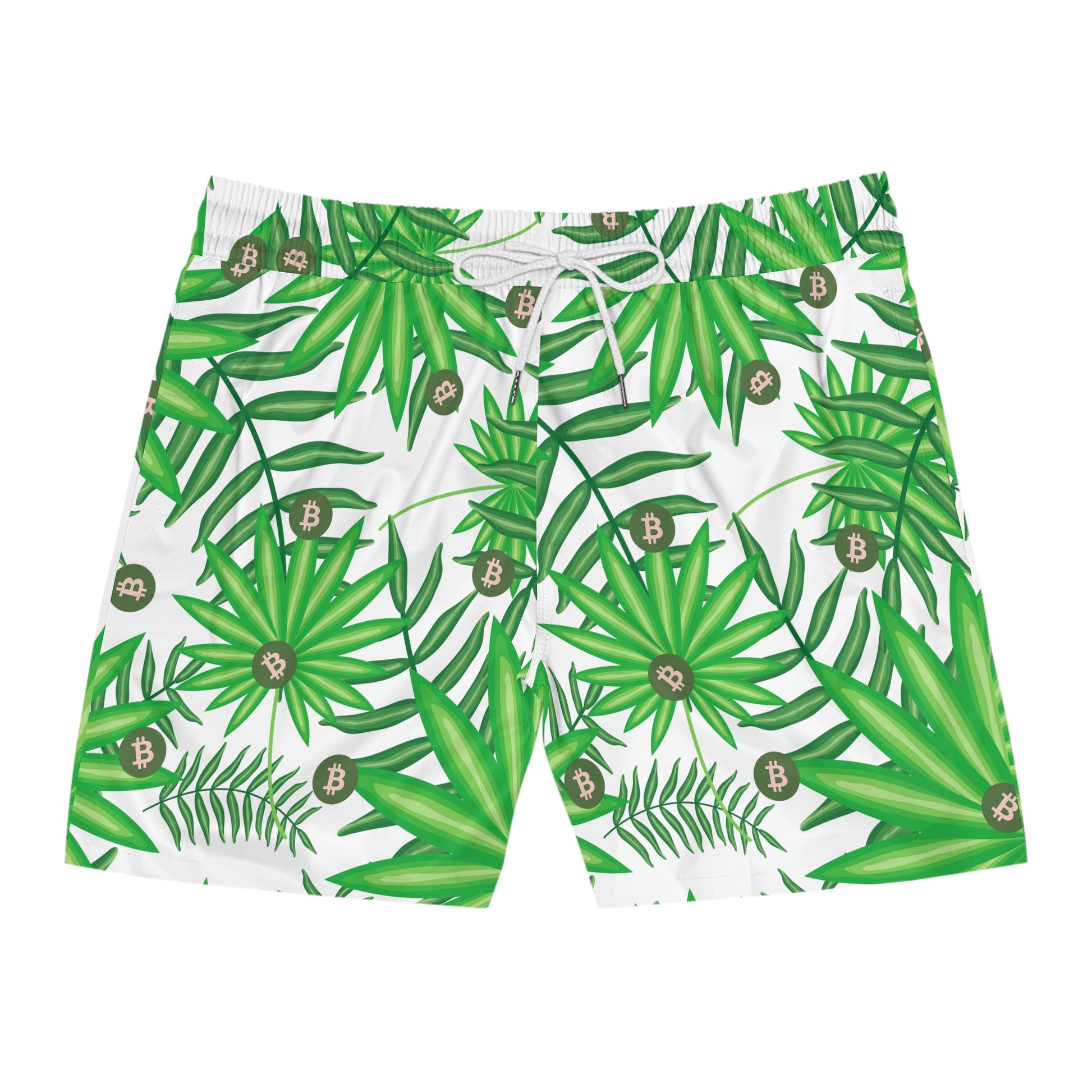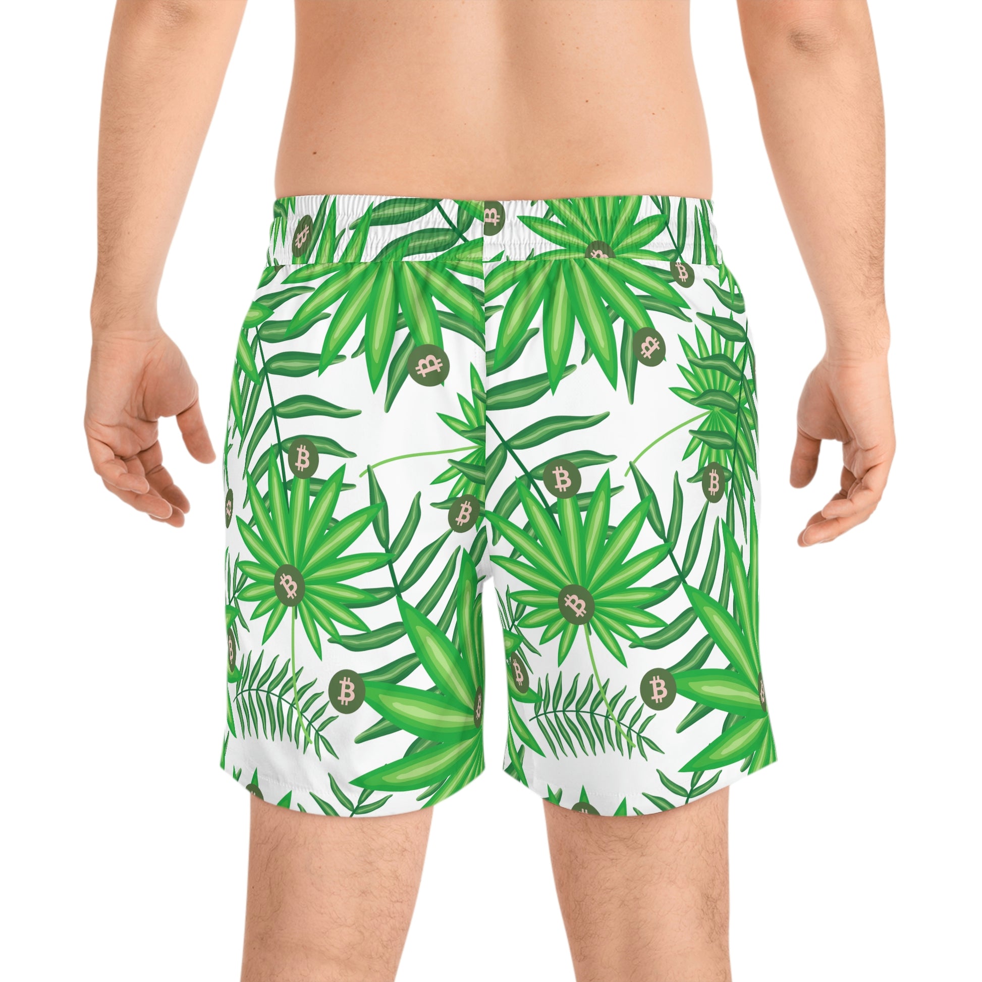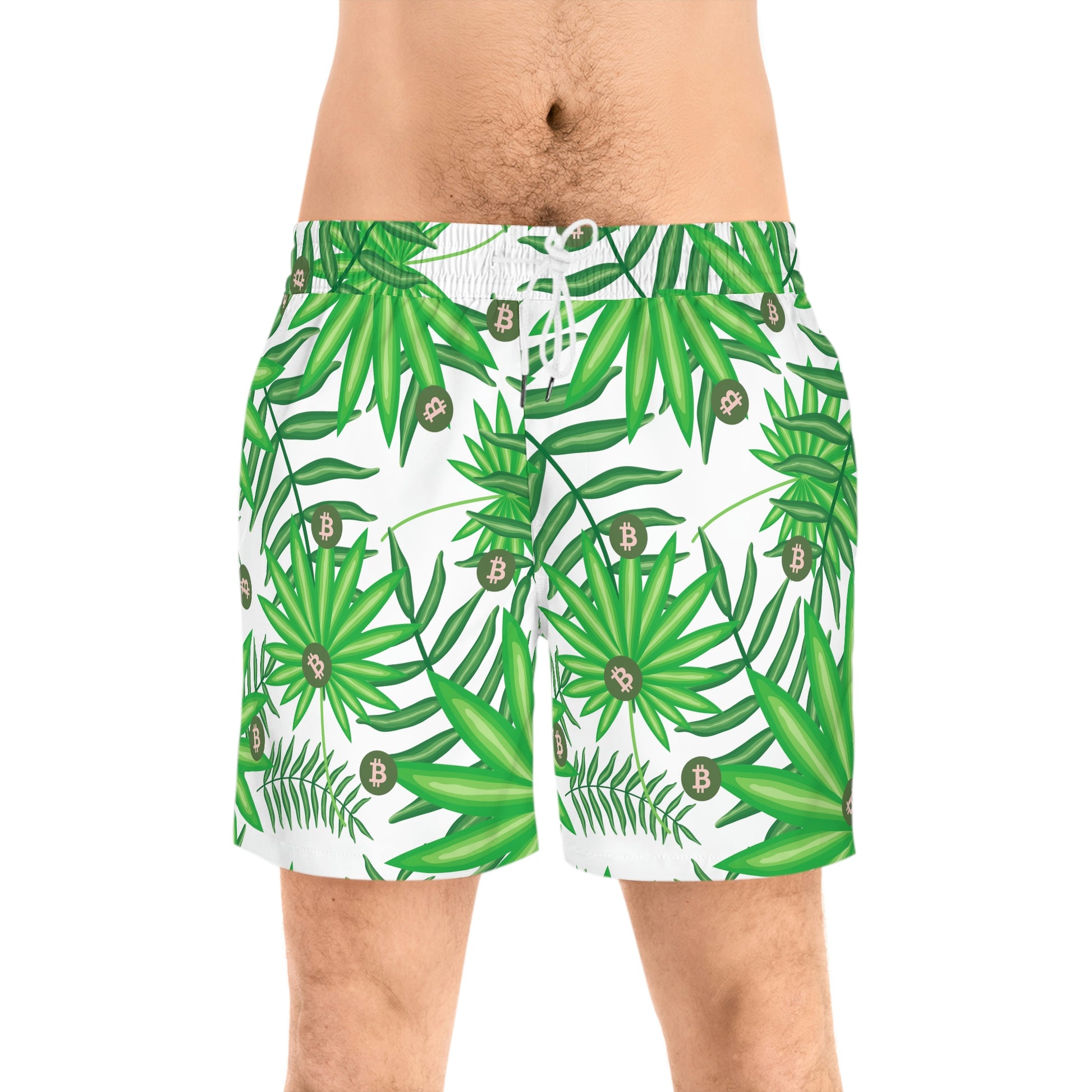 Made with 95% polyester and 5% spandex, it's the perfect blend for swimming and relaxing. These mid-length shorts are lightweight, come with an inner mesh brief and a relaxed fit, because sunny days at the coast are all about lounging and showing your Bitcoin pride. These shorts also come with two side pockets for added practicality.