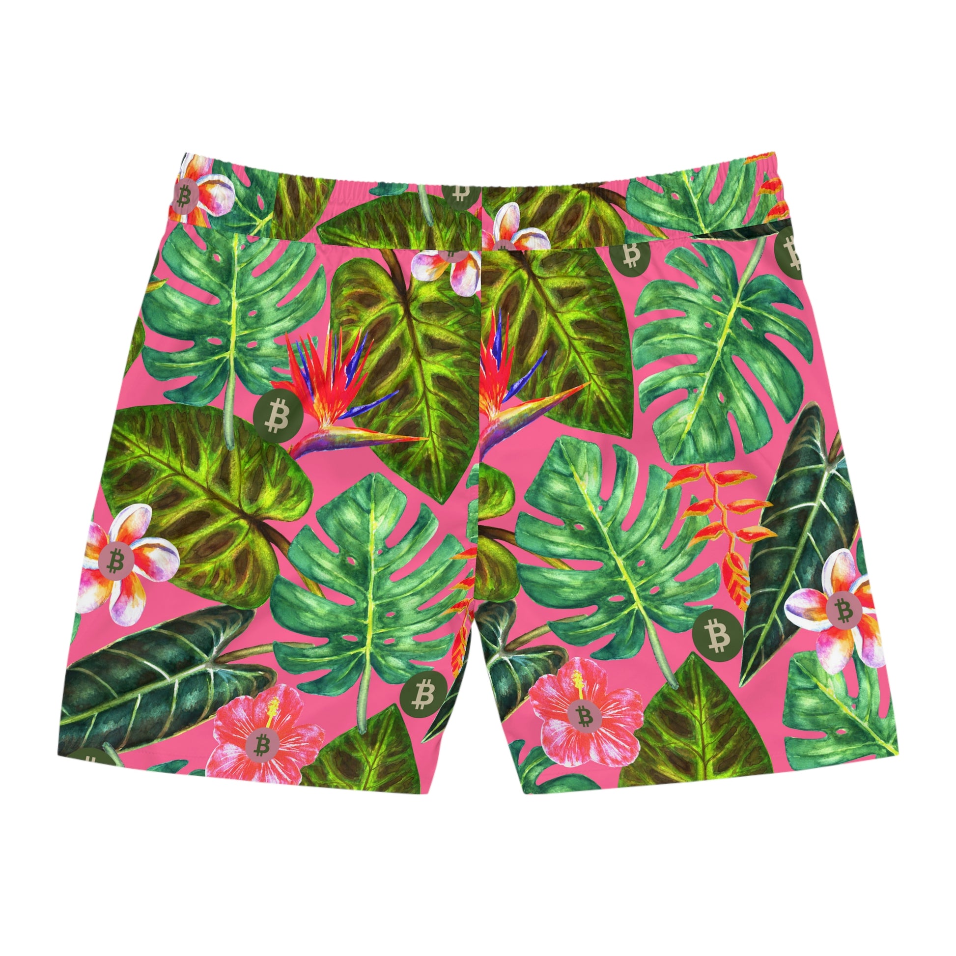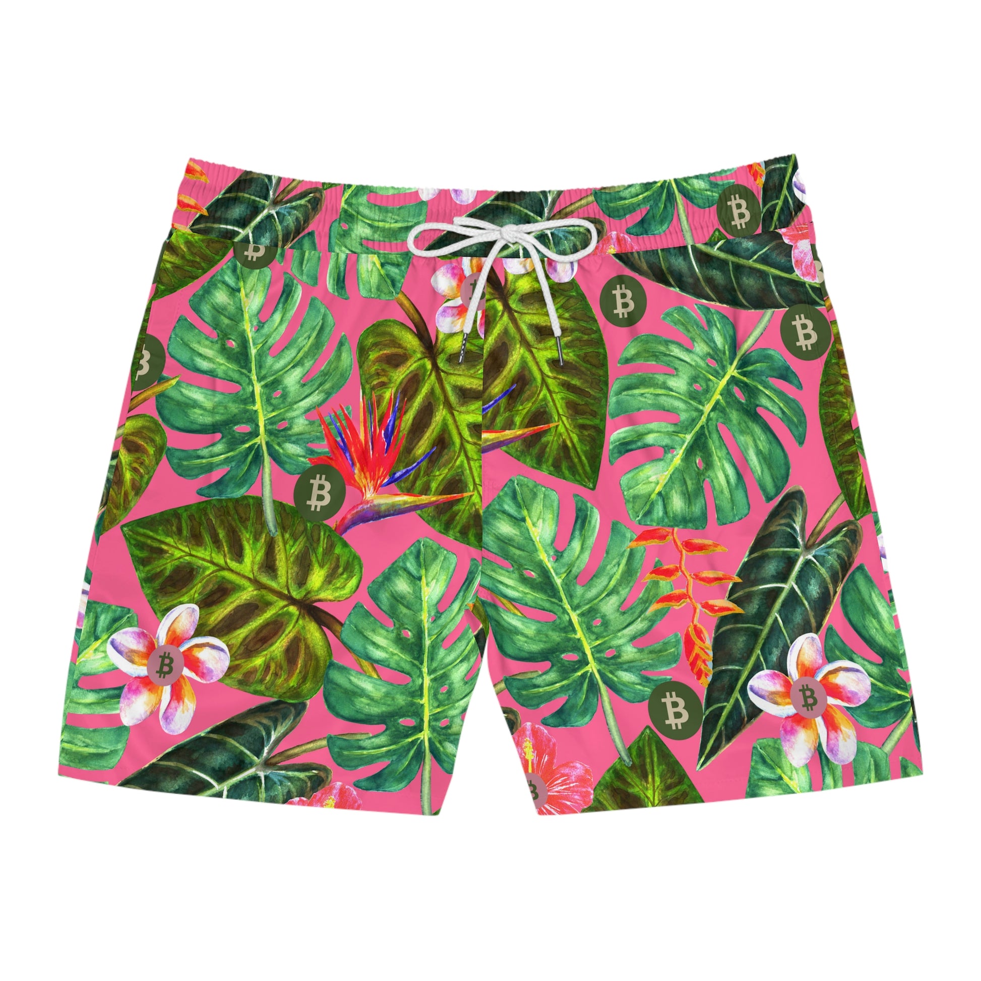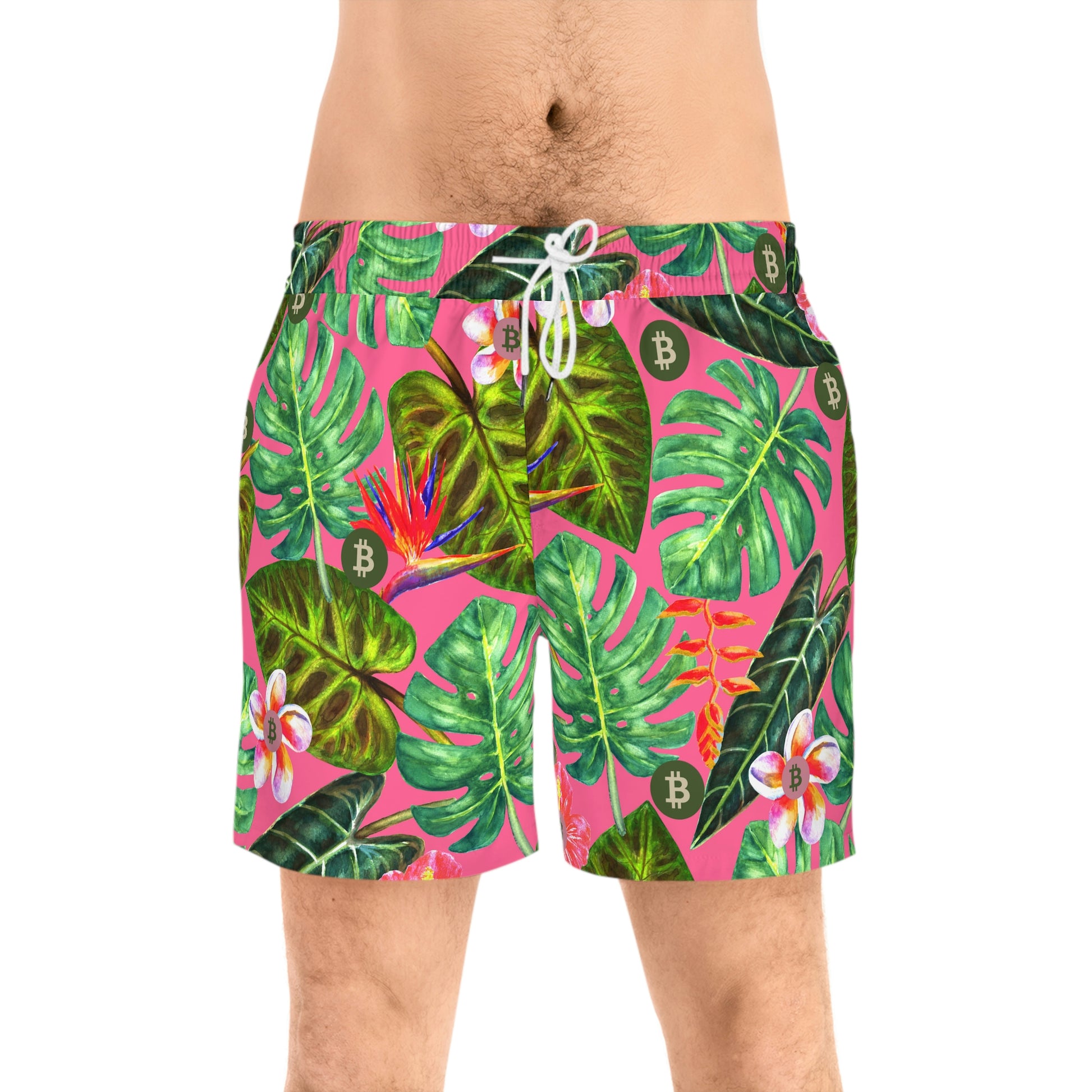 Made with 95% polyester and 5% spandex, it's the perfect blend for swimming and relaxing. These mid-length shorts are lightweight, come with an inner mesh brief and a relaxed fit, because sunny days at the coast are all about lounging and showing your Bitcoin pride. These shorts also come with two side pockets for added practicality.