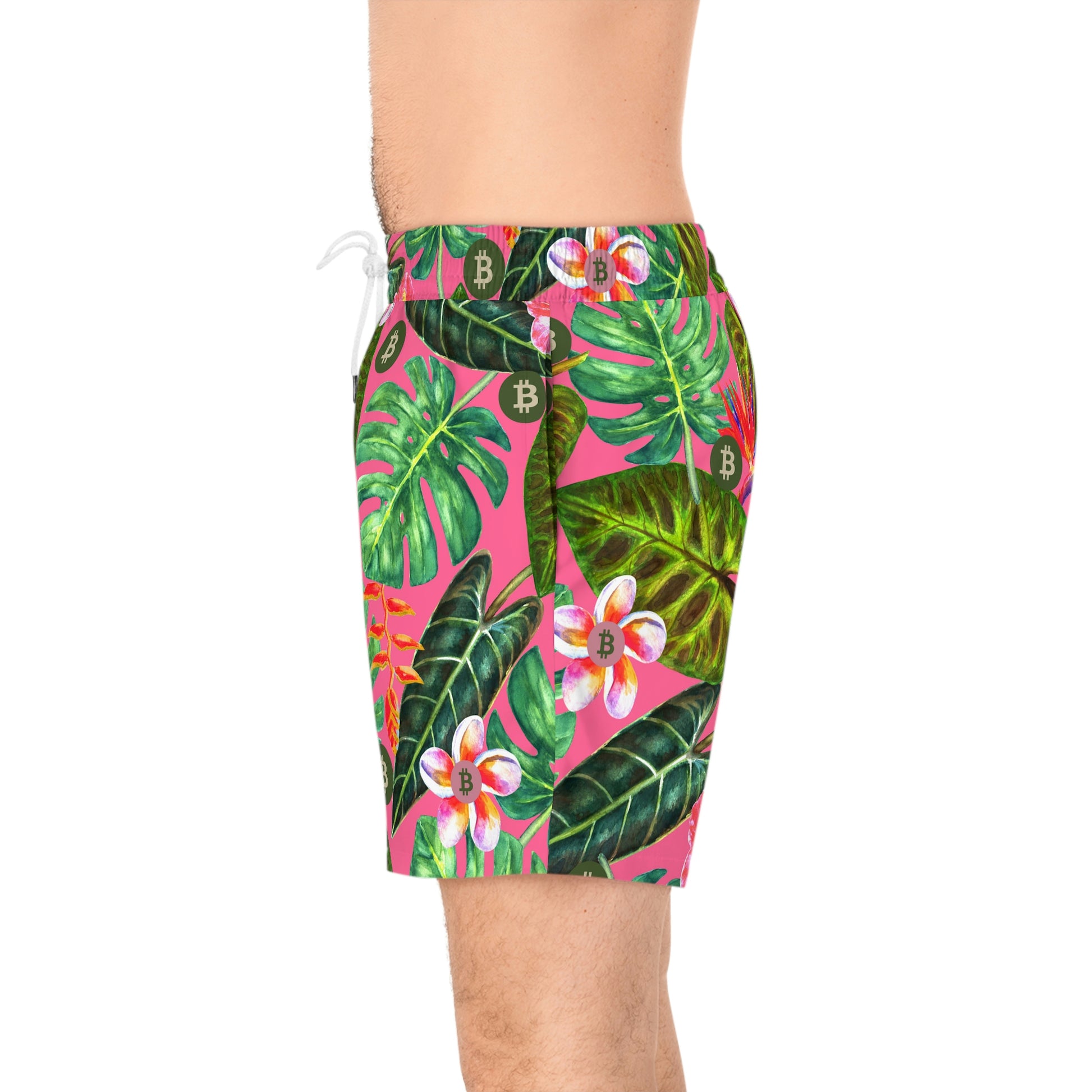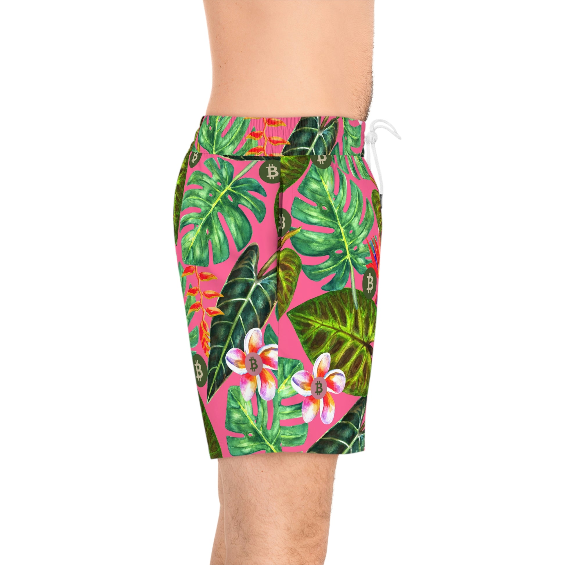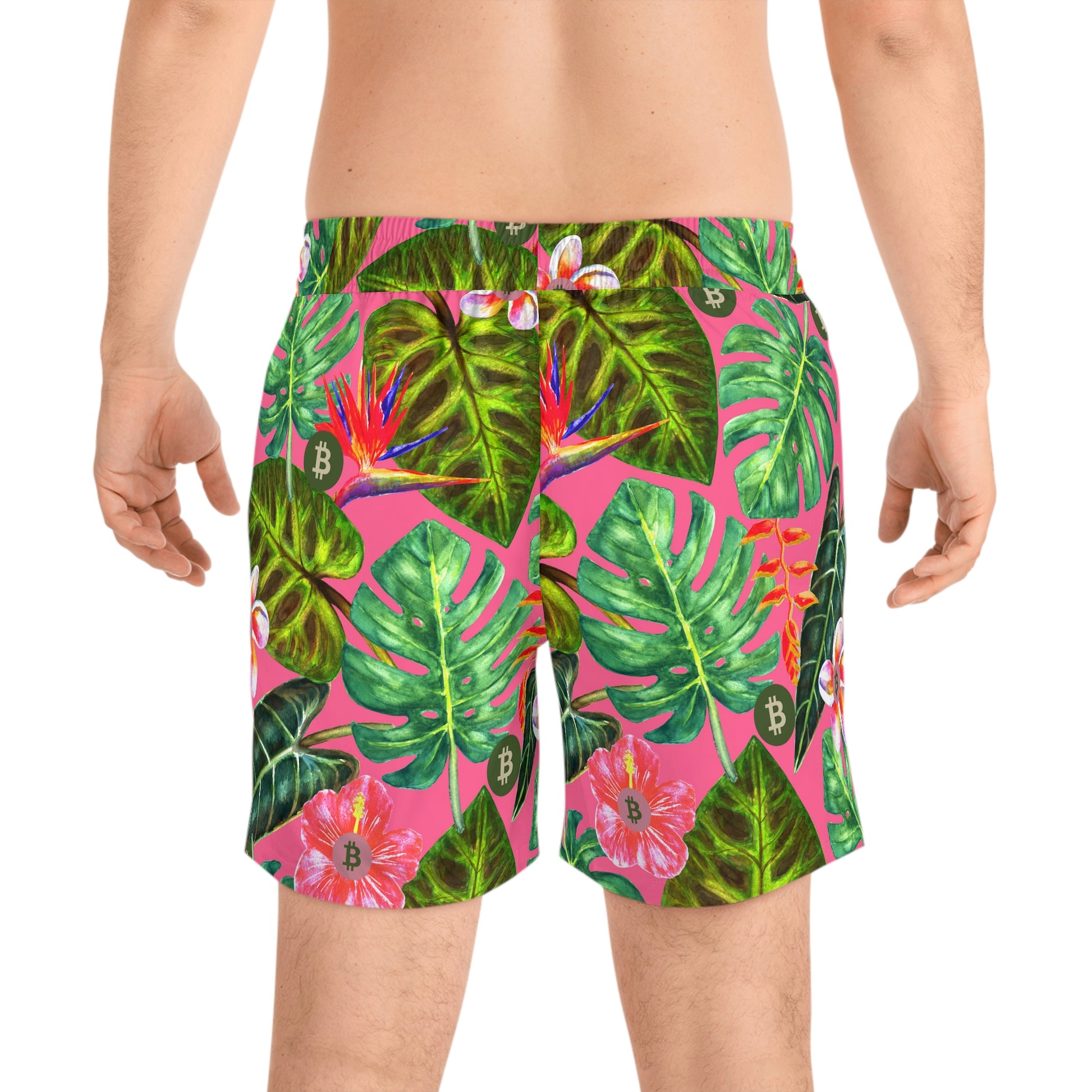 Made with 95% polyester and 5% spandex, it's the perfect blend for swimming and relaxing. These mid-length shorts are lightweight, come with an inner mesh brief and a relaxed fit, because sunny days at the coast are all about lounging and showing your Bitcoin pride. These shorts also come with two side pockets for added practicality.