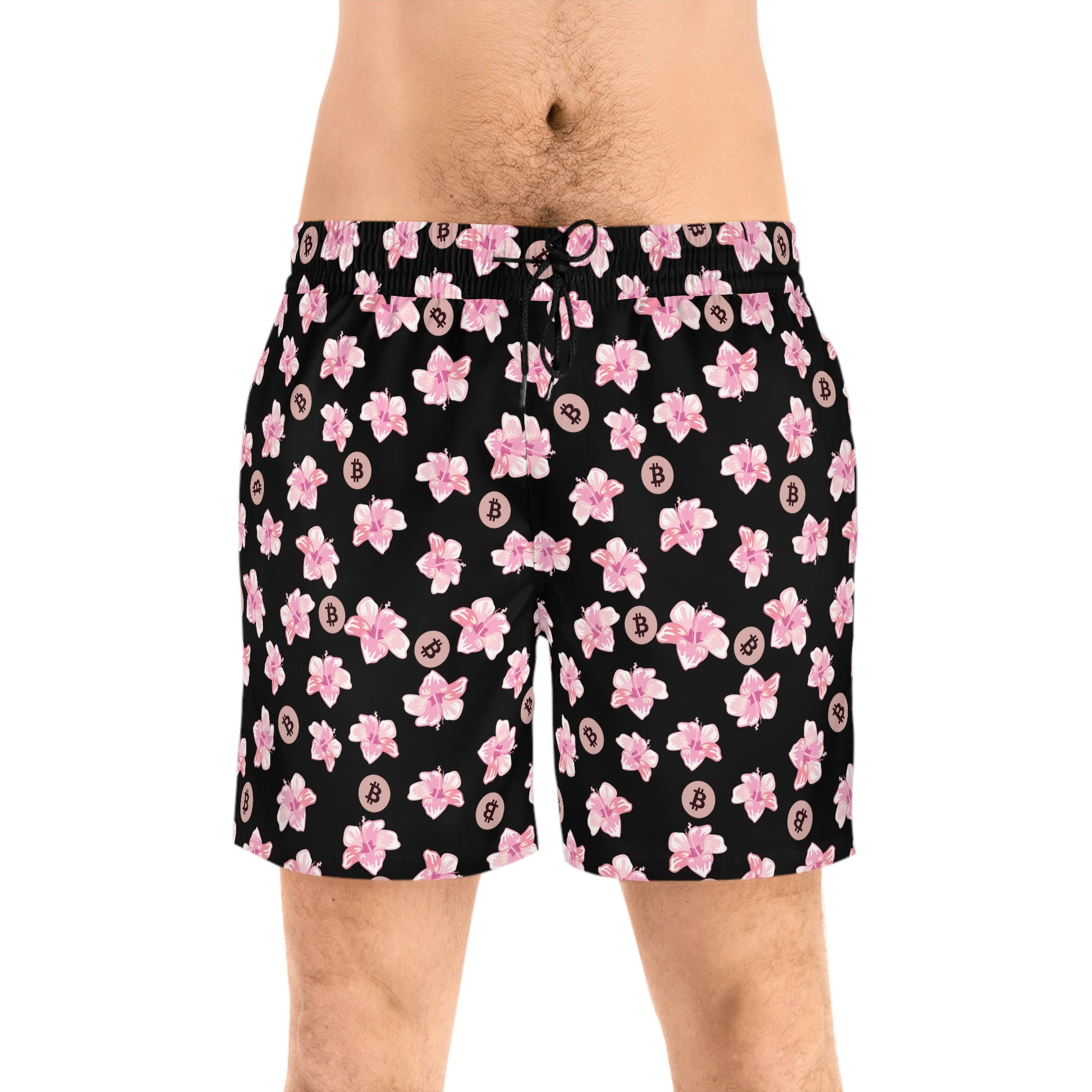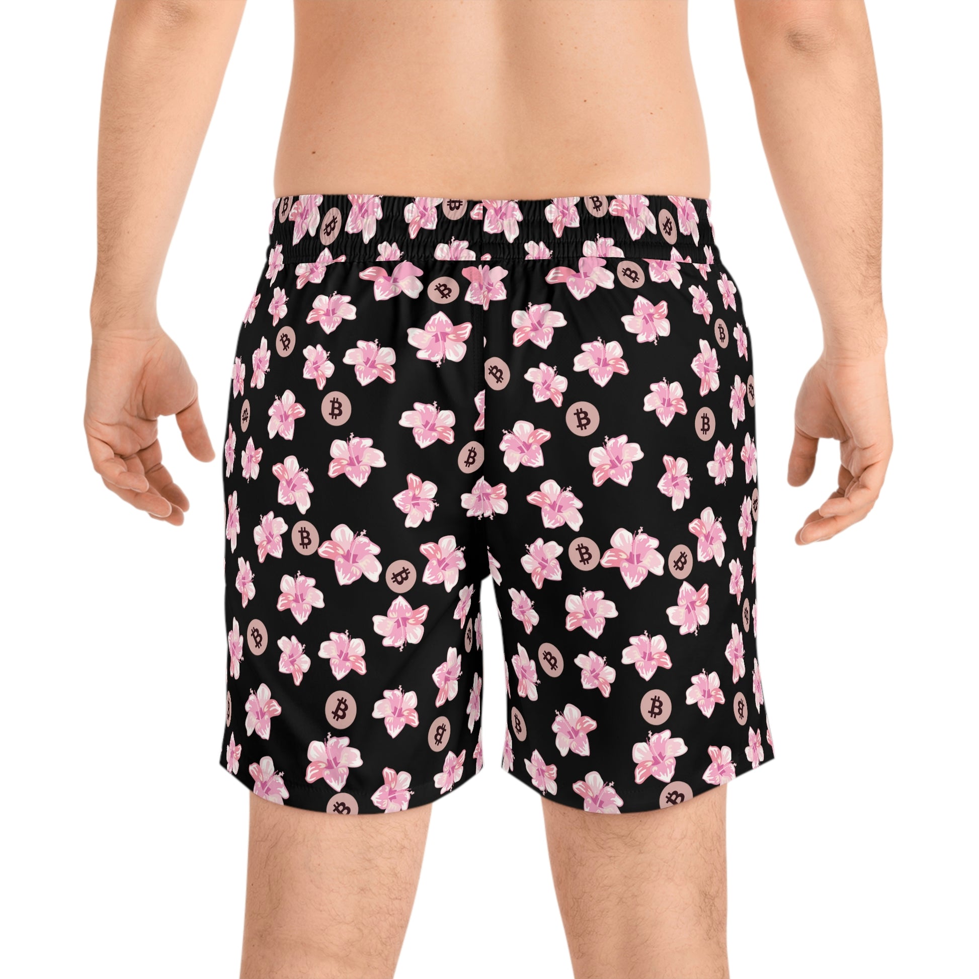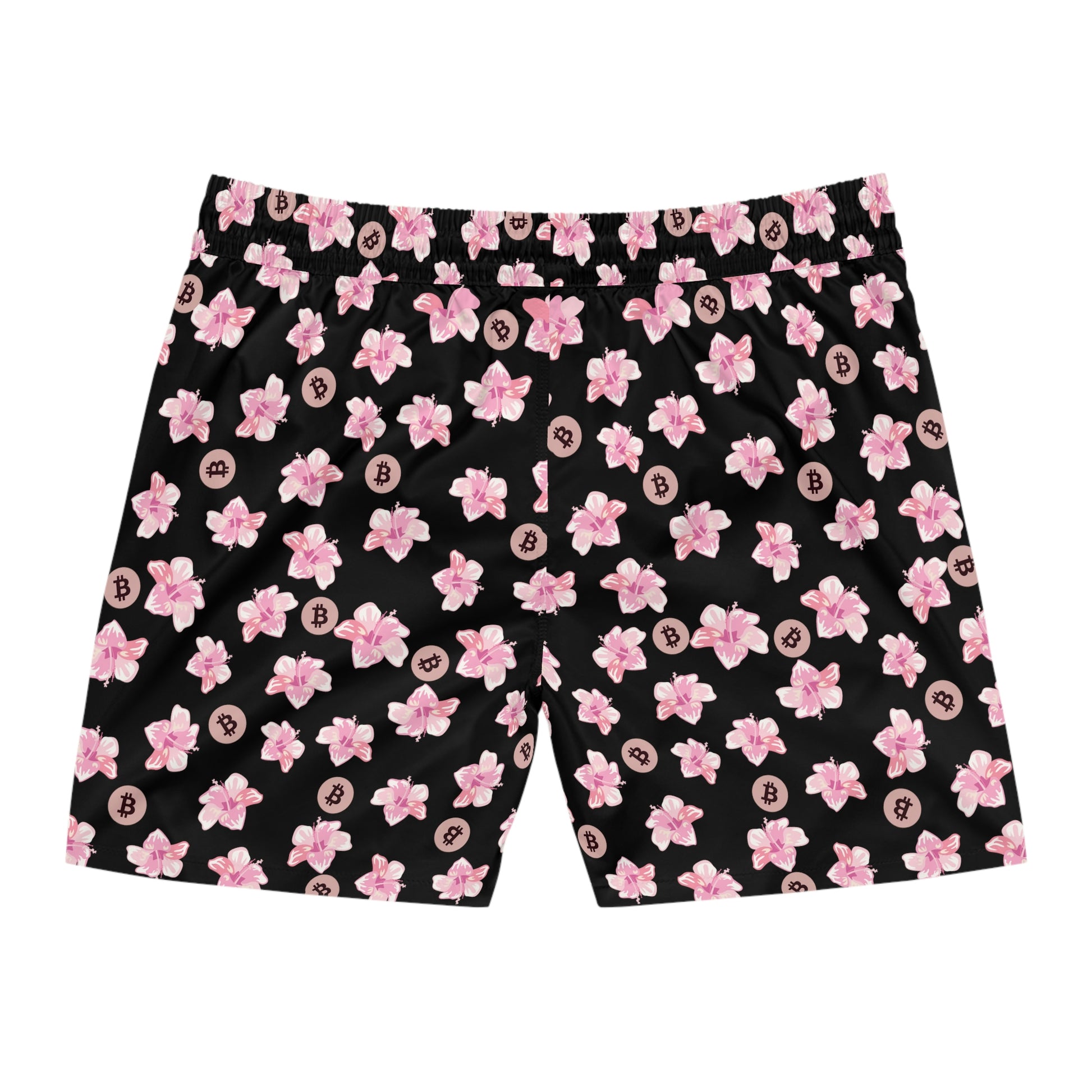 Made with 95% polyester and 5% spandex, it's the perfect blend for swimming and relaxing. These mid-length shorts are lightweight, come with an inner mesh brief and a relaxed fit, because sunny days at the coast are all about lounging and showing your Bitcoin pride. These shorts also come with two side pockets for added practicality.