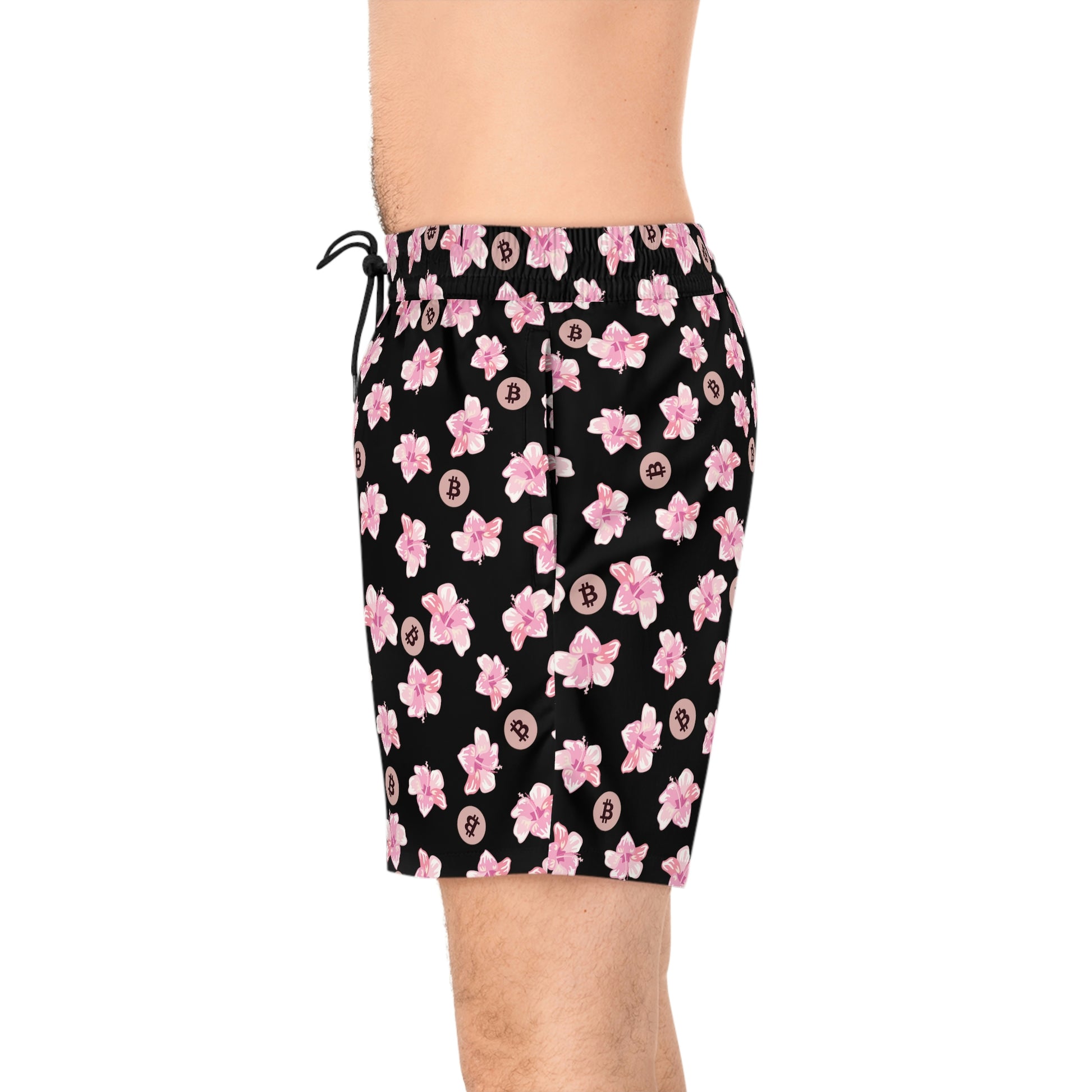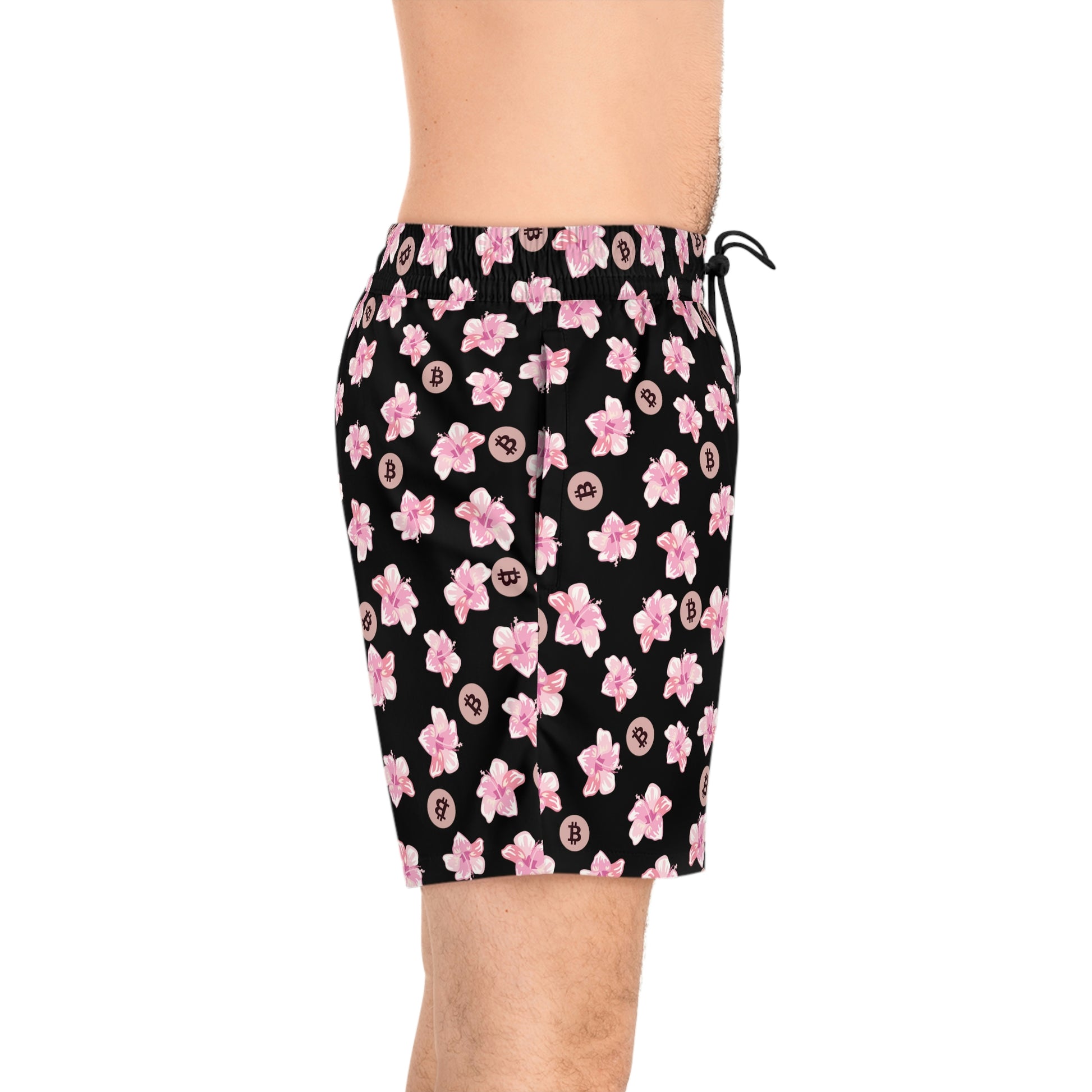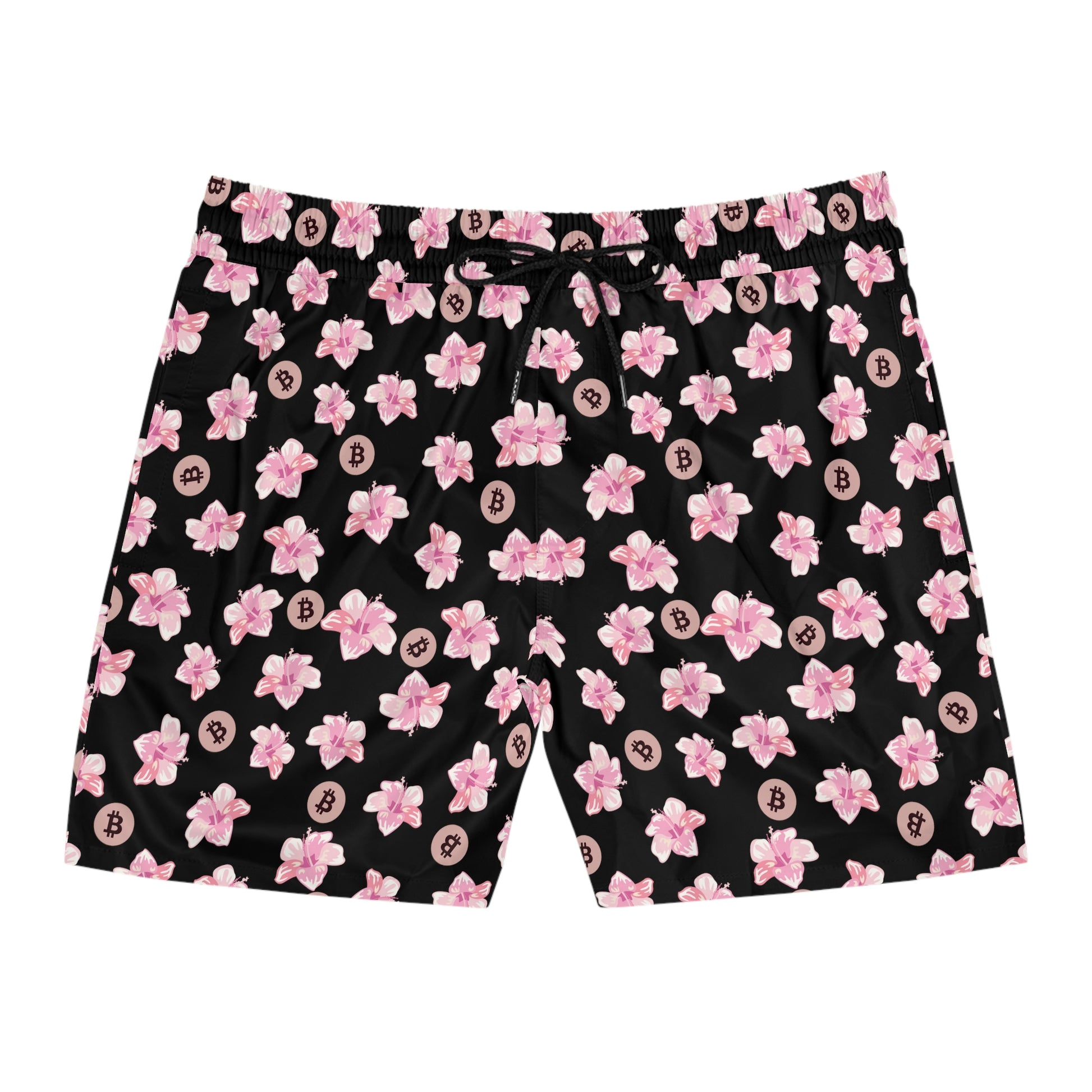 Made with 95% polyester and 5% spandex, it's the perfect blend for swimming and relaxing. These mid-length shorts are lightweight, come with an inner mesh brief and a relaxed fit, because sunny days at the coast are all about lounging and showing your Bitcoin pride. These shorts also come with two side pockets for added practicality.