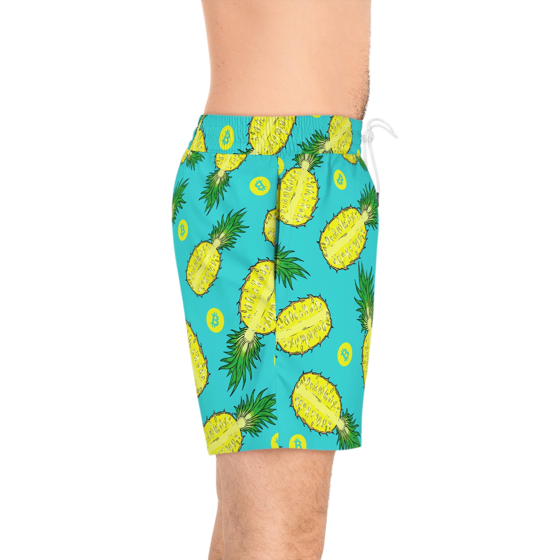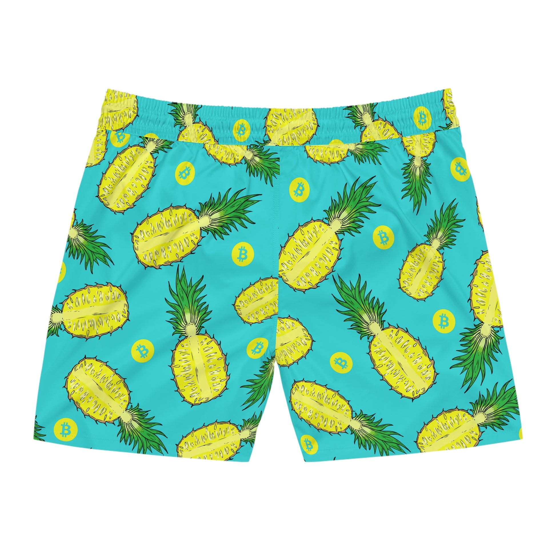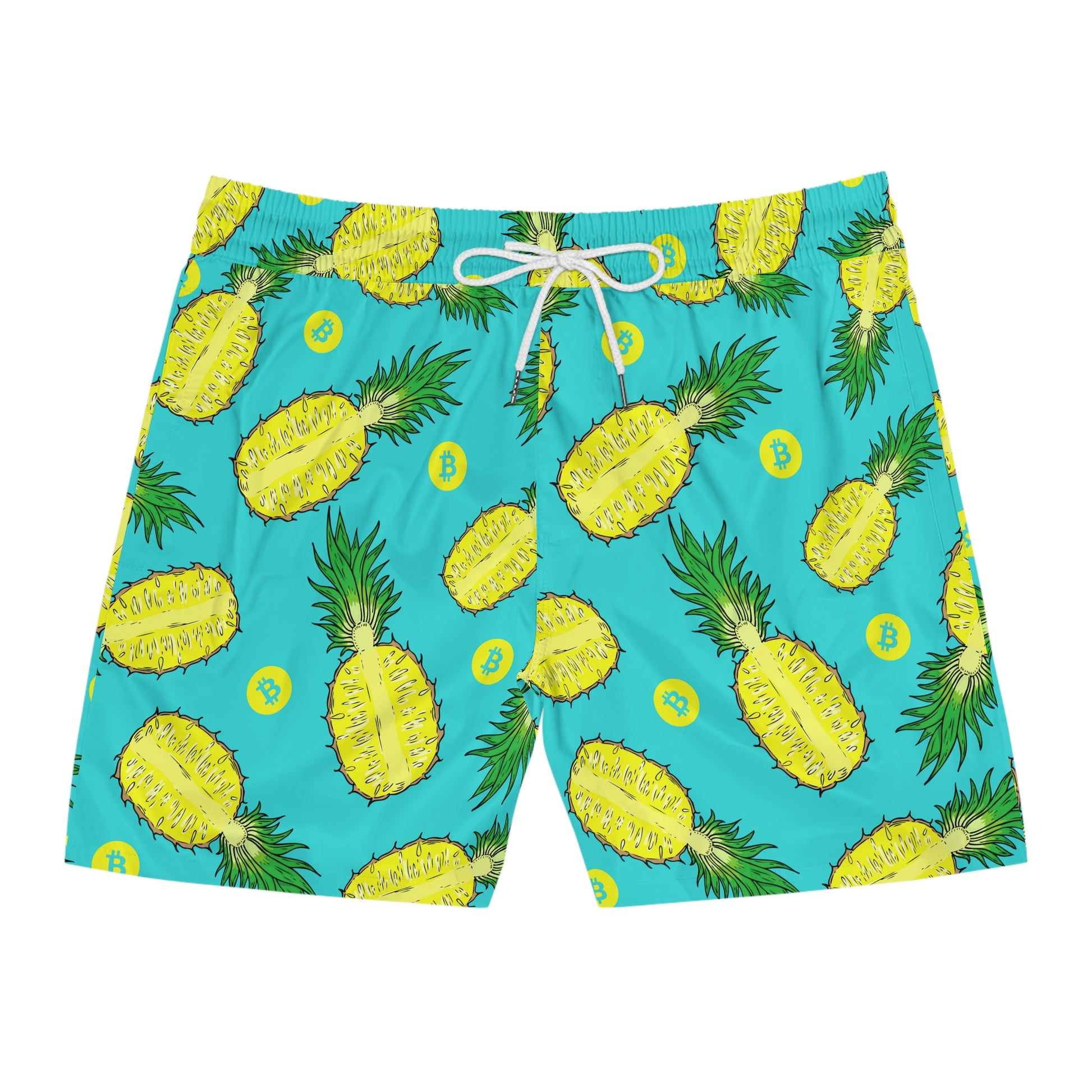 Made with 95% polyester and 5% spandex, it's the perfect blend for swimming and relaxing. These mid-length shorts are lightweight, come with an inner mesh brief and a relaxed fit, because sunny days at the coast are all about lounging and showing your Bitcoin pride. These shorts also come with two side pockets for added practicality.
