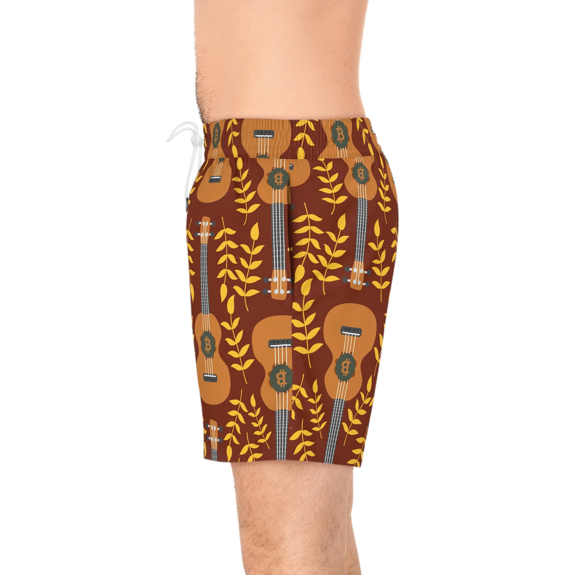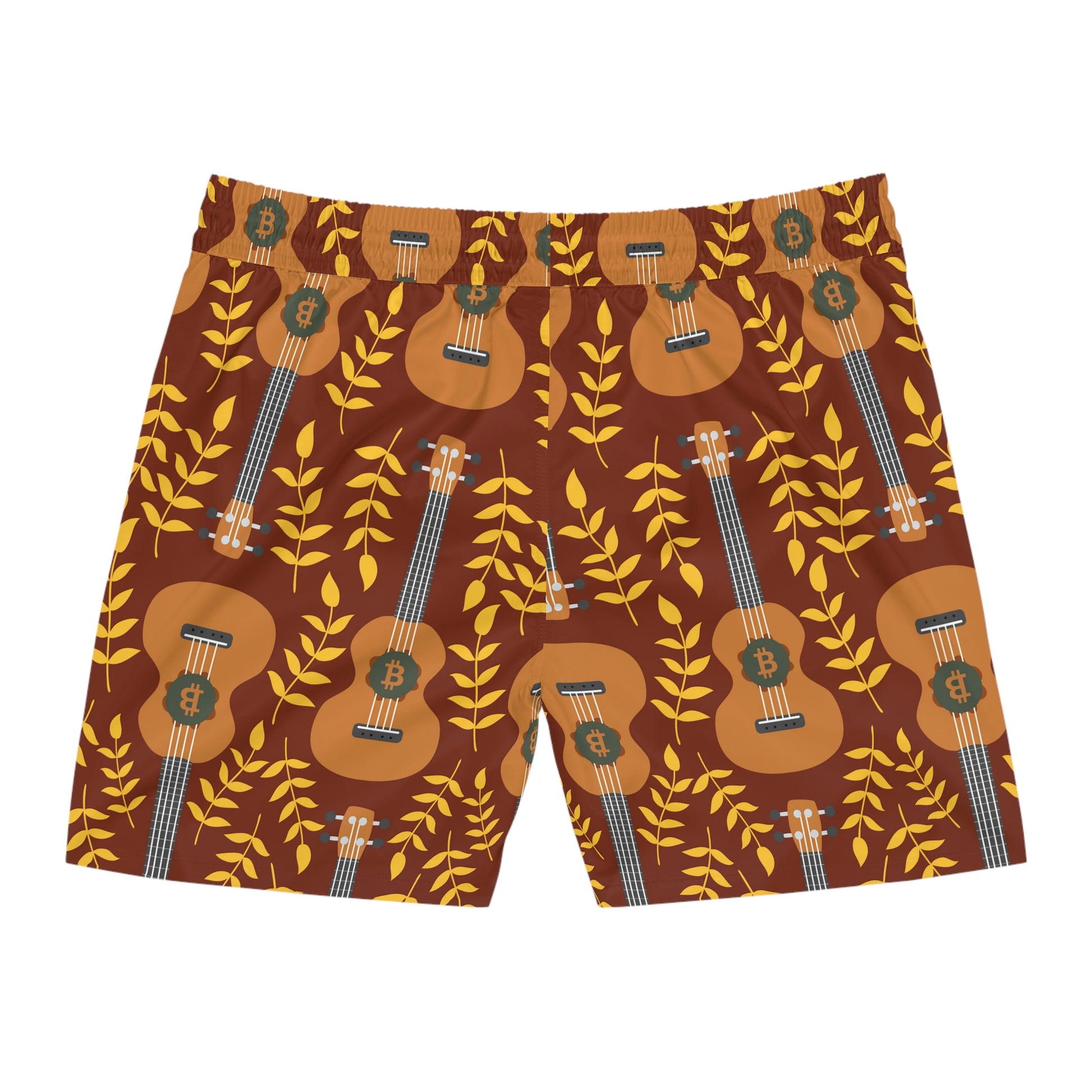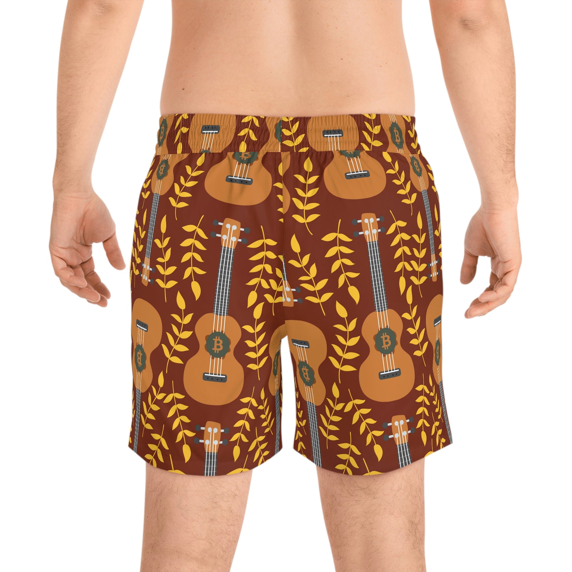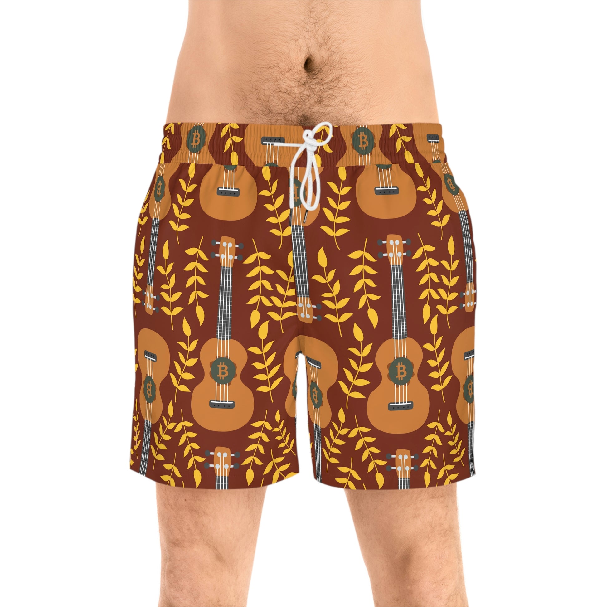 Made with 95% polyester and 5% spandex, it's the perfect blend for swimming and relaxing. These mid-length shorts are lightweight, come with an inner mesh brief and a relaxed fit, because sunny days at the coast are all about lounging and showing your Bitcoin pride. These shorts also come with two side pockets for added practicality.