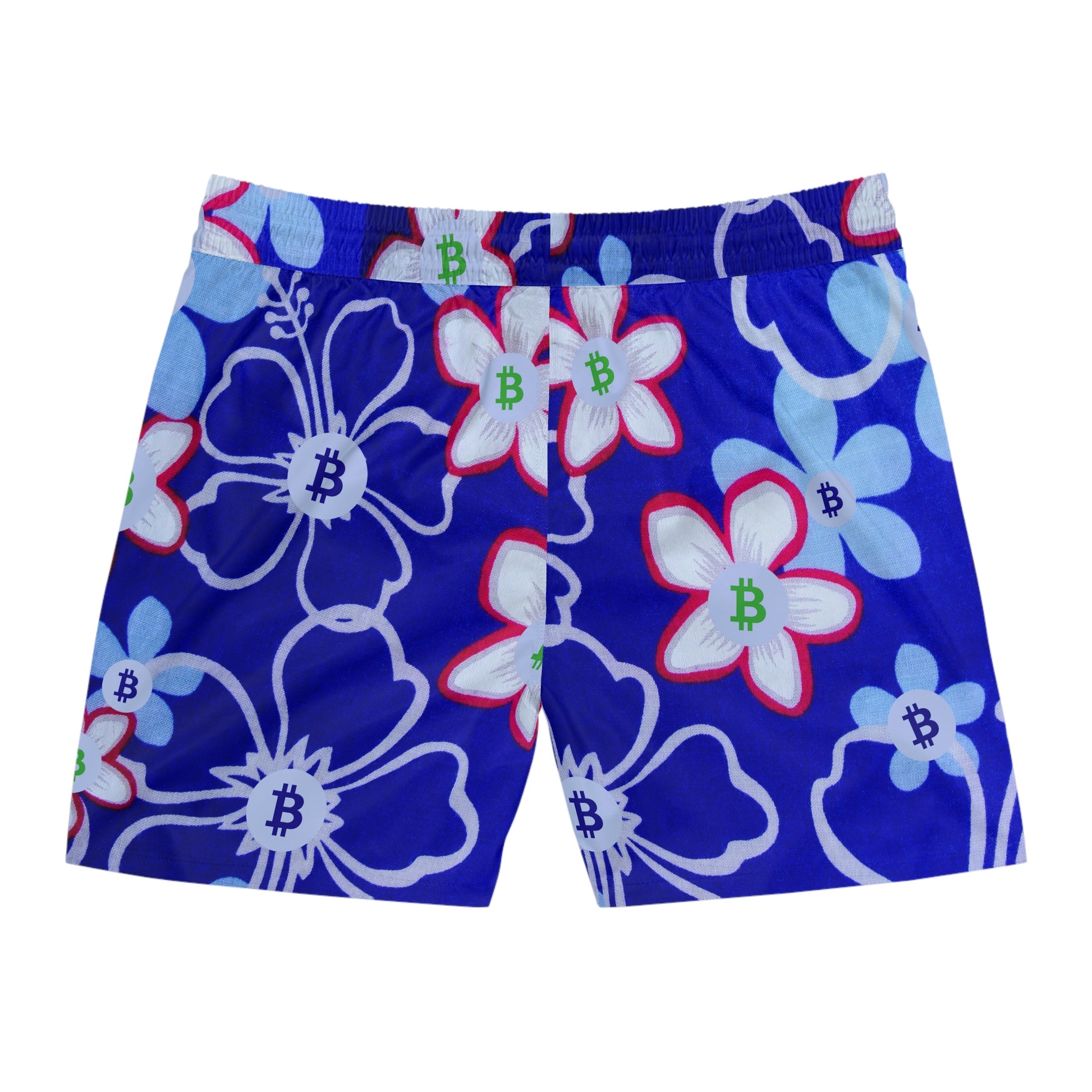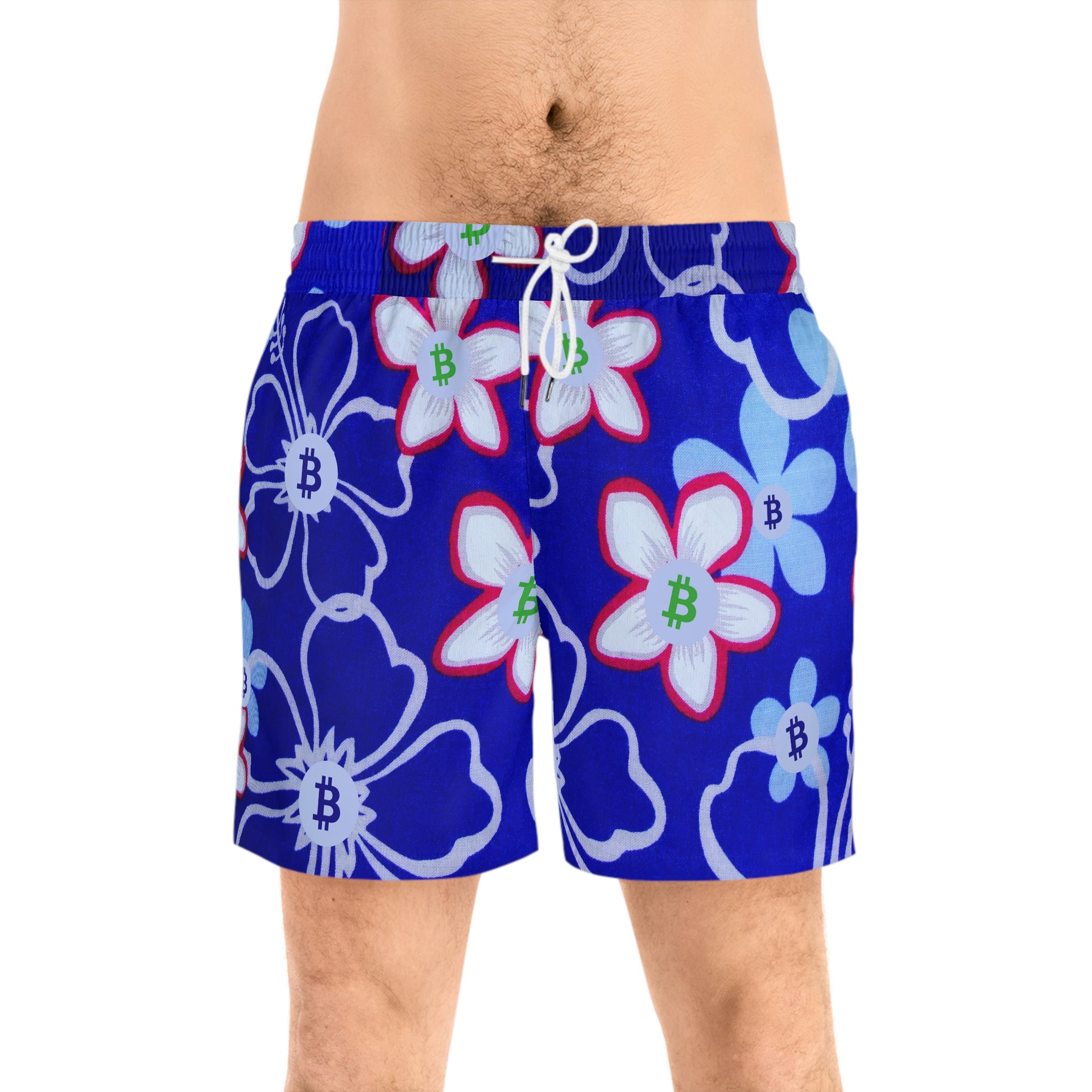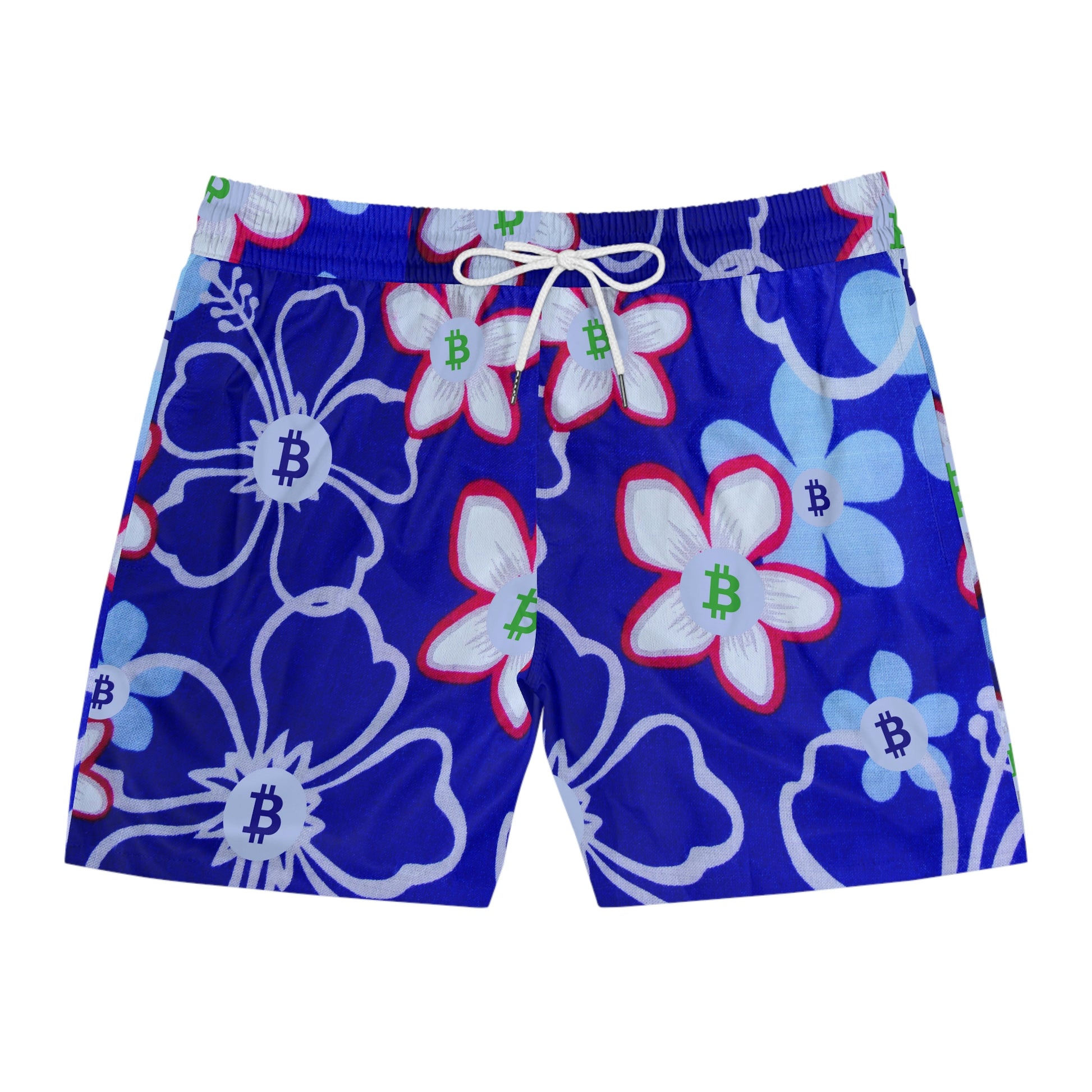 Made with 95% polyester and 5% spandex, it's the perfect blend for swimming and relaxing. These mid-length shorts are lightweight, come with an inner mesh brief and a relaxed fit, because sunny days at the coast are all about lounging and showing your Bitcoin pride. These shorts also come with two side pockets for added practicality.