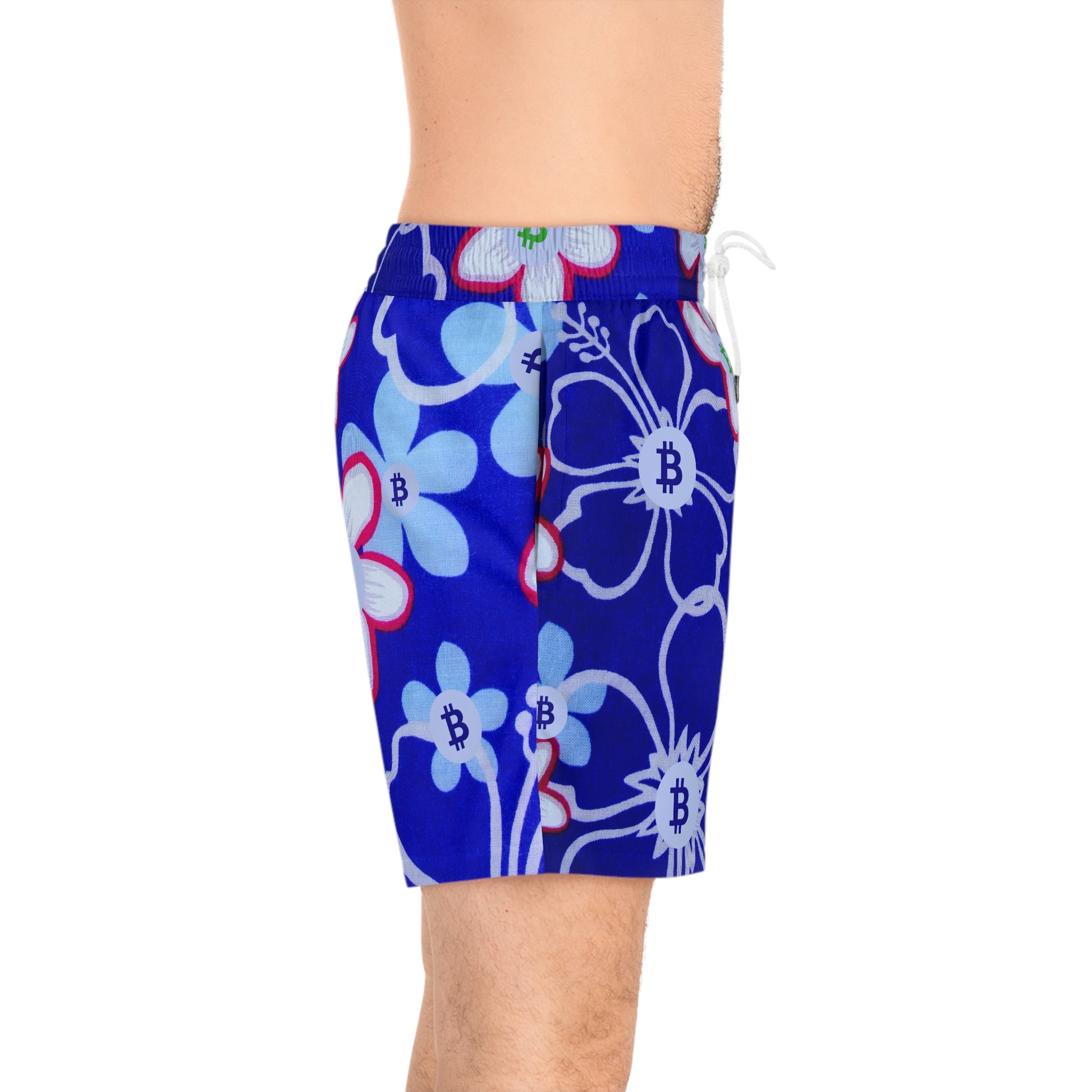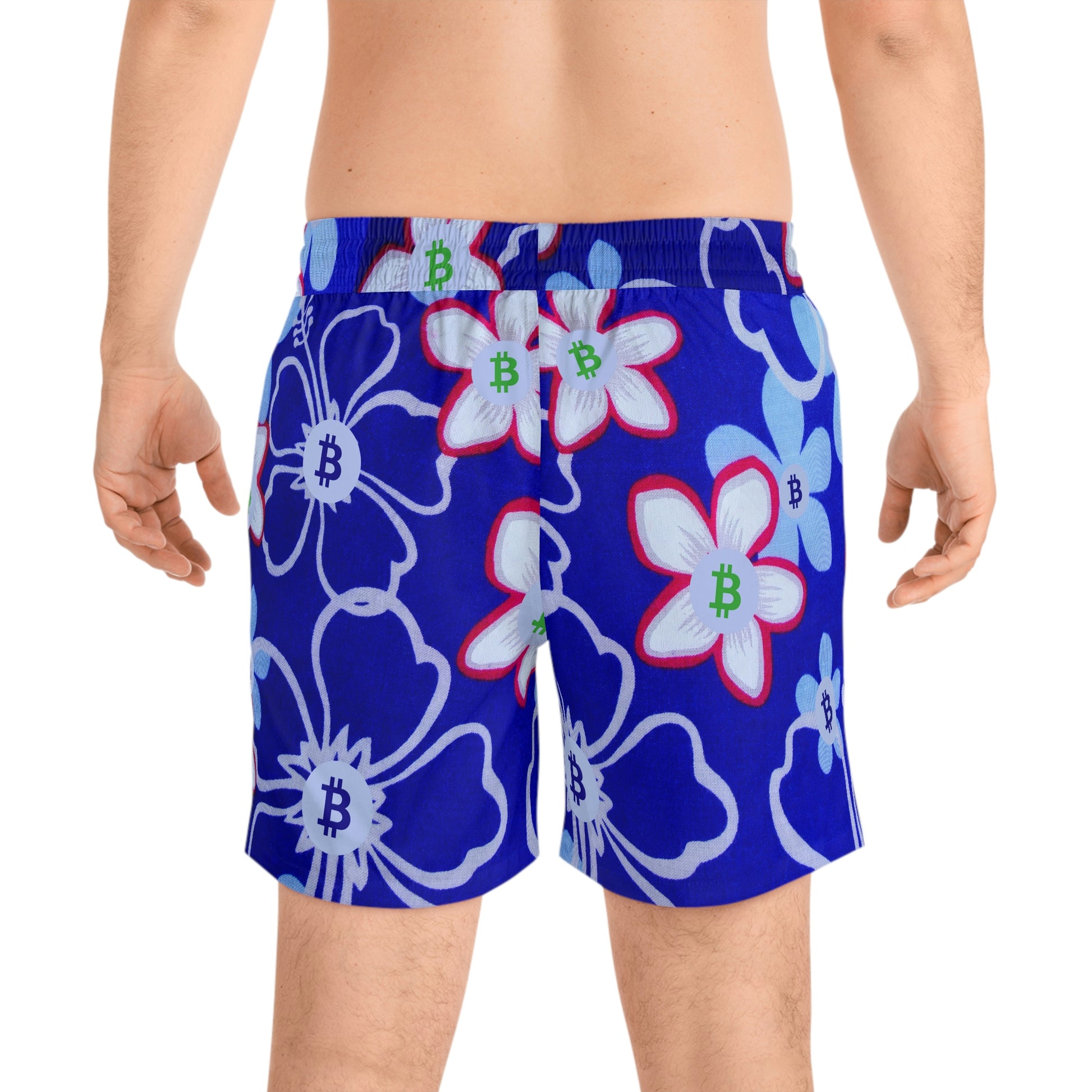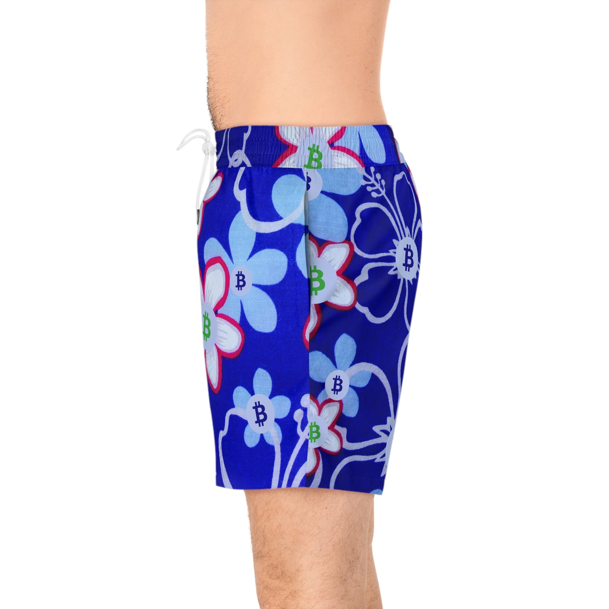 Made with 95% polyester and 5% spandex, it's the perfect blend for swimming and relaxing. These mid-length shorts are lightweight, come with an inner mesh brief and a relaxed fit, because sunny days at the coast are all about lounging and showing your Bitcoin pride. These shorts also come with two side pockets for added practicality.