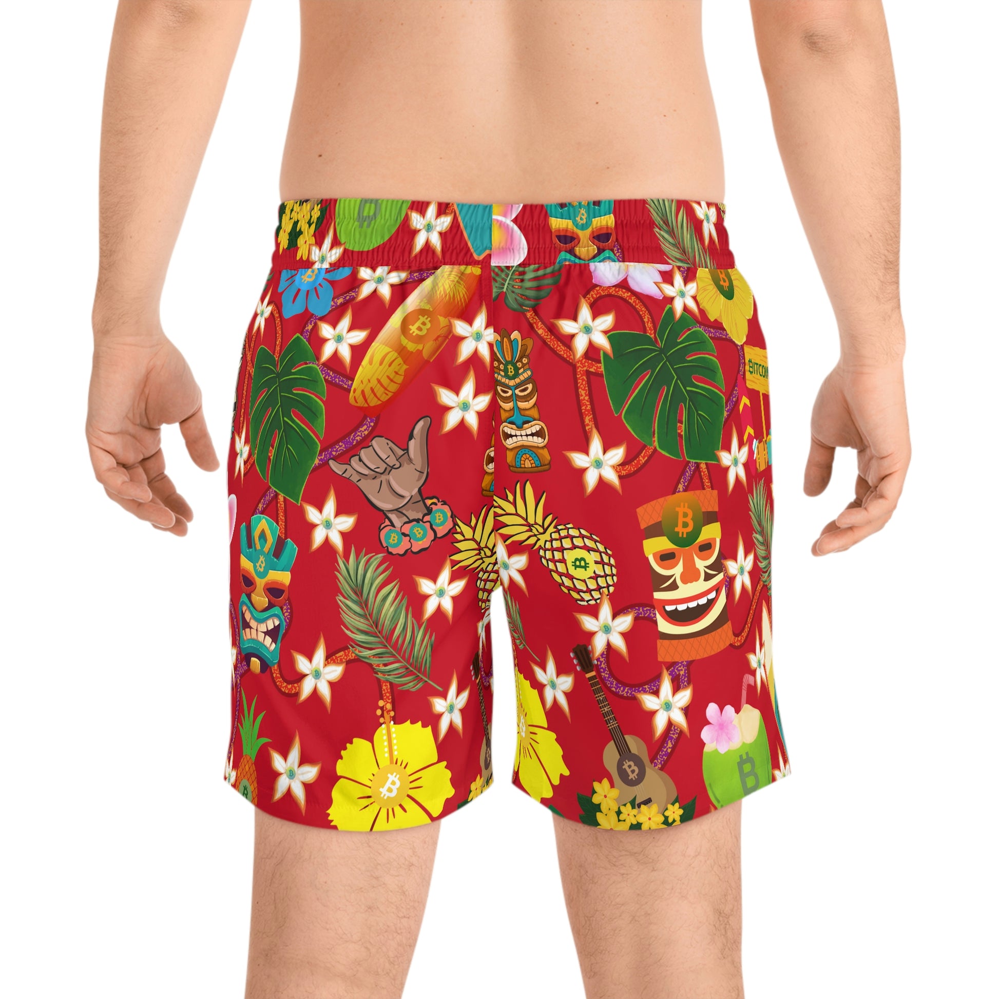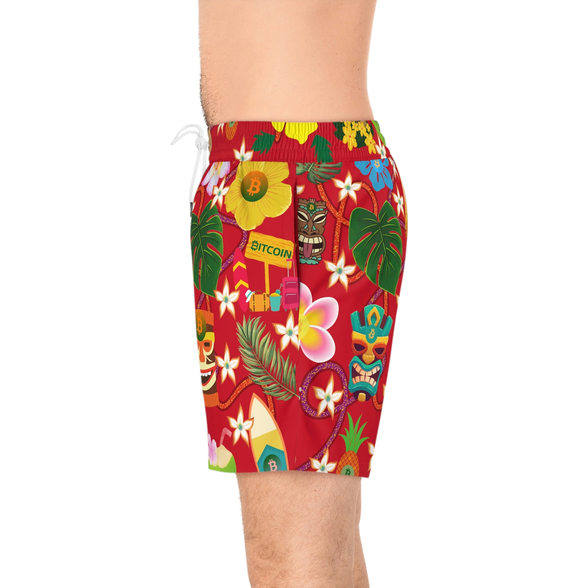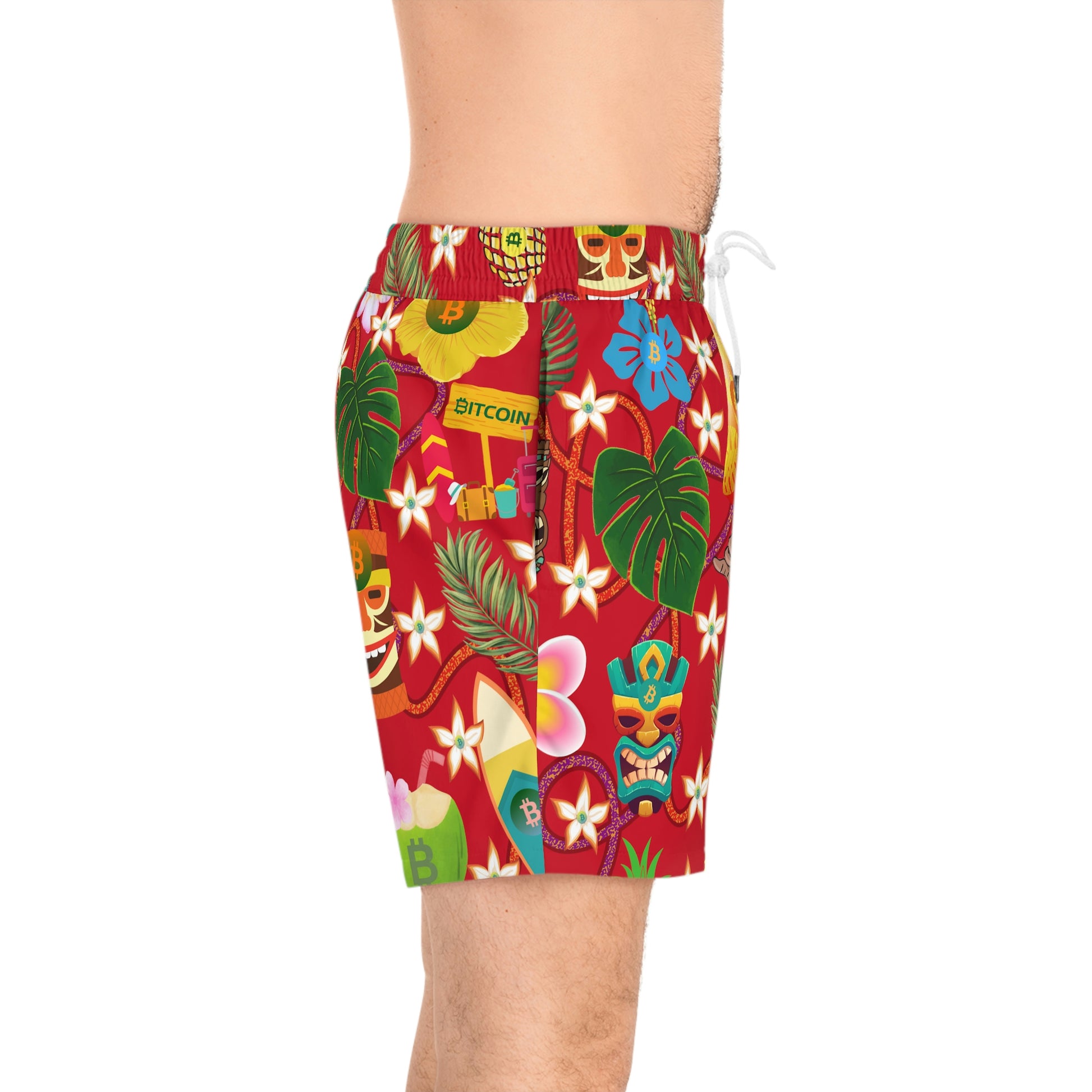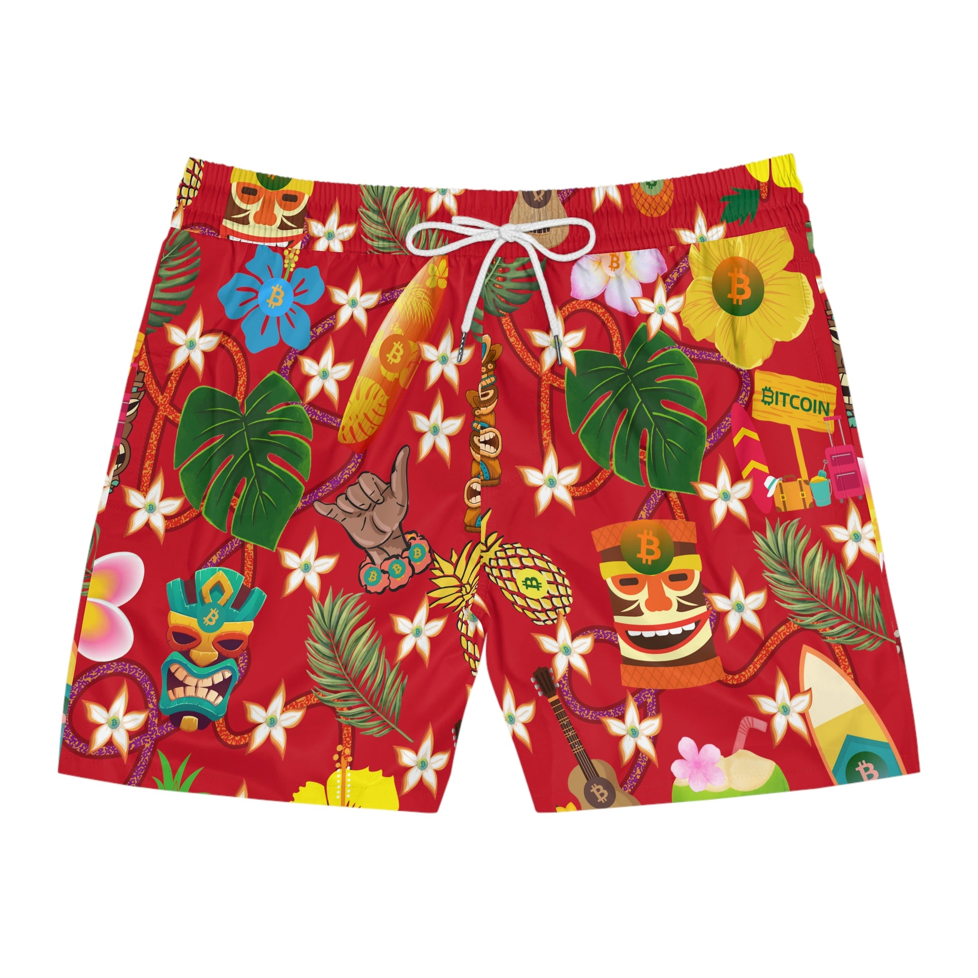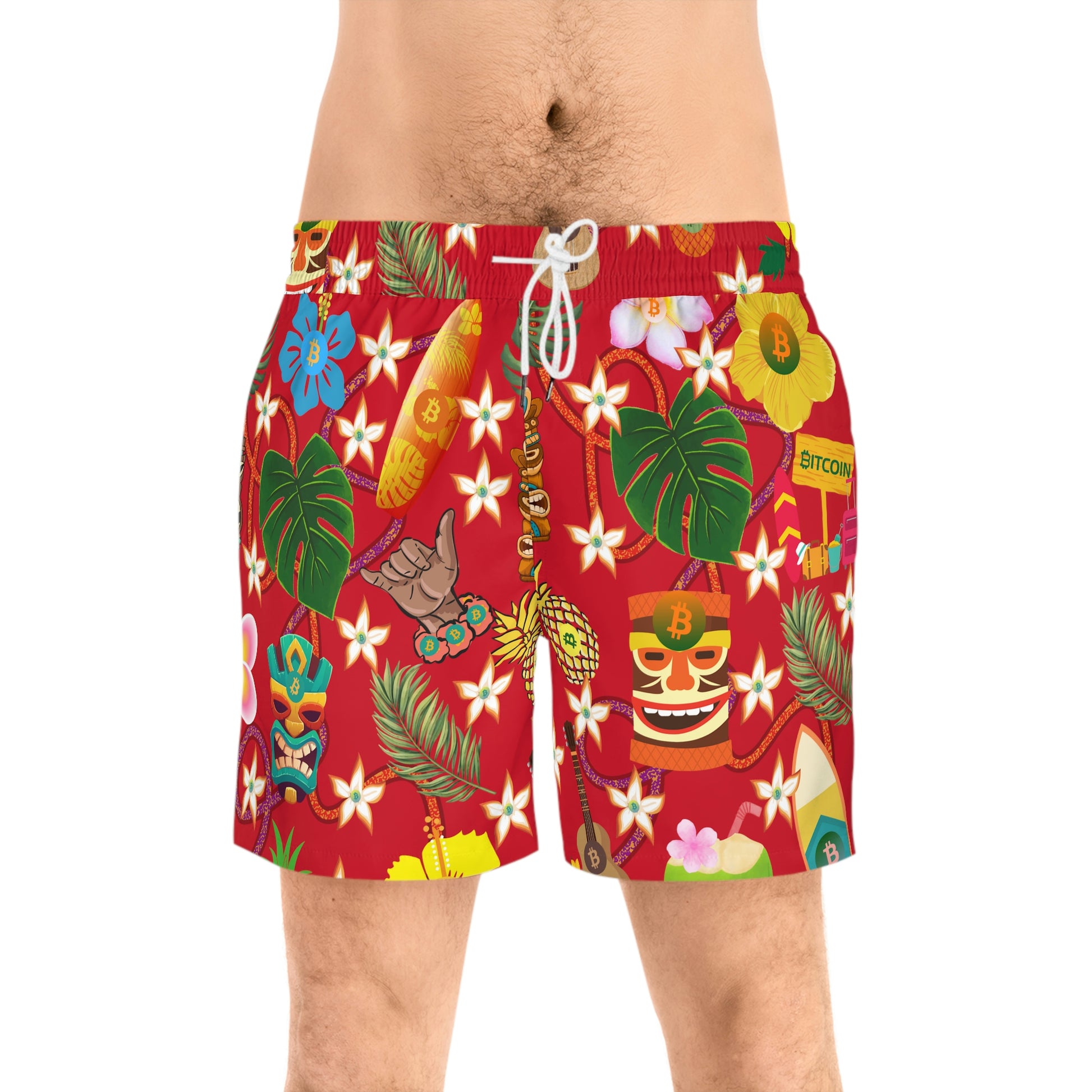 Made with 95% polyester and 5% spandex, it's the perfect blend for swimming and relaxing. These mid-length shorts are lightweight, come with an inner mesh brief and a relaxed fit, because sunny days at the coast are all about lounging and showing your Bitcoin pride. These shorts also come with two side pockets for added practicality.
