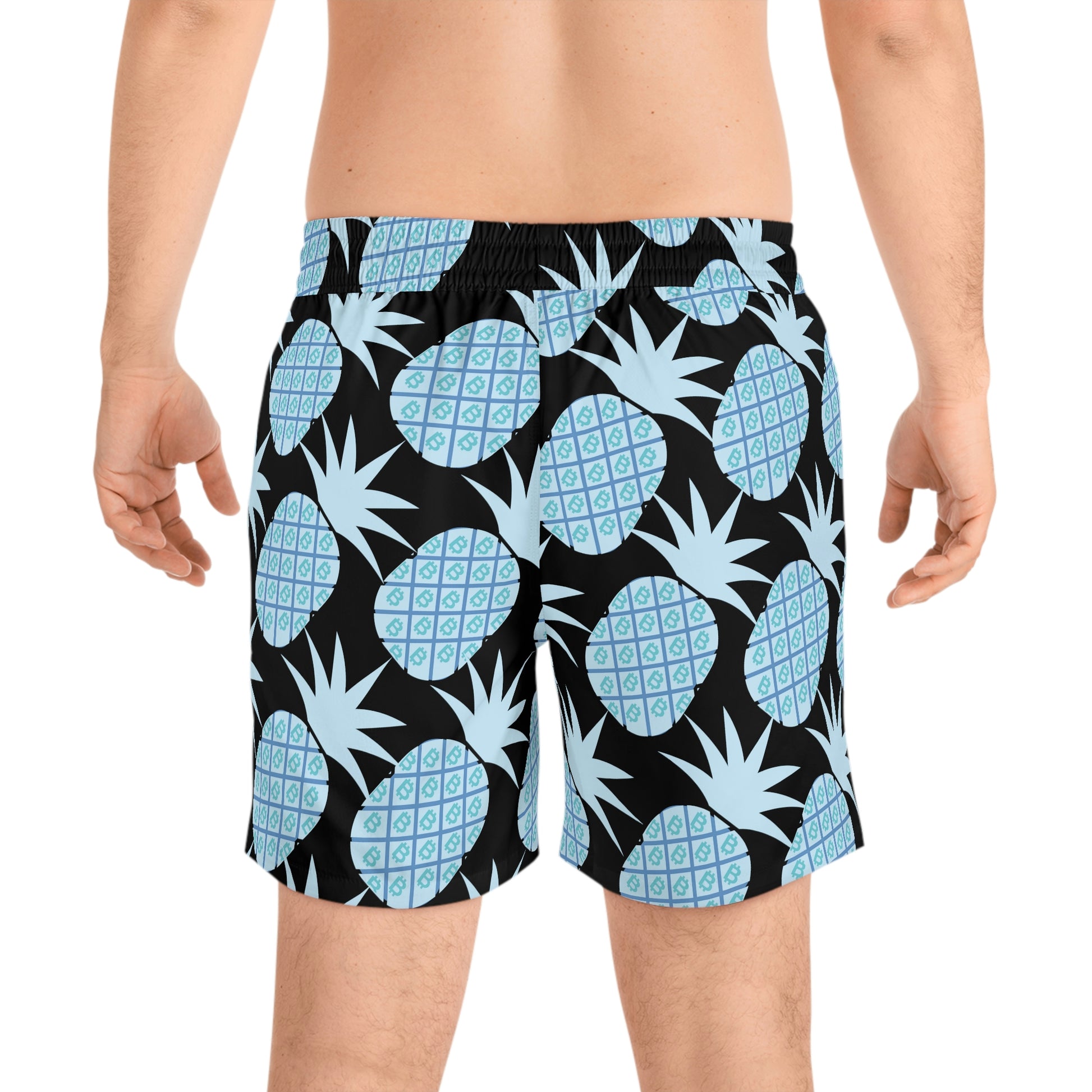 Made with 95% polyester and 5% spandex, it's the perfect blend for swimming and relaxing. These mid-length shorts are lightweight, come with an inner mesh brief and a relaxed fit, because sunny days at the coast are all about lounging and showing your Bitcoin pride. These shorts also come with two side pockets for added practicality.