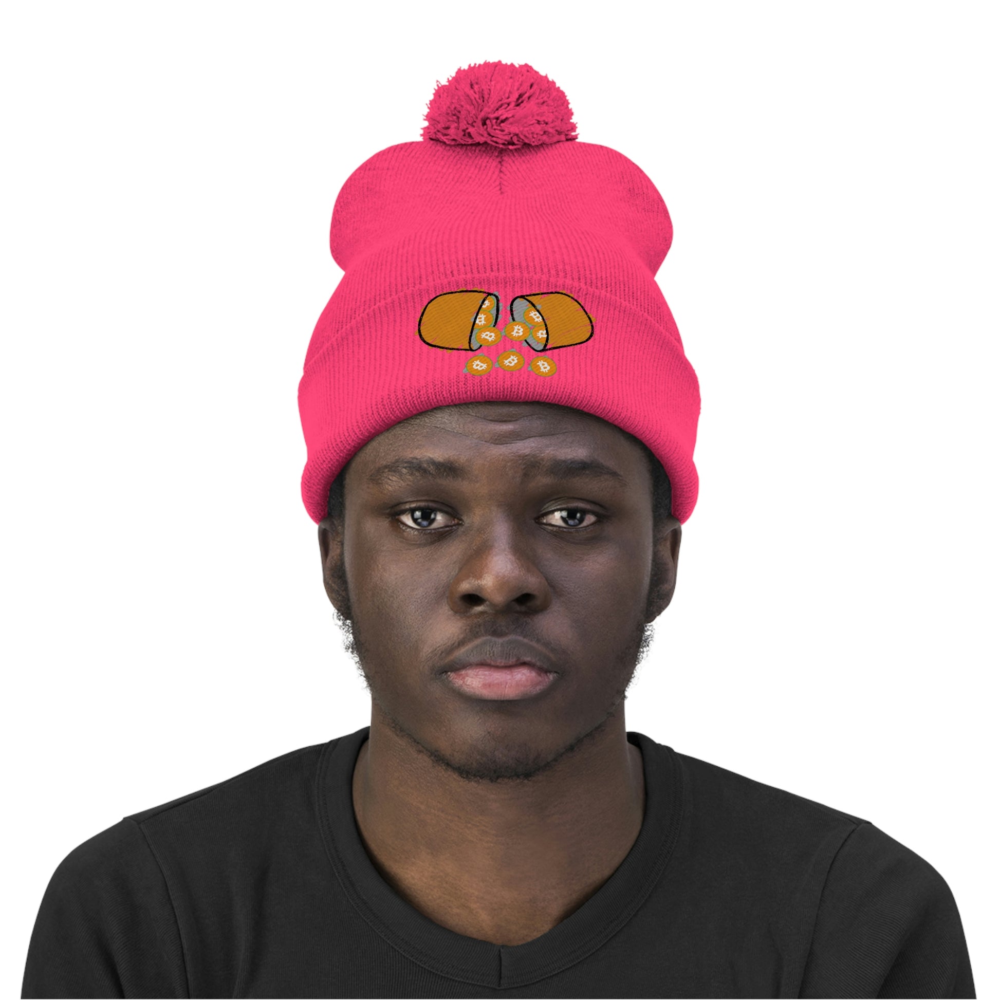Be festive and fun in style with this Bitcoin Pom Pom Beanie! Mix and match the color options with your winter wardrobe.