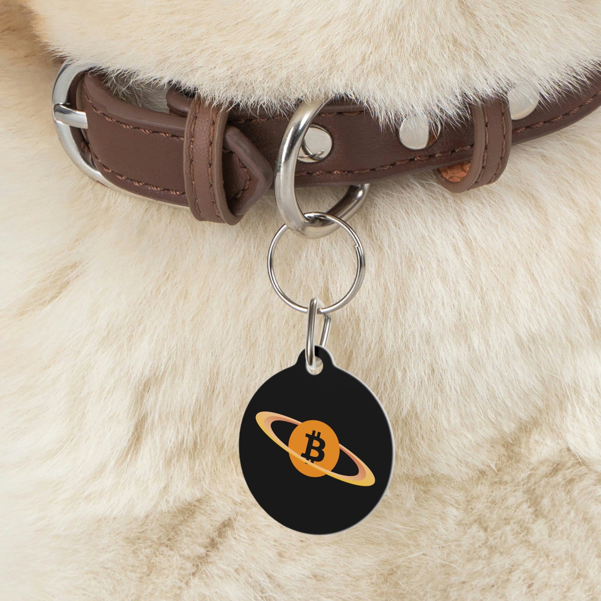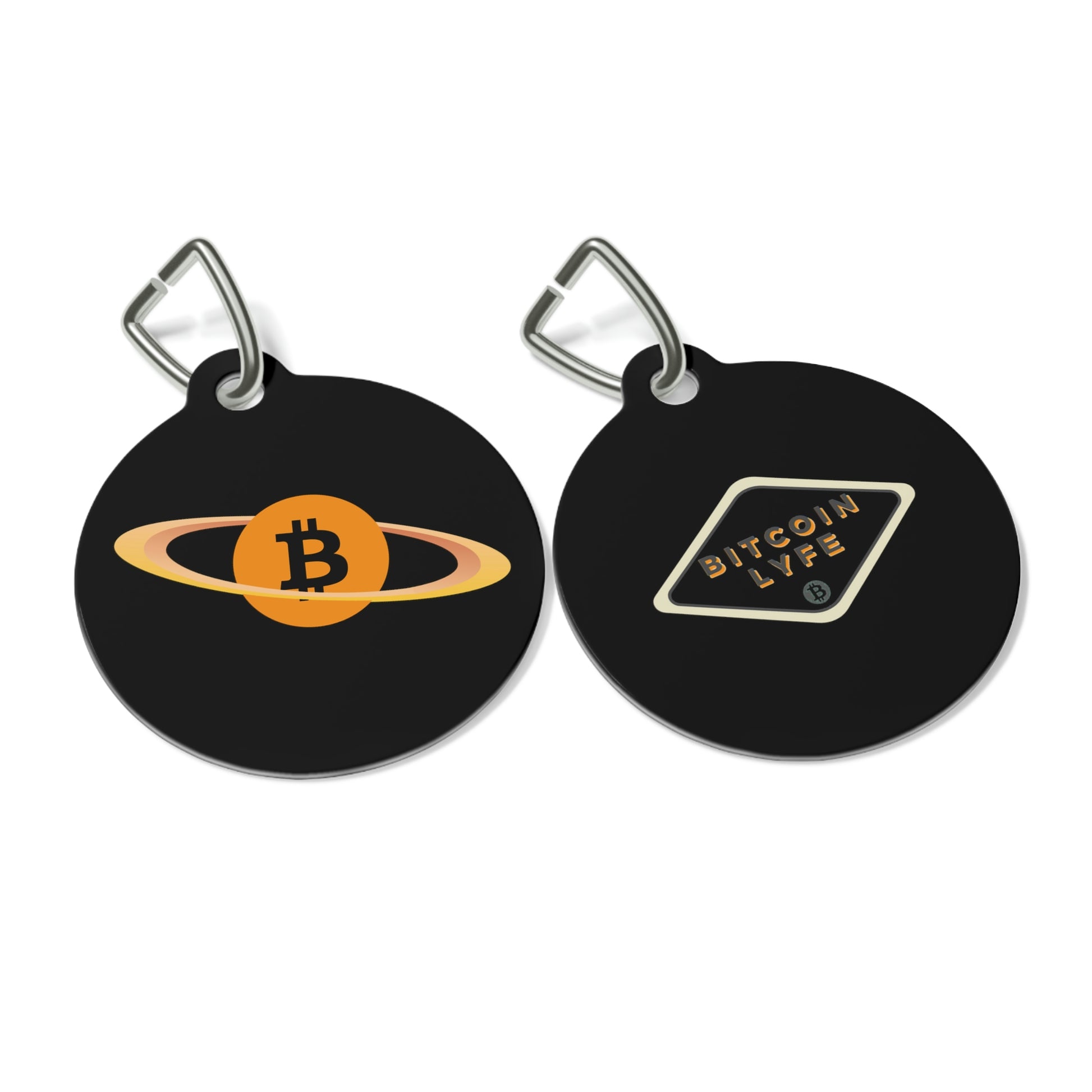 BItcoin pet tags provide a fresh way to spice up a furry friend's collar. The tag and clip are both made of metal. This increased durability comes in handy, as collar pieces can snag on brush, corners, etc.