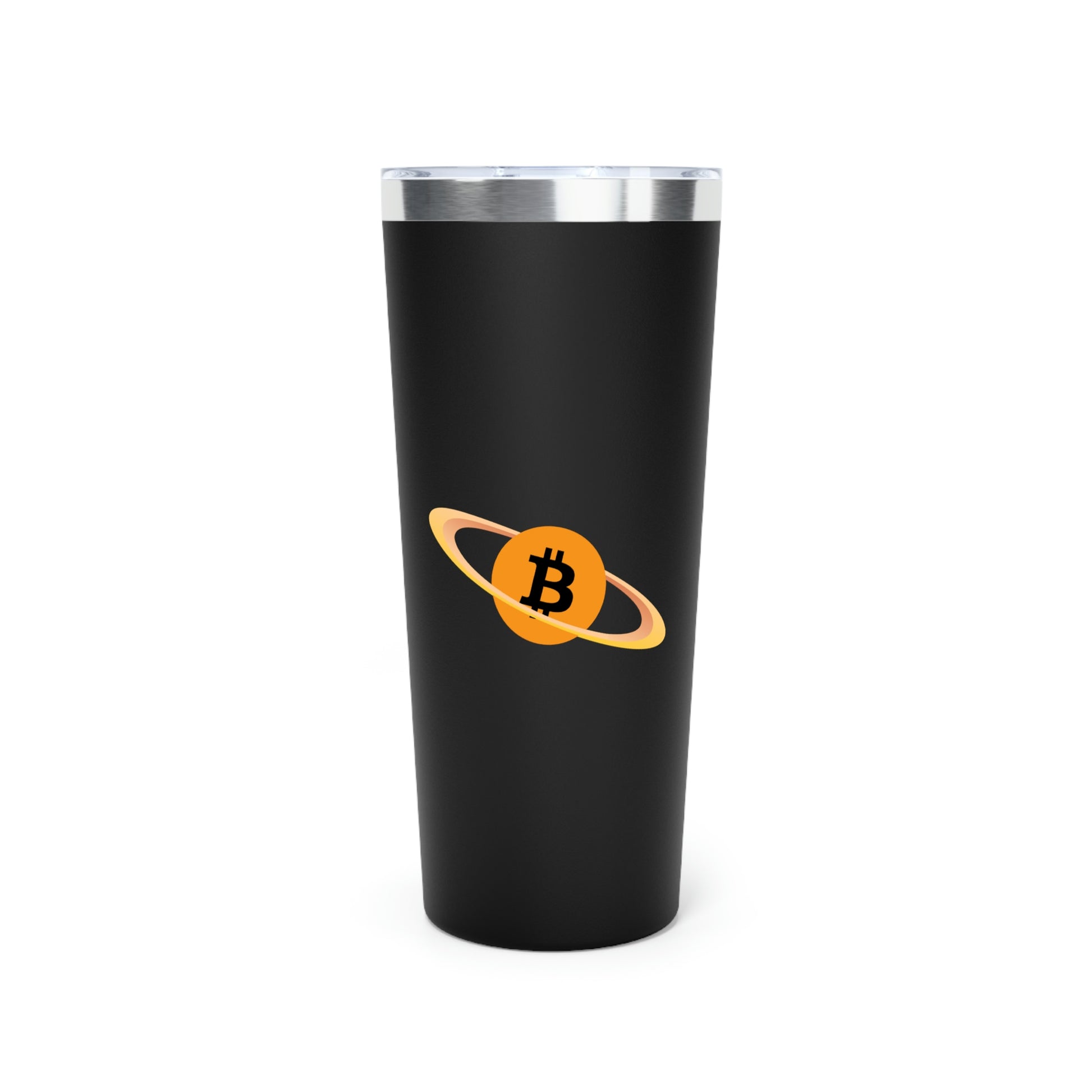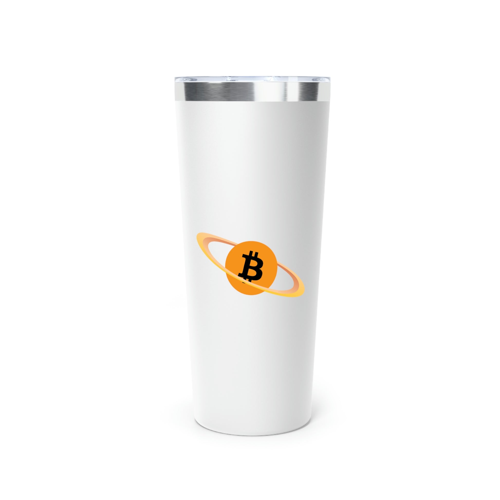Stay hydrated in style on a daily basis with this Bitcoin tumbler. With a 22oz capacity and copper vacuum insulation, our tumbler keeps your favorite beverages refreshingly cold for 24 hours, and soothingly hot for up to 6. Its stainless steel exterior is condensation-resistant while the powder coating adds extra style points.