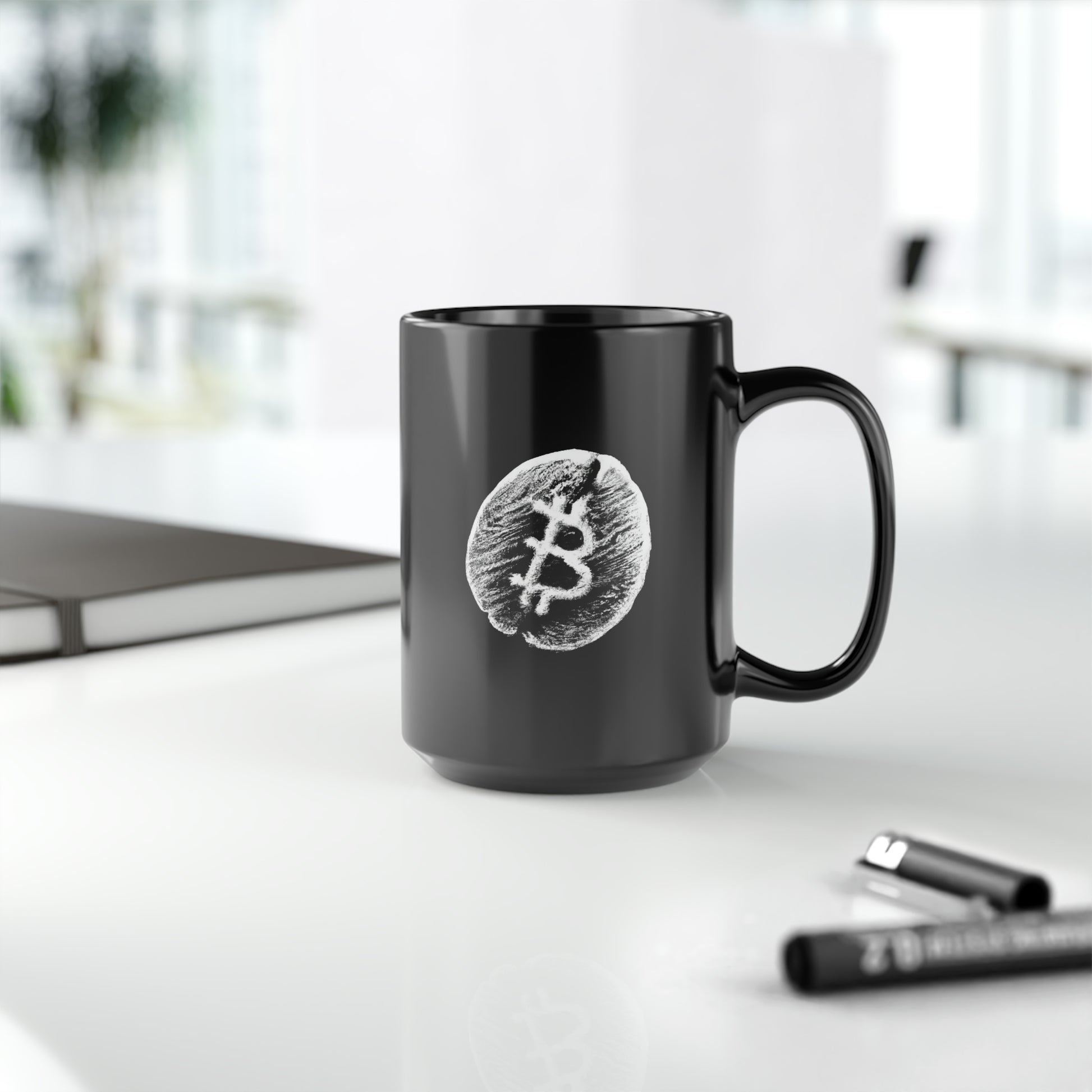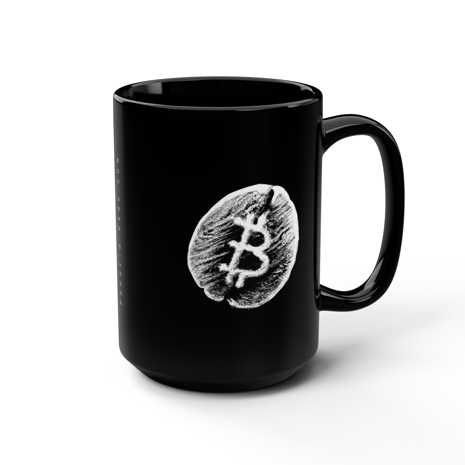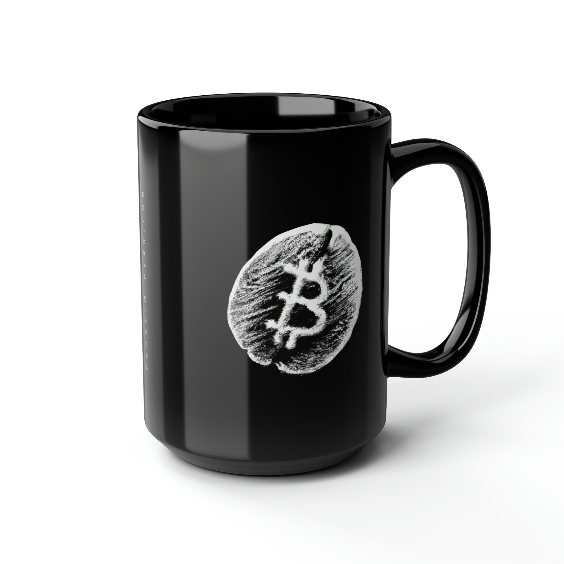 Introducing the Proof-O-Perk-inspired mug, a perfect fusion of coffee culture and digital scarcity that lets you show your love for exceptional brews and the Bitcoin revolution in style. These black mugs come in one size – 15oz (0.44l) – plenty for morning caffeine boosts and hot cups of tea on a rainy day. They're easy to grip and feel sturdy thanks to the C-shaped handle. Add more personality by decorating them with your original designs. They'll be printed on the black ceramic material in picture-perfect quality with a glossy finish.