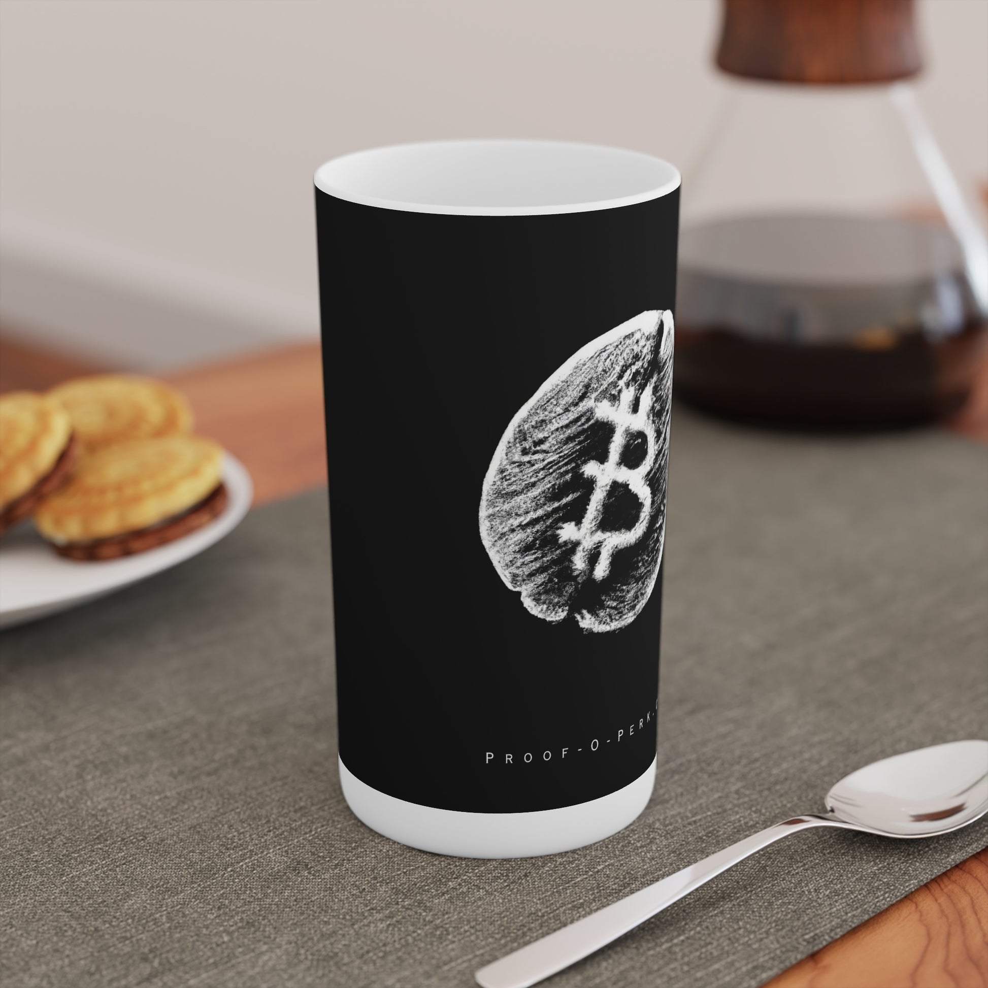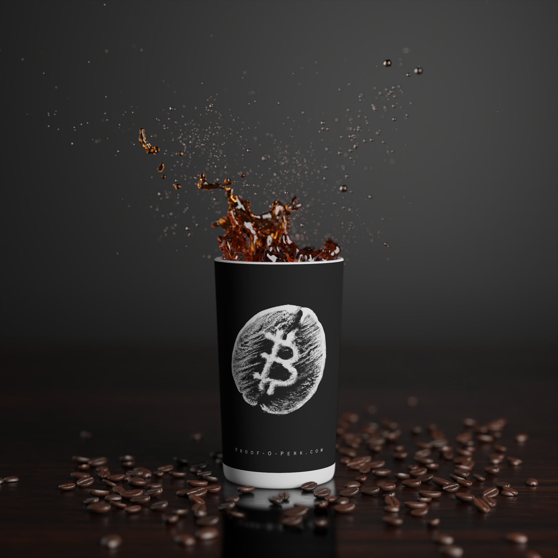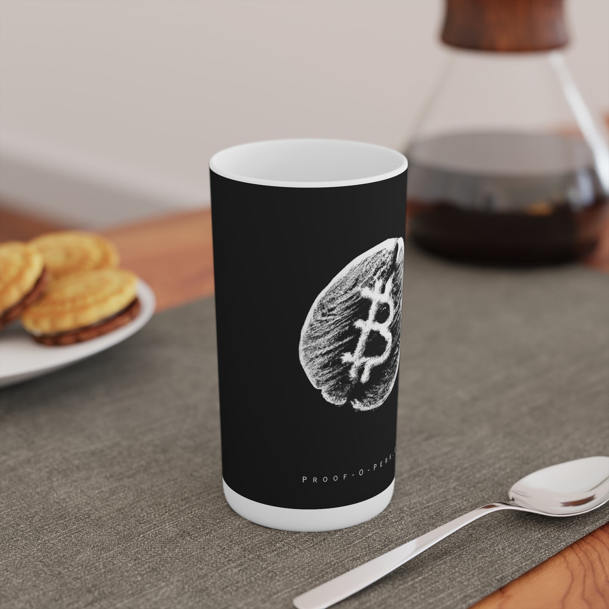 Introducing the Proof-O-Perk-inspired conical mug, a perfect fusion of coffee culture and digital scarcity that lets you show your love for exceptional brews and the Bitcoin revolution in style. For starting any day on the brightest note, this Proof-O-Perk coffee mug is the ideal way to sip this morning's pick-me-up. Made with durable white ceramic material, each cup features the signature conical shape that you'll find in professional cafes. Available in 8oz, 12oz and in espresso size of 3oz.