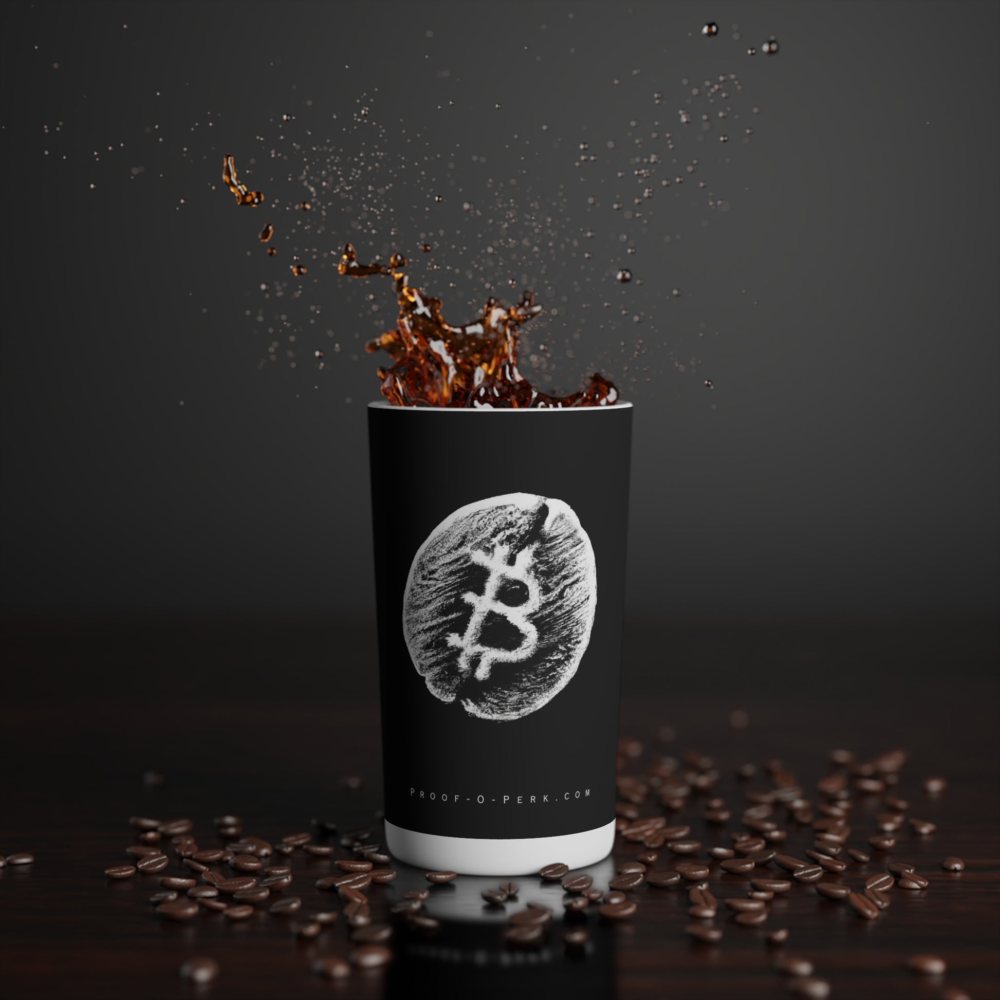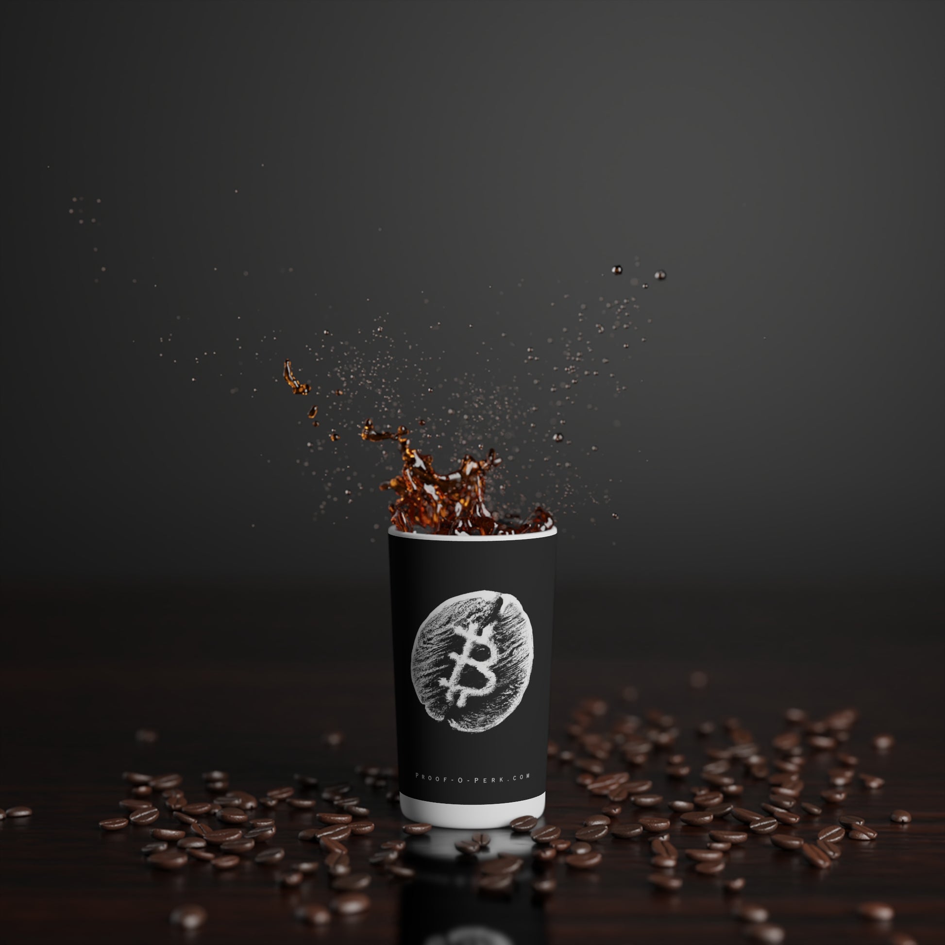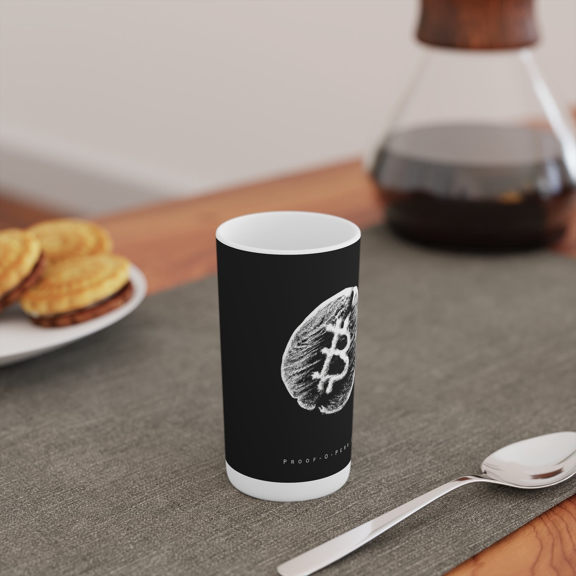 Introducing the Proof-O-Perk-inspired conical mug, a perfect fusion of coffee culture and digital scarcity that lets you show your love for exceptional brews and the Bitcoin revolution in style. For starting any day on the brightest note, this Proof-O-Perk coffee mug is the ideal way to sip this morning's pick-me-up. Made with durable white ceramic material, each cup features the signature conical shape that you'll find in professional cafes. Available in 8oz, 12oz and in espresso size of 3oz.