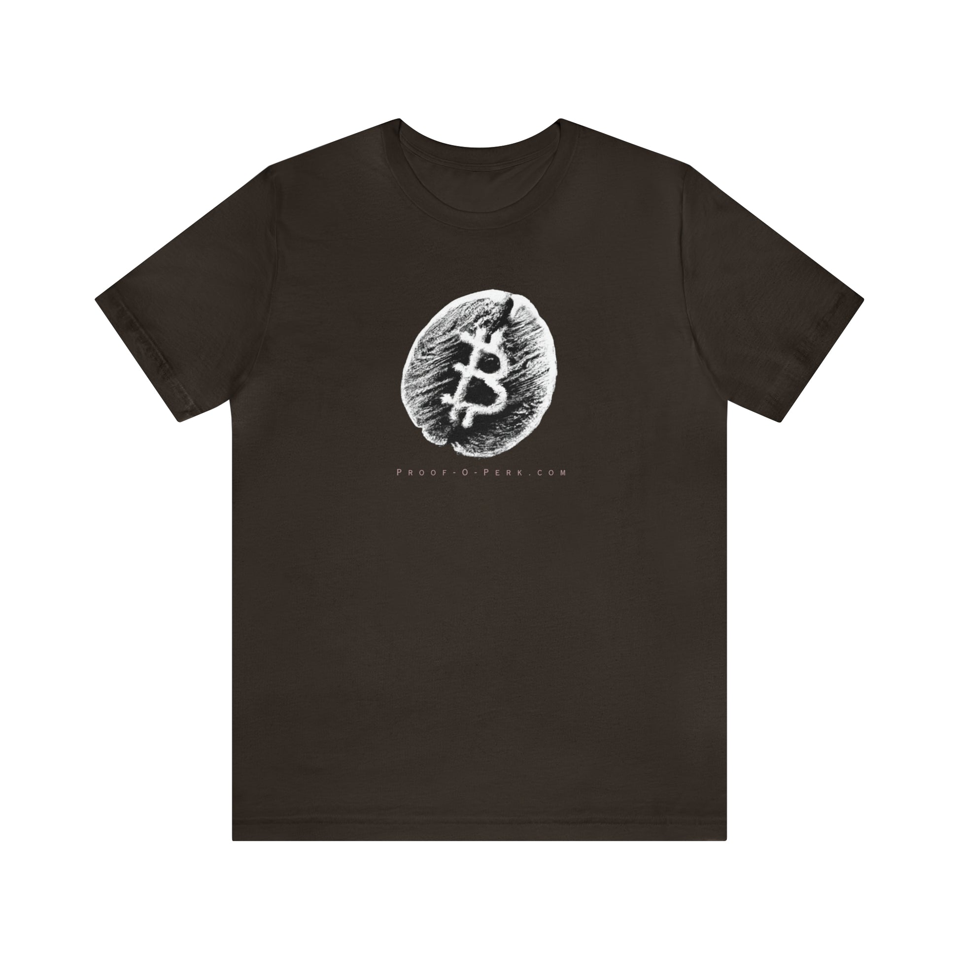Introducing the Proof-O-Perk-inspired t-shirt, a perfect fusion of coffee culture and digital scarcity that lets you wear your love for exceptional brews and the Bitcoin revolution in style.
