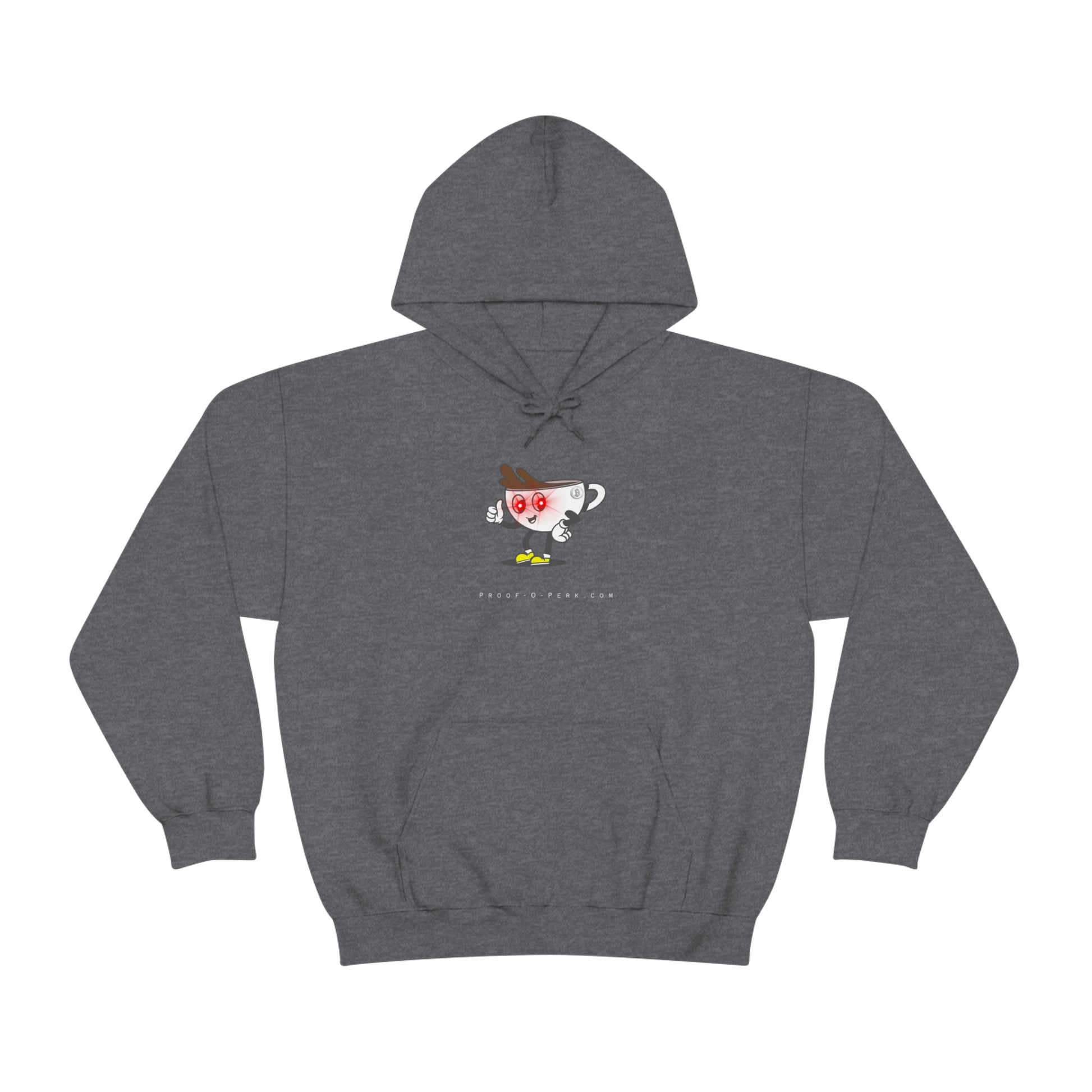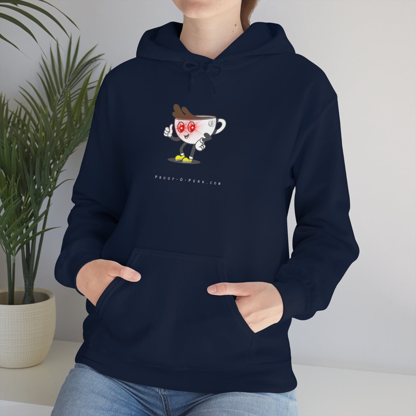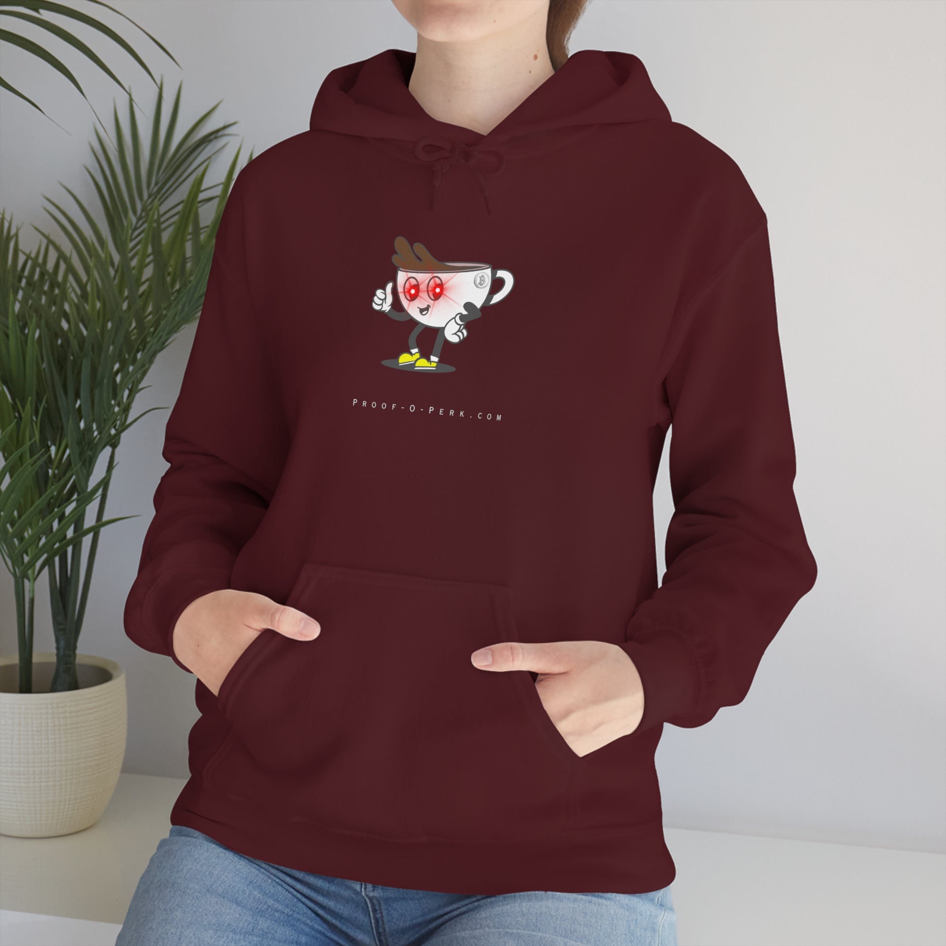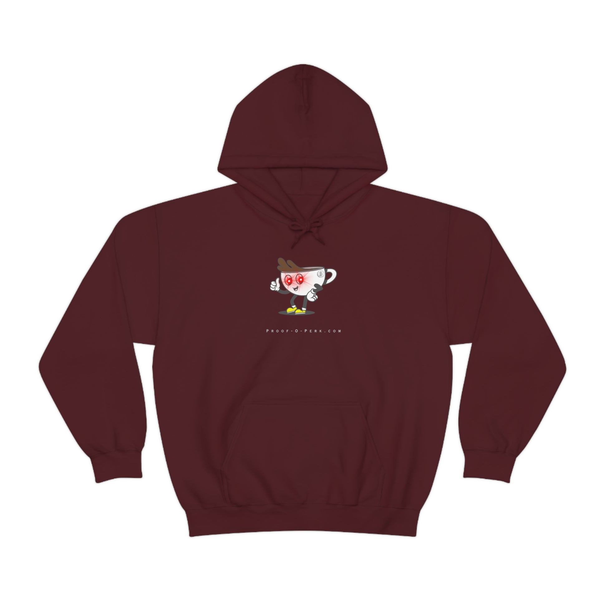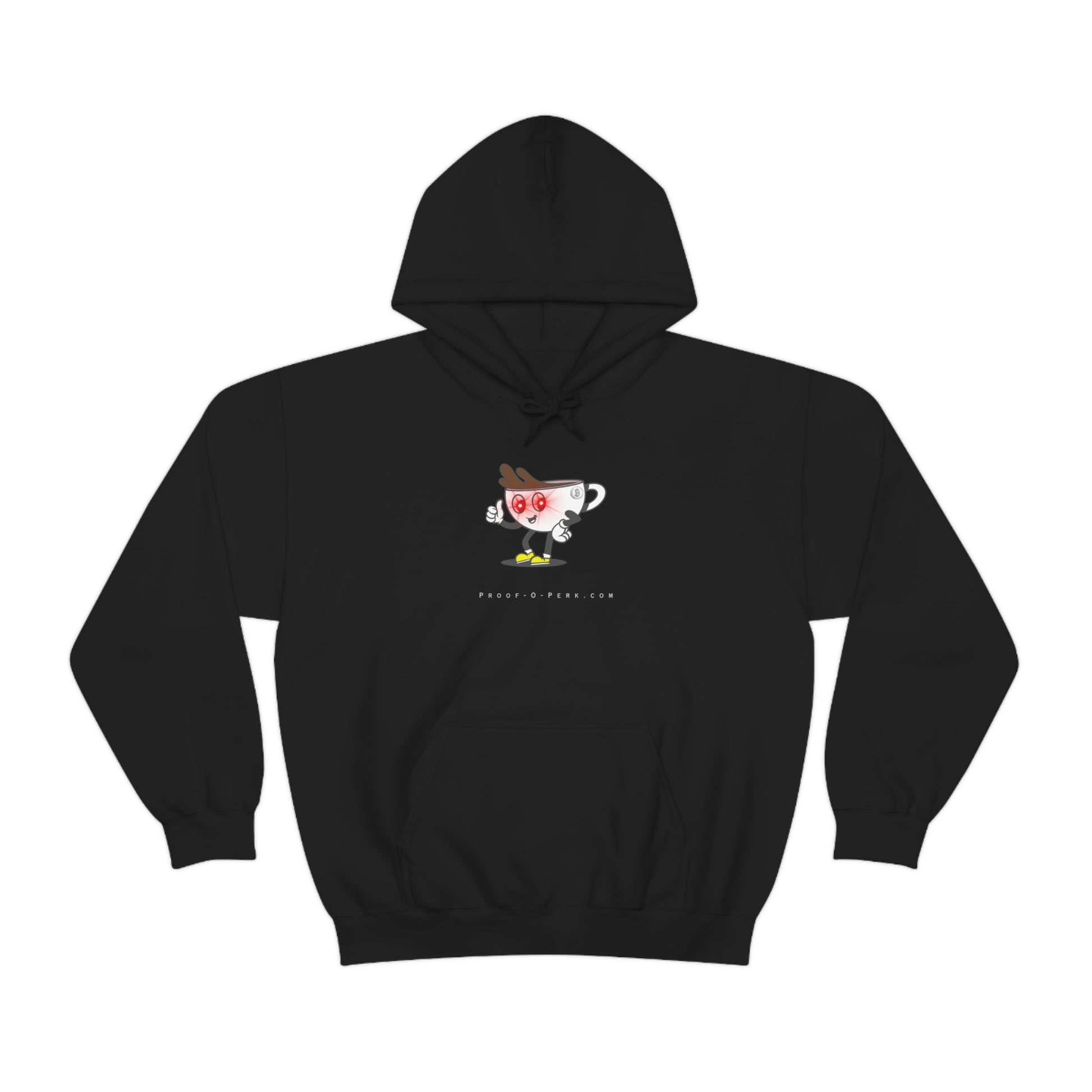 Introducing the Proof-O-Perk-inspired hoodie, a perfect fusion of coffee culture and digital scarcity that lets you wear your love for exceptional brews and the Bitcoin revolution in style. Made with a thick blend of cotton and polyester, it feels plush, soft and warm, a perfect choice for any cold day. In the front, the spacious kangaroo pocket adds daily practicality while the hood's drawstring is the same color as the base sweater for extra style points.