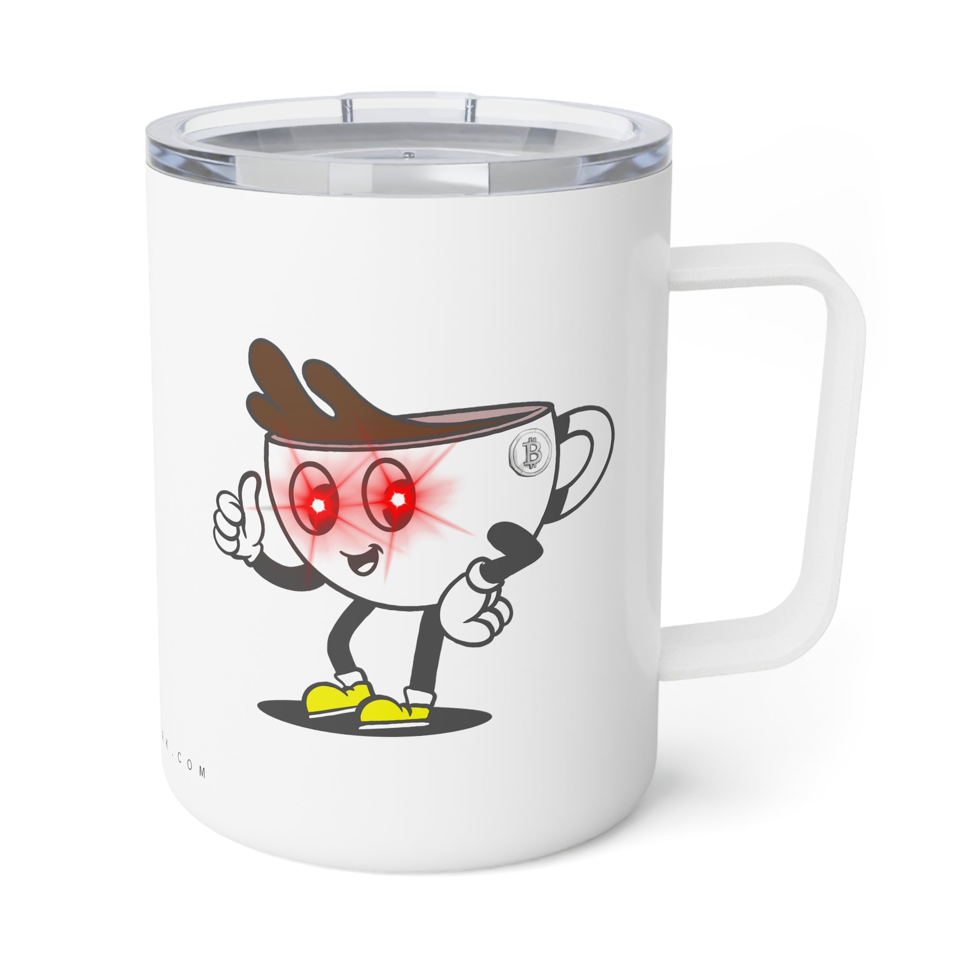 Introducing the Proof-O-Perk-inspired mug, a perfect fusion of coffee culture and digital scarcity that lets you show your love for exceptional brews and the Bitcoin revolution in style. These insulated travel mugs hold 10oz of liquid and come with a robust stainless steel, double wall construction making them a hard-wearing sidekick for the road. The white detailing adds extra style points while the clear acrylic lid adds another layer of practicality to an already functional favorite.
