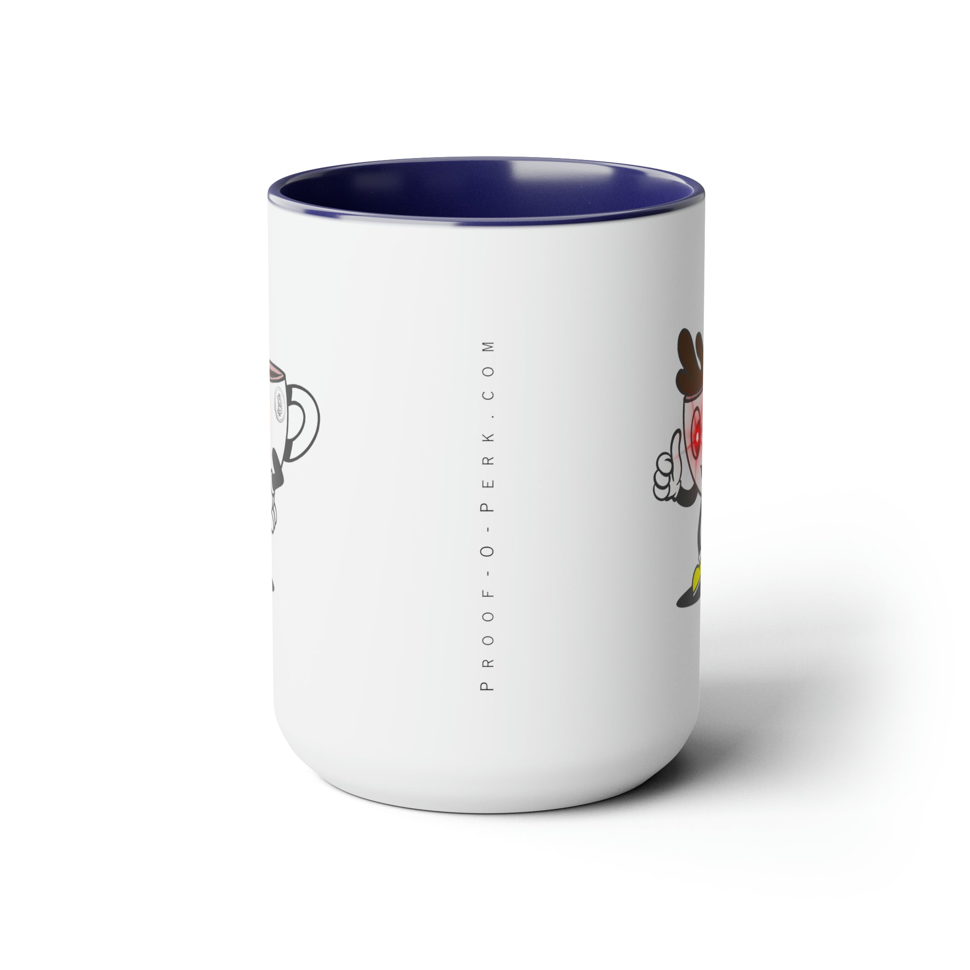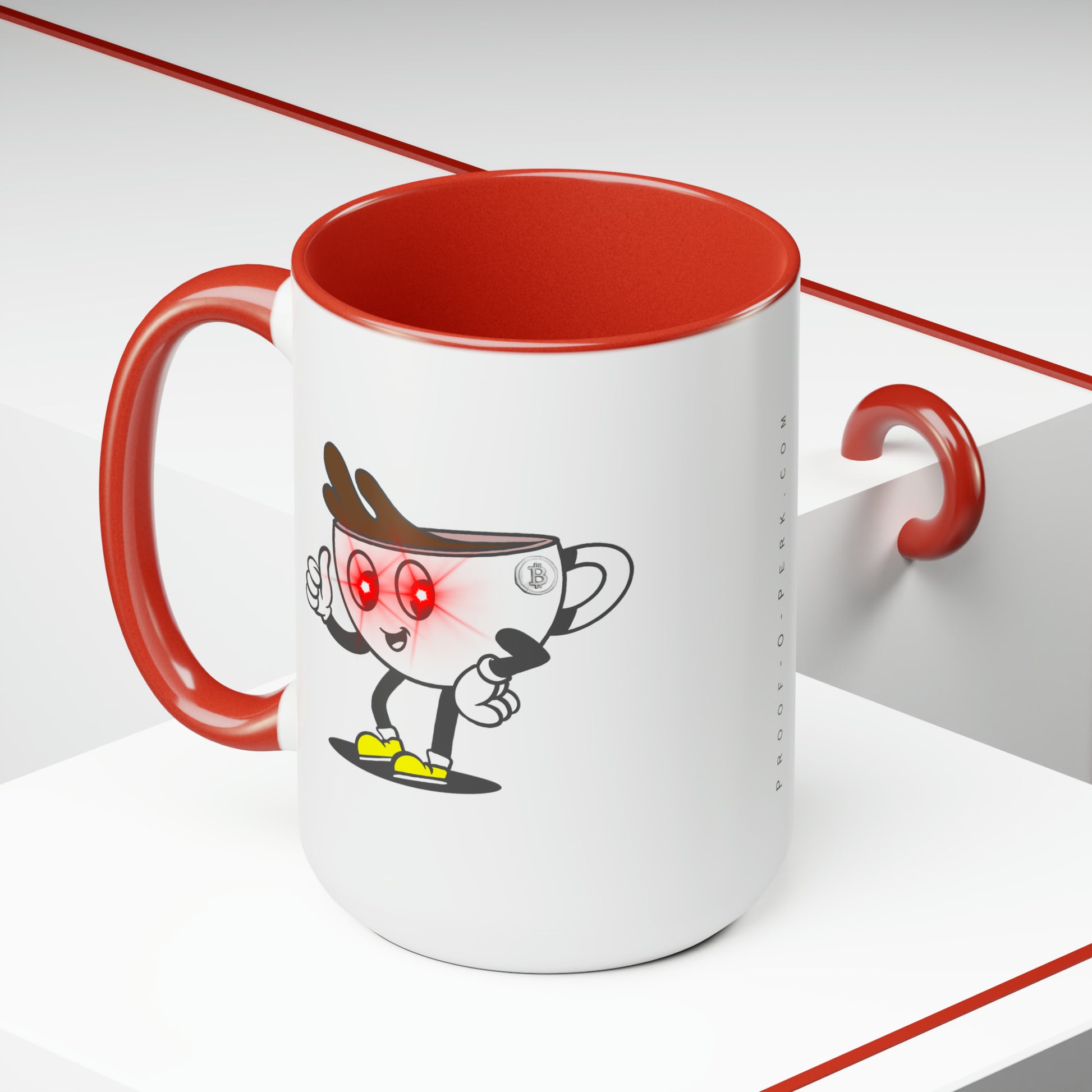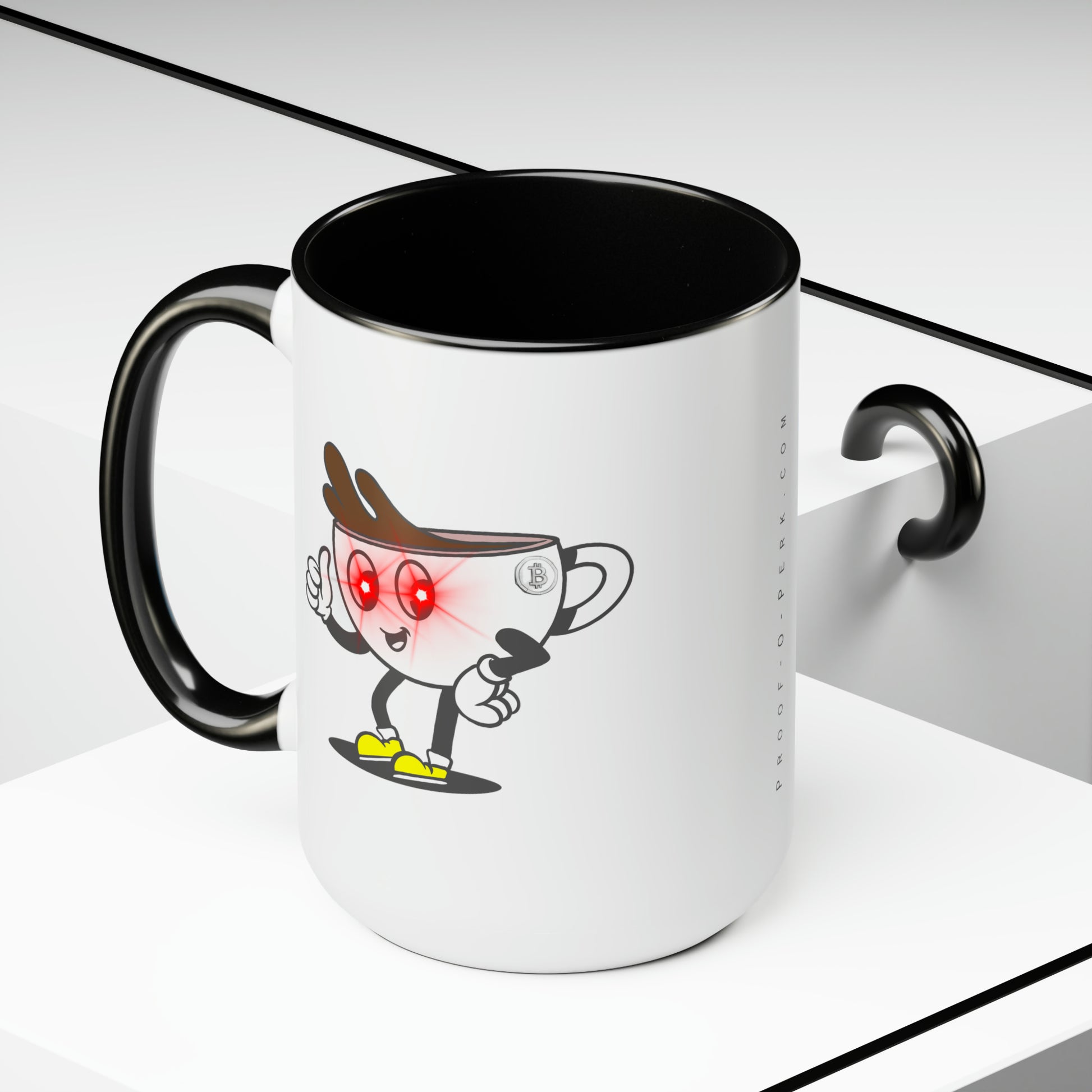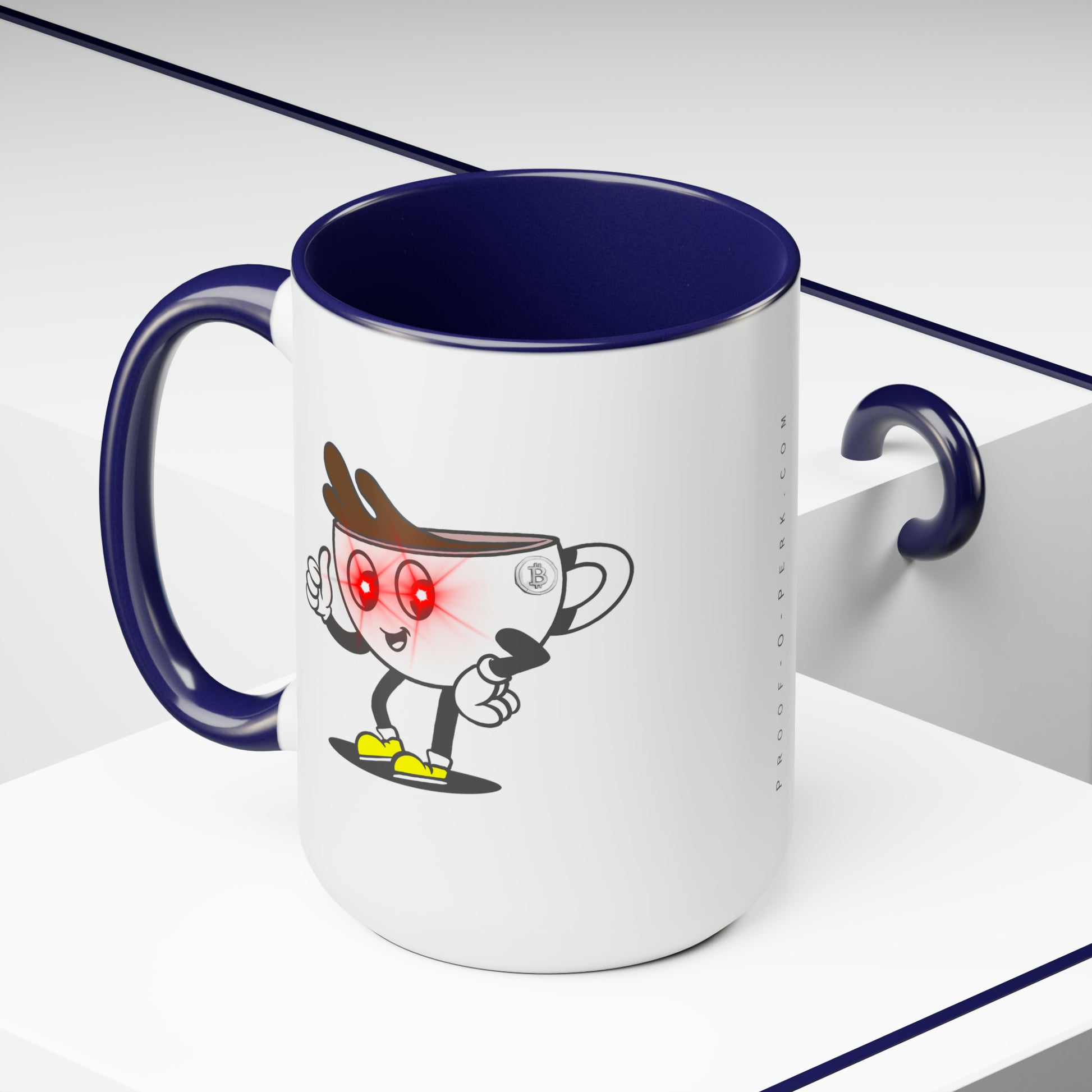 Introducing the Proof-O-Perk-inspired mug, a perfect fusion of coffee culture and digital scarcity that lets you show your love for exceptional brews and the Bitcoin revolution in style. Here to bring big gulps of coffee and style, these two-tone coffee mugs help you start the day just right while helping you to express your support for the growth of a delicious Bitcoin-inspired coffee brand. Choose between different color options to best complement your designs. Each mug comes with a colored handle, a colored interior, and a classy, glossy finish so that your mugs become an instant favorite.