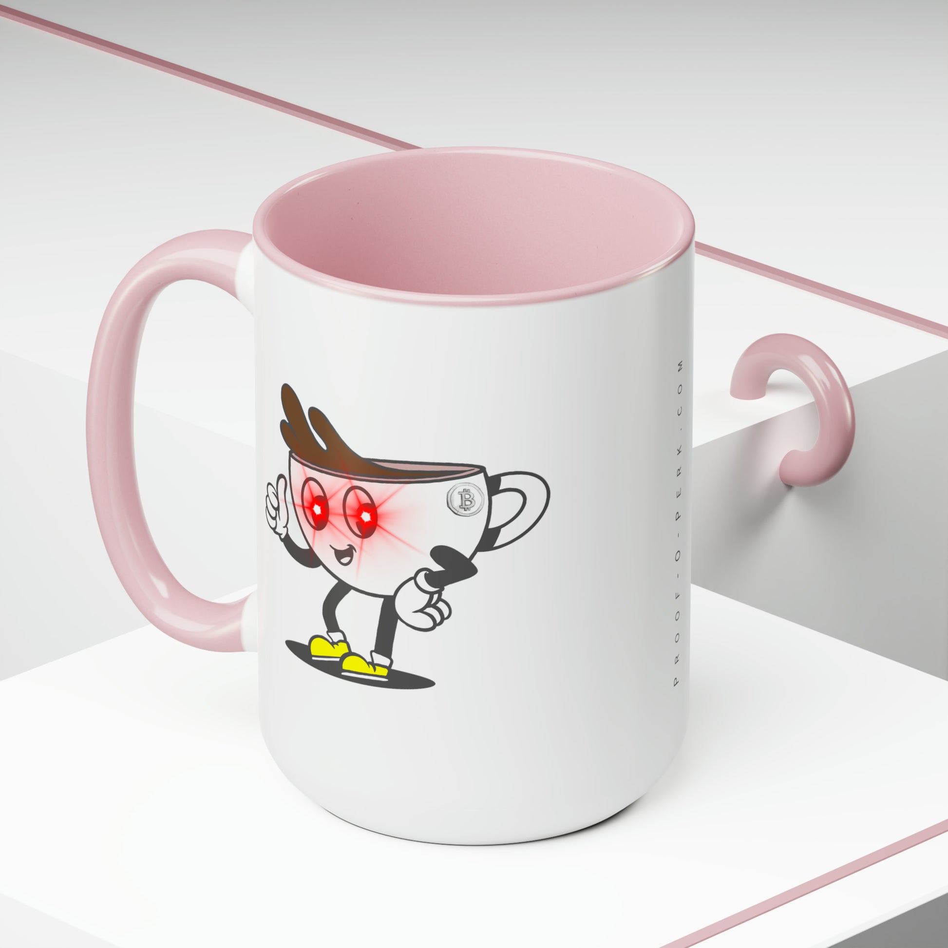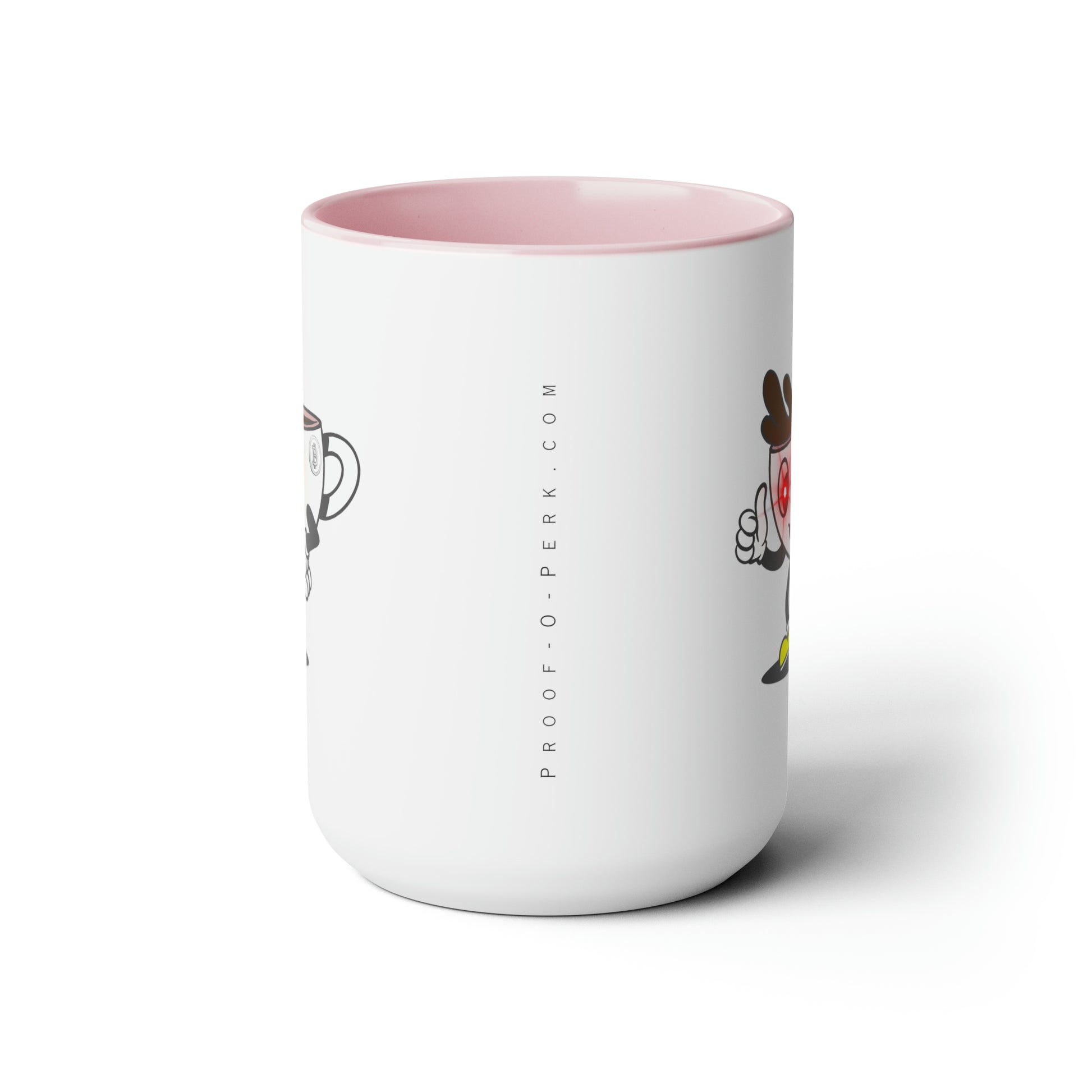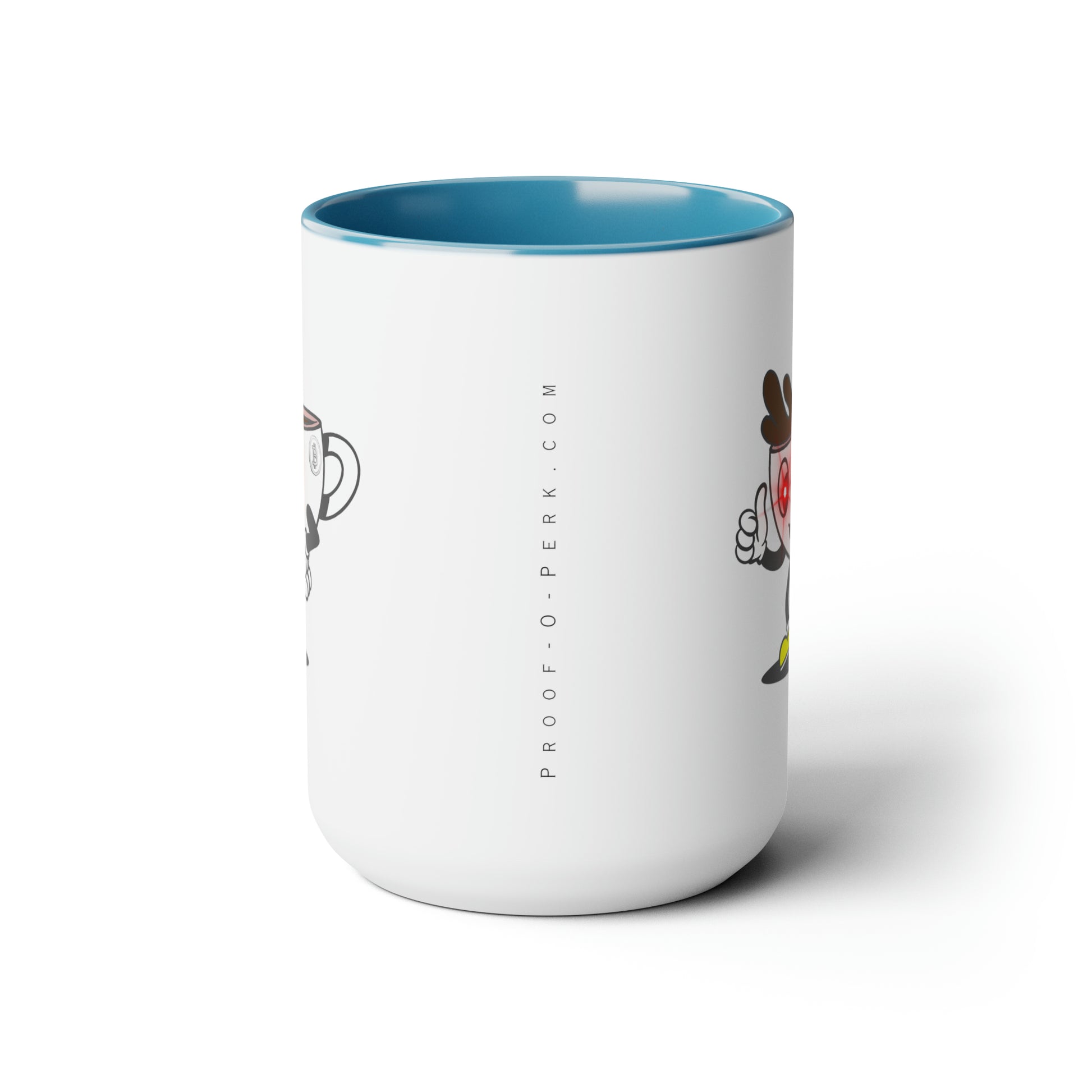 Introducing the Proof-O-Perk-inspired mug, a perfect fusion of coffee culture and digital scarcity that lets you show your love for exceptional brews and the Bitcoin revolution in style. Here to bring big gulps of coffee and style, these two-tone coffee mugs help you start the day just right while helping you to express your support for the growth of a delicious Bitcoin-inspired coffee brand. Choose between different color options to best complement your designs. Each mug comes with a colored handle, a colored interior, and a classy, glossy finish so that your mugs become an instant favorite.
