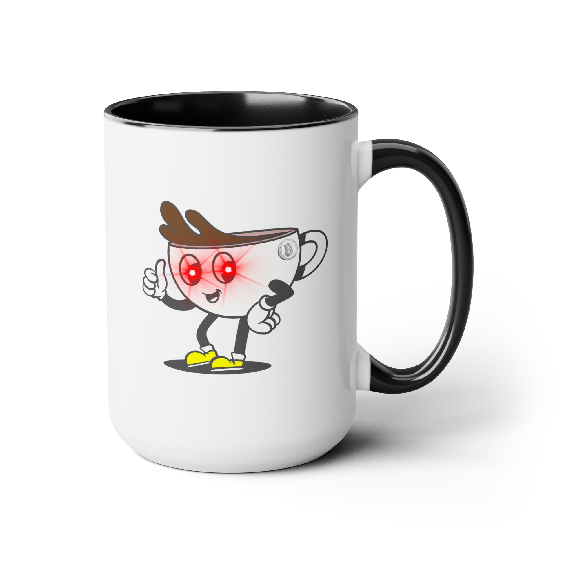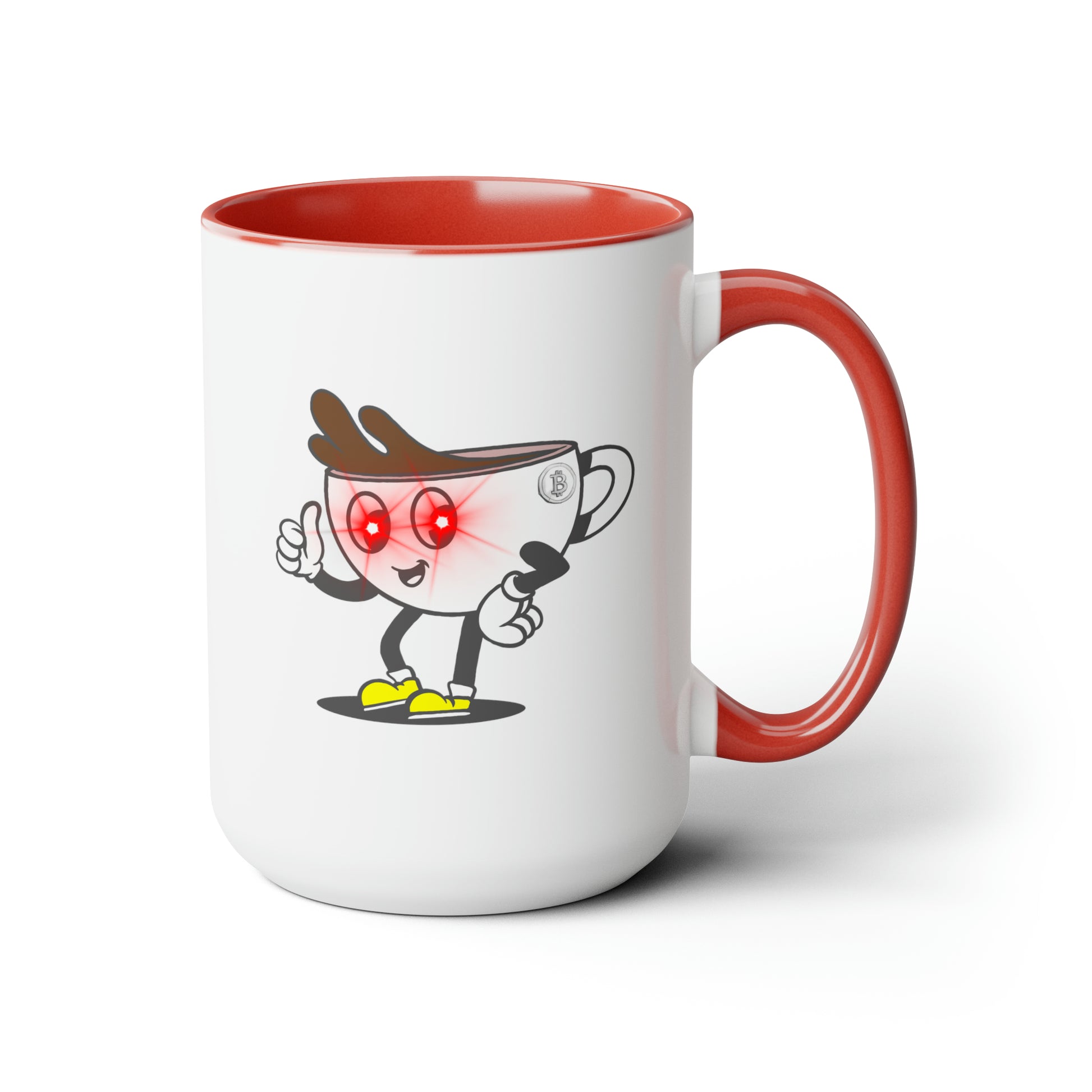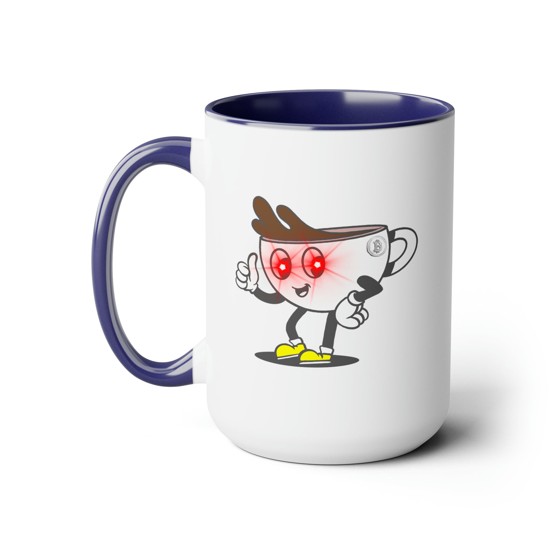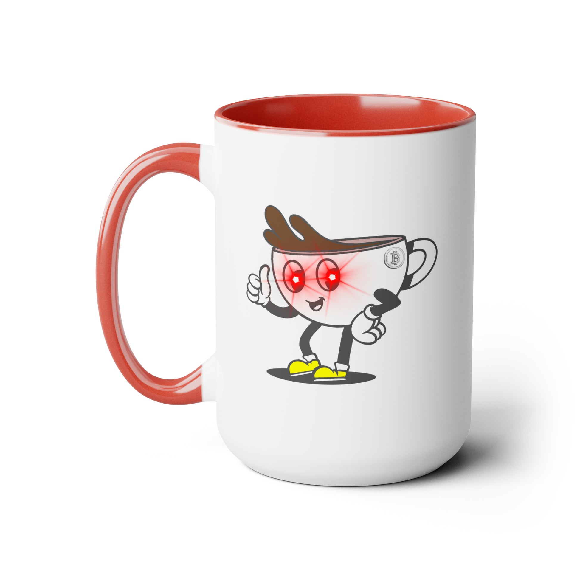 Introducing the Proof-O-Perk-inspired mug, a perfect fusion of coffee culture and digital scarcity that lets you show your love for exceptional brews and the Bitcoin revolution in style. Here to bring big gulps of coffee and style, these two-tone coffee mugs help you start the day just right while helping you to express your support for the growth of a delicious Bitcoin-inspired coffee brand. Choose between different color options to best complement your designs. Each mug comes with a colored handle, a colored interior, and a classy, glossy finish so that your mugs become an instant favorite.