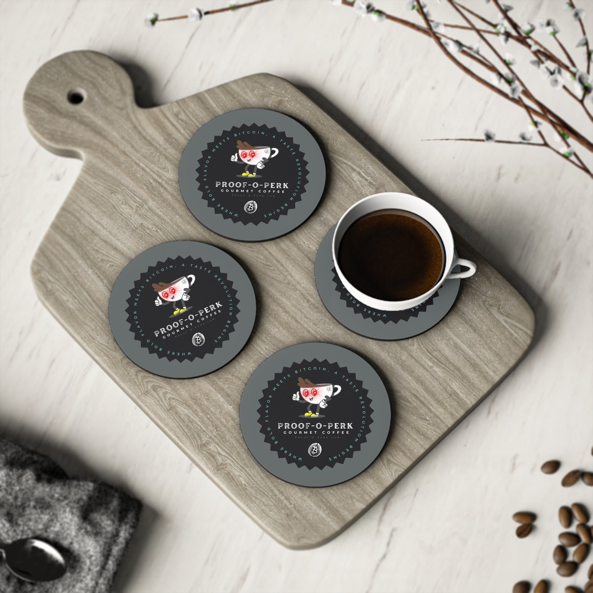 Who wouldn't want a set of Proof-O-Perk coasters to use and have on display beneath you favorite beverages?! A perfect fusion of coffee culture and digital scarcity that lets you show your love for exceptional brews and the Bitcoin revolution in style.