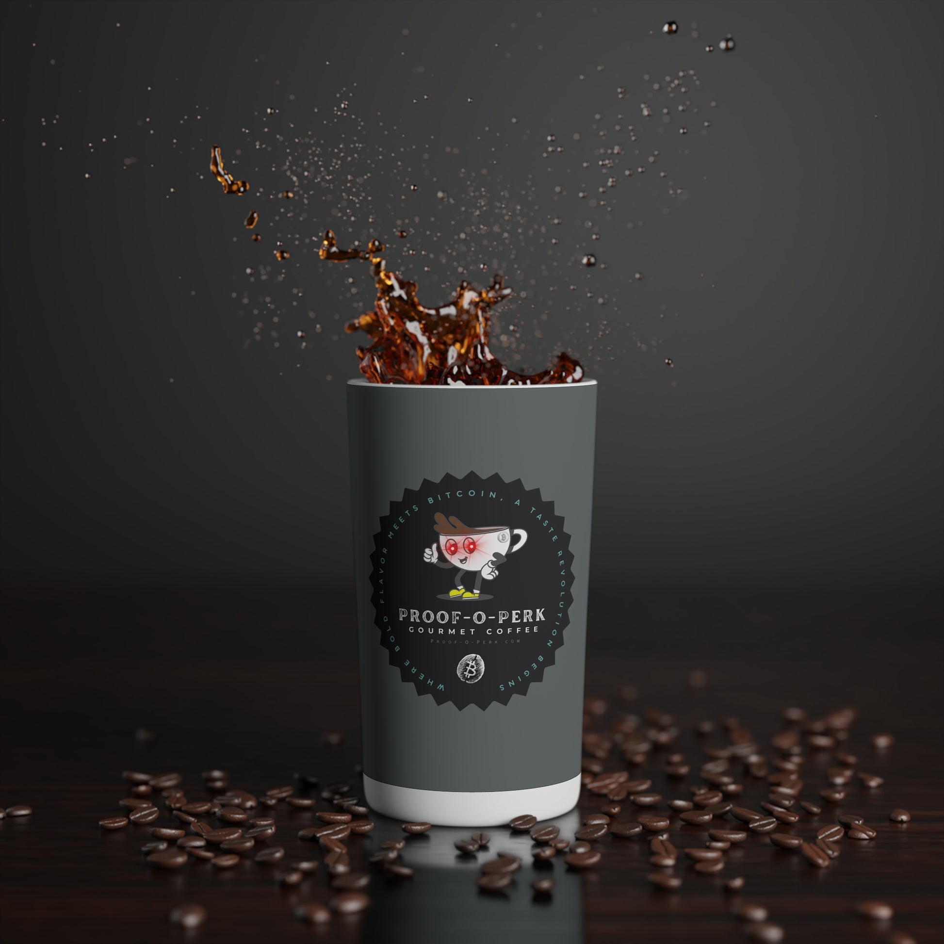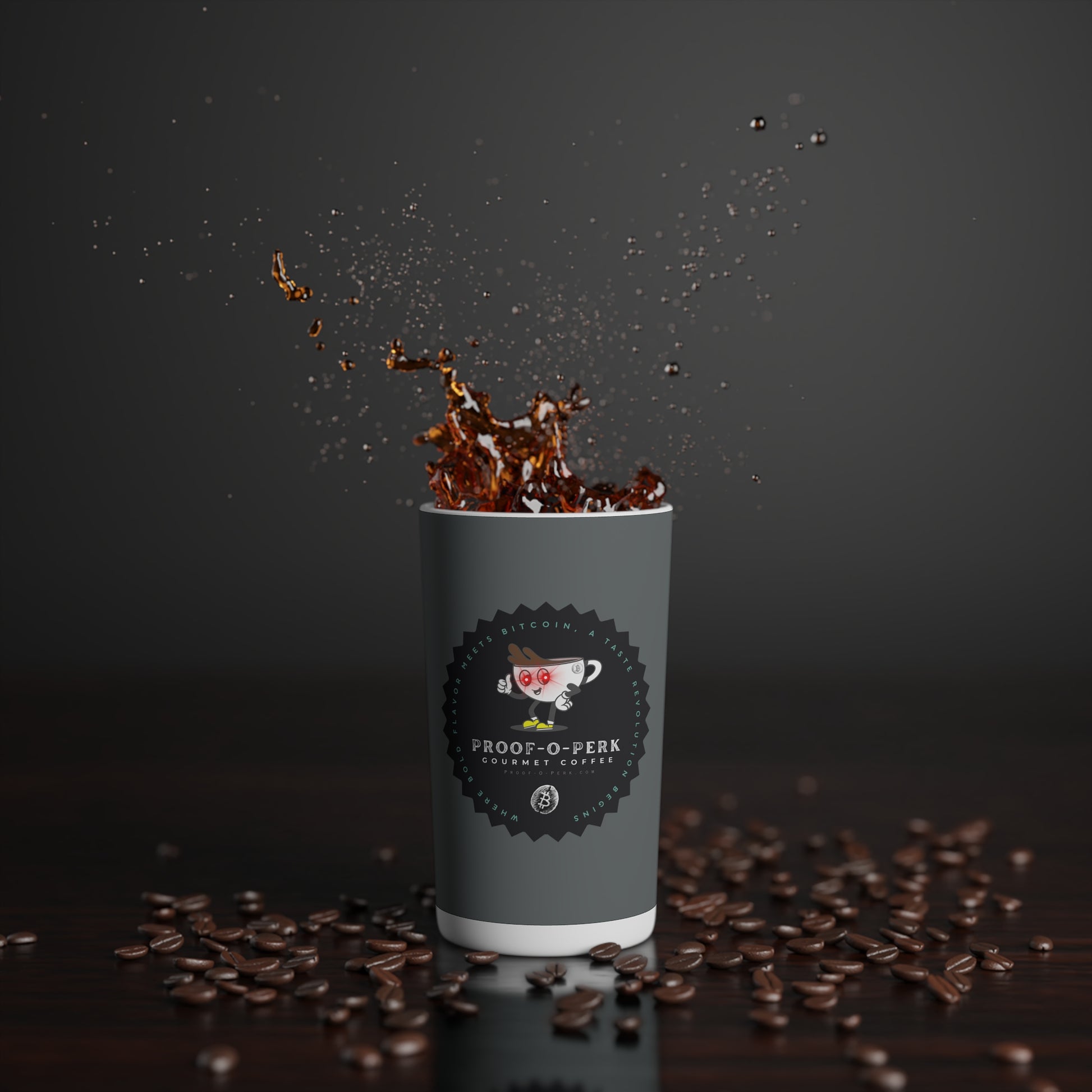 Introducing the Proof-O-Perk-inspired conical mug, a perfect fusion of coffee culture and digital scarcity that lets you show your love for exceptional brews and the Bitcoin revolution in style. For starting any day on the brightest note, this Proof-O-Perk coffee mug is the ideal way to sip this morning's pick-me-up. Made with durable white ceramic material, each cup features the signature conical shape that you'll find in professional cafes. Available in 8oz, 12oz and in espresso size of 3oz.