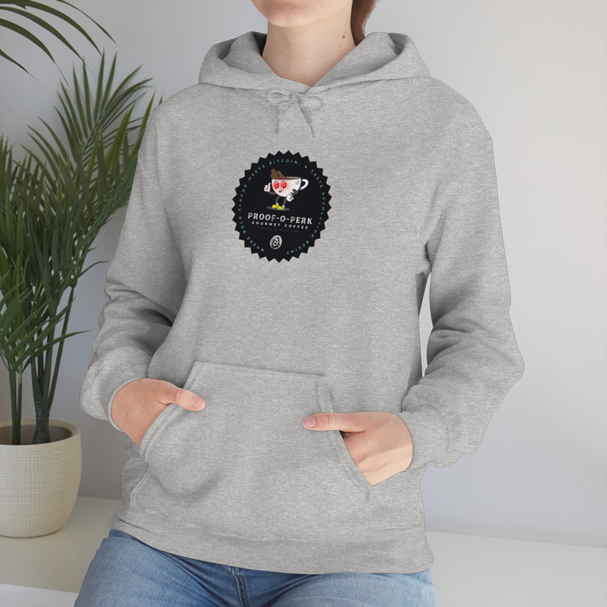 Introducing the Proof-O-Perk-inspired hoodie, a perfect fusion of coffee culture and digital scarcity that lets you wear your love for exceptional brews and the Bitcoin revolution in style. Made with a thick blend of cotton and polyester, it feels plush, soft and warm, a perfect choice for any cold day. In the front, the spacious kangaroo pocket adds daily practicality while the hood's drawstring is the same color as the base sweater for extra style points.