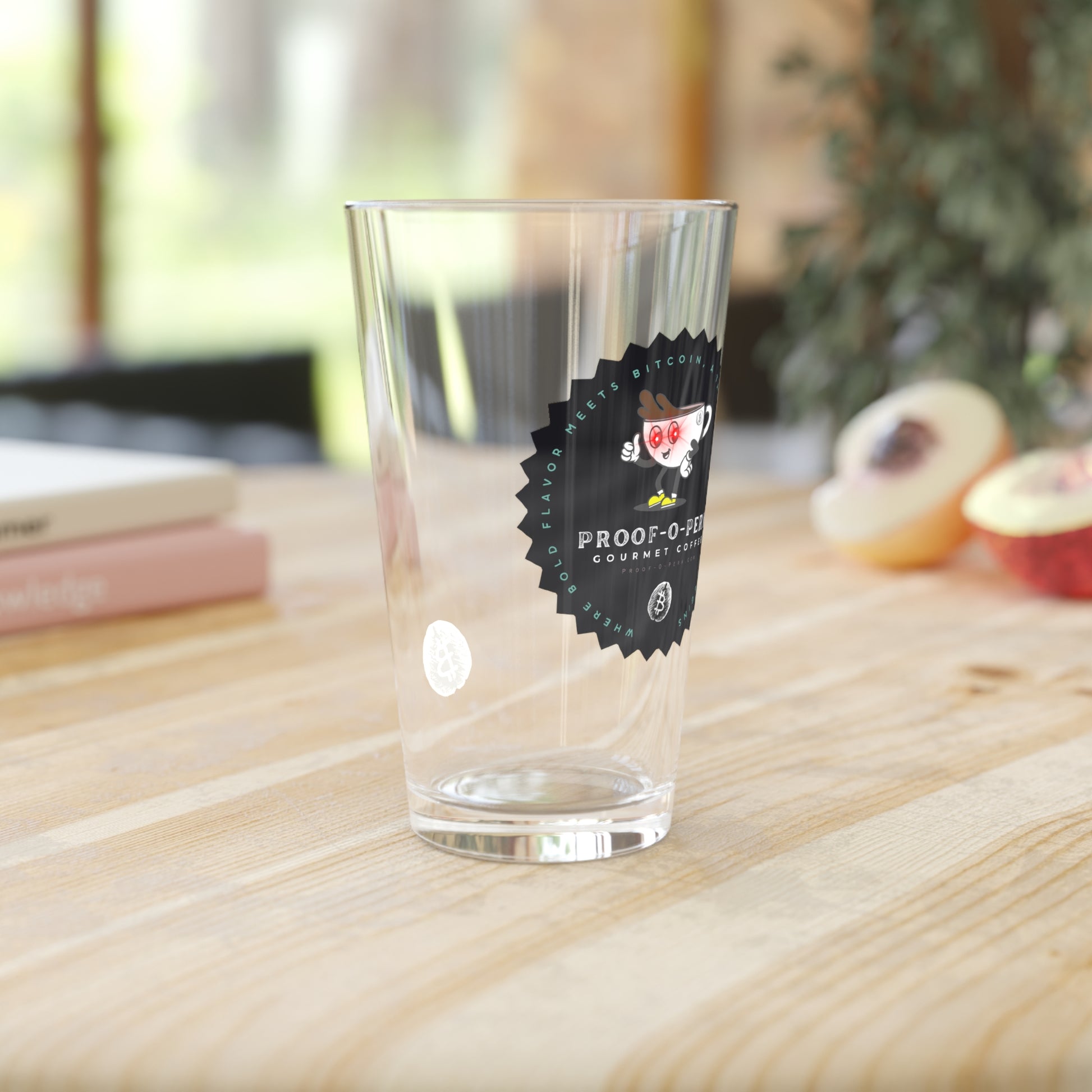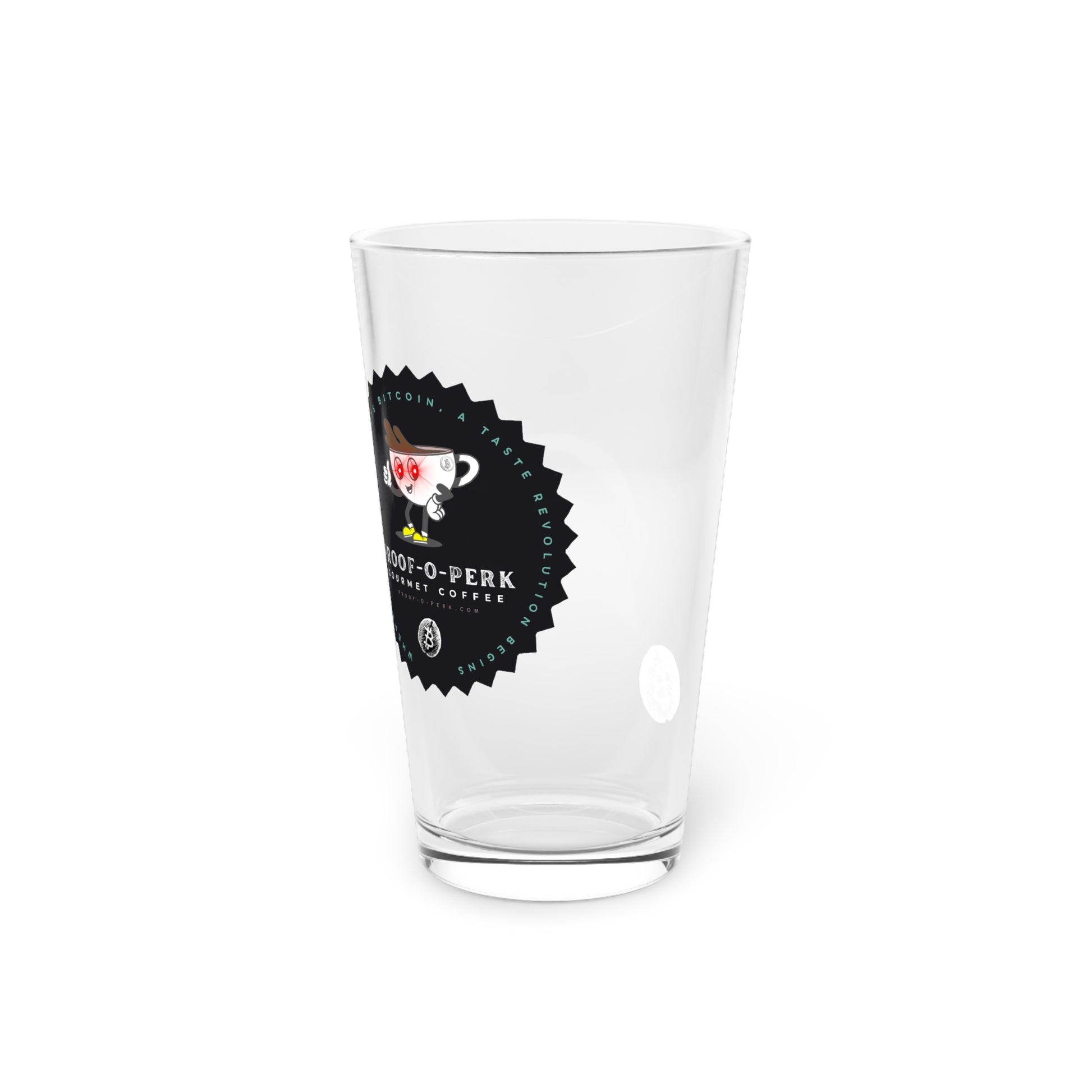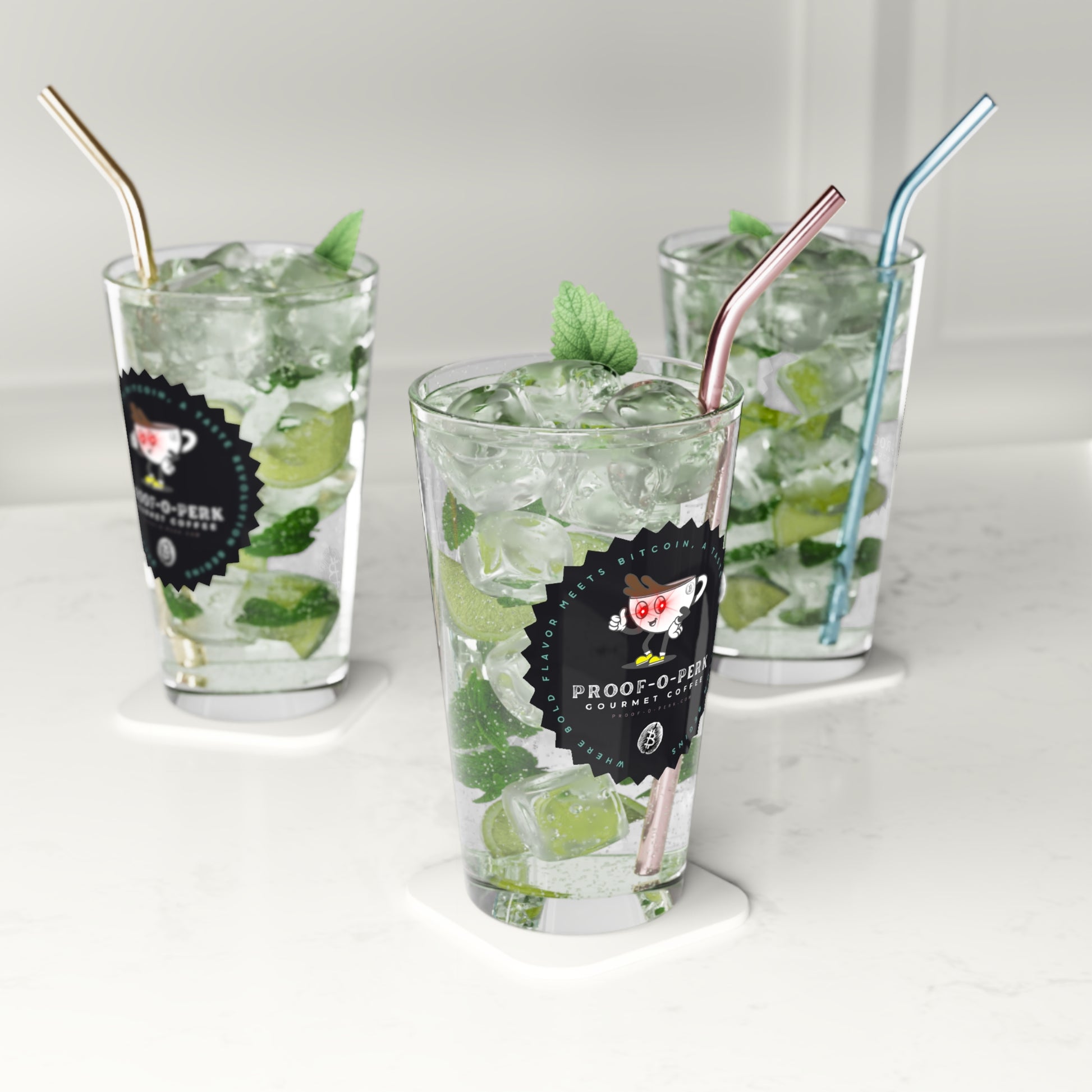 Introducing the Proof-O-Perk-inspired pint glass, a perfect fusion of coffee culture and digital scarcity that lets you show your love for exceptional brews and the Bitcoin revolution in style while you enjoy an iced coffee, frothy beverage, or drink of your choice!. These Proof-O-Perk pint glasses glasses are highly versatile, can make for a great housewarming gift, and are bound to be used in any household. In fact, buy them all and be the first in your neighborhood to own the whole set!