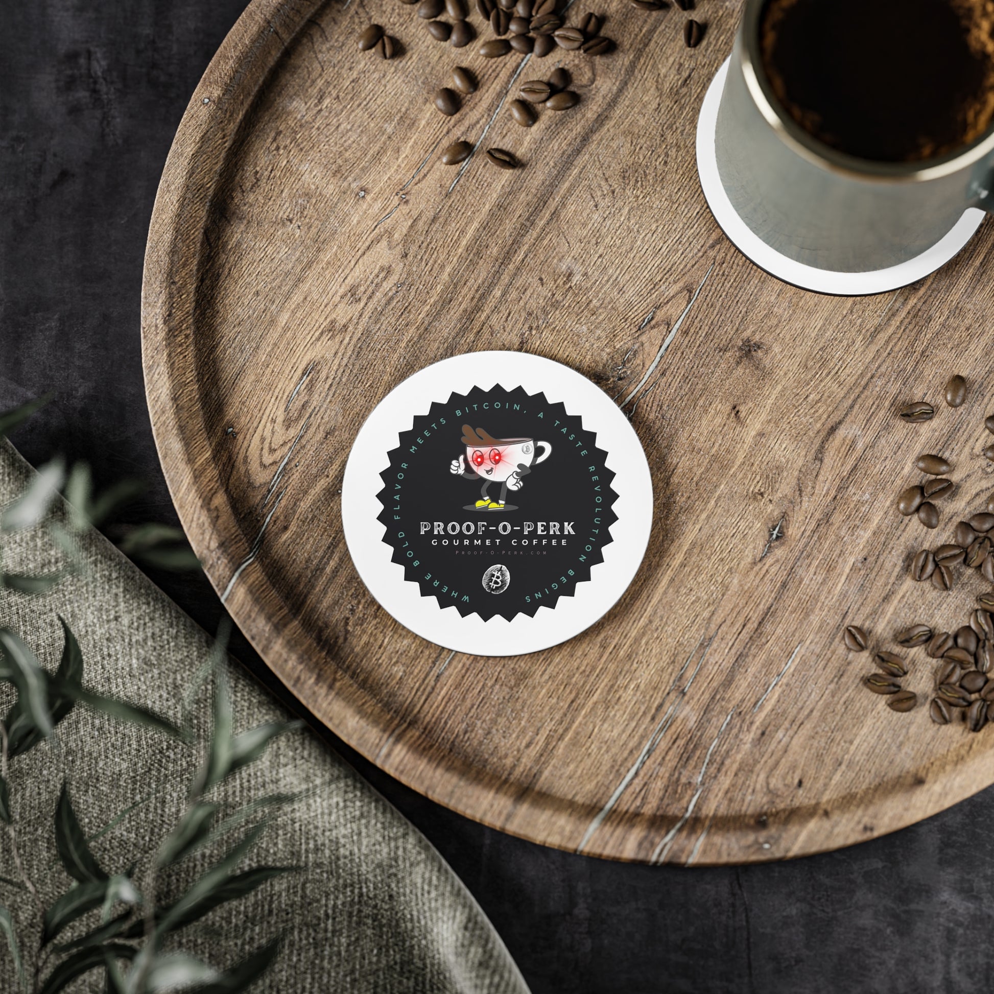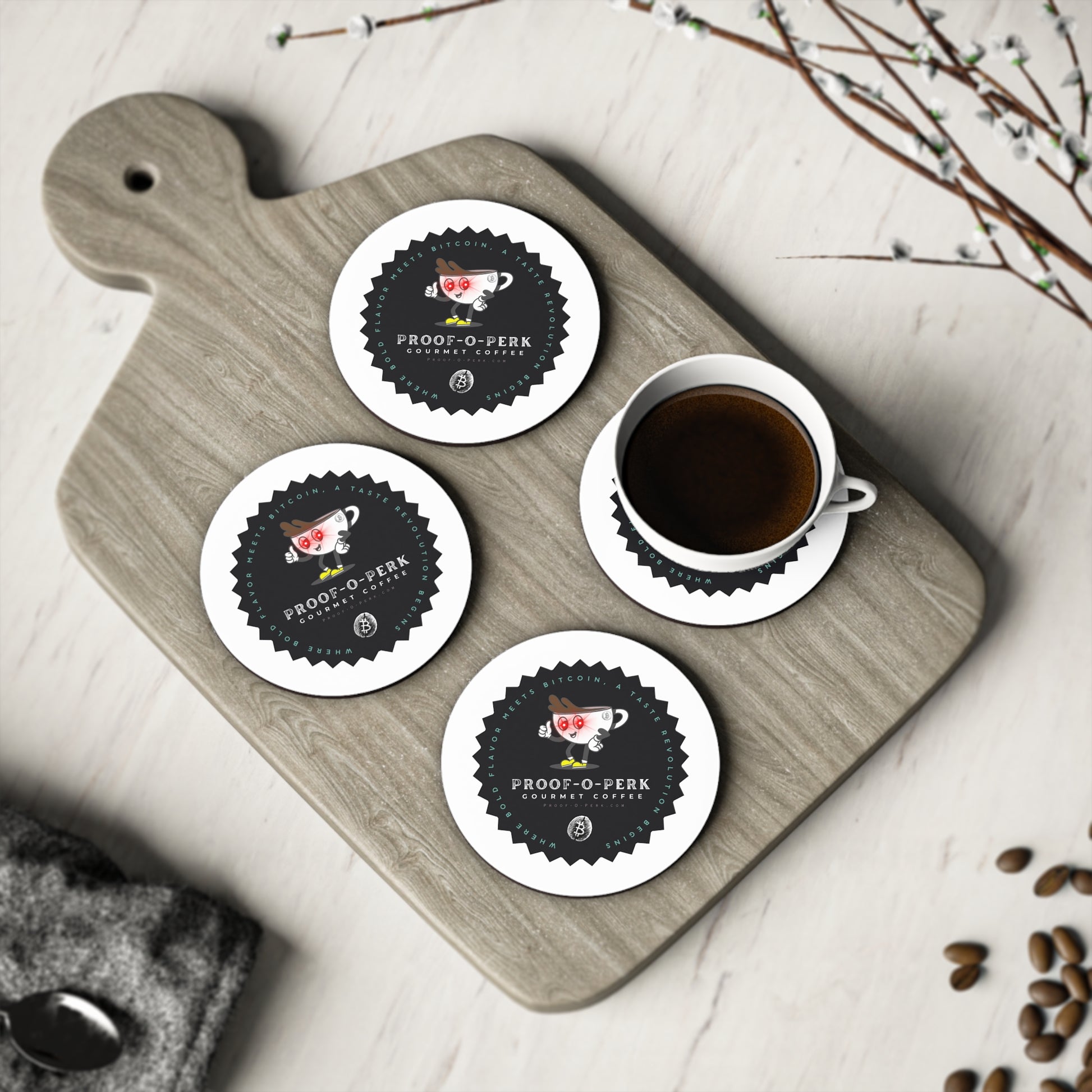 Who wouldn't want a set of Proof-O-Perk coasters to use and have on display beneath you favorite beverages?! A perfect fusion of coffee culture and digital scarcity that lets you show your love for exceptional brews and the Bitcoin revolution in style.