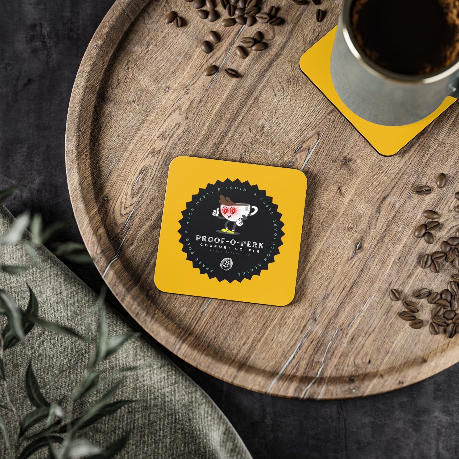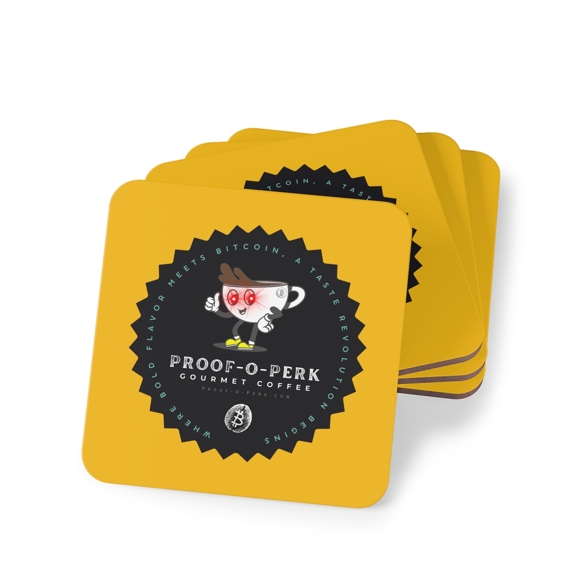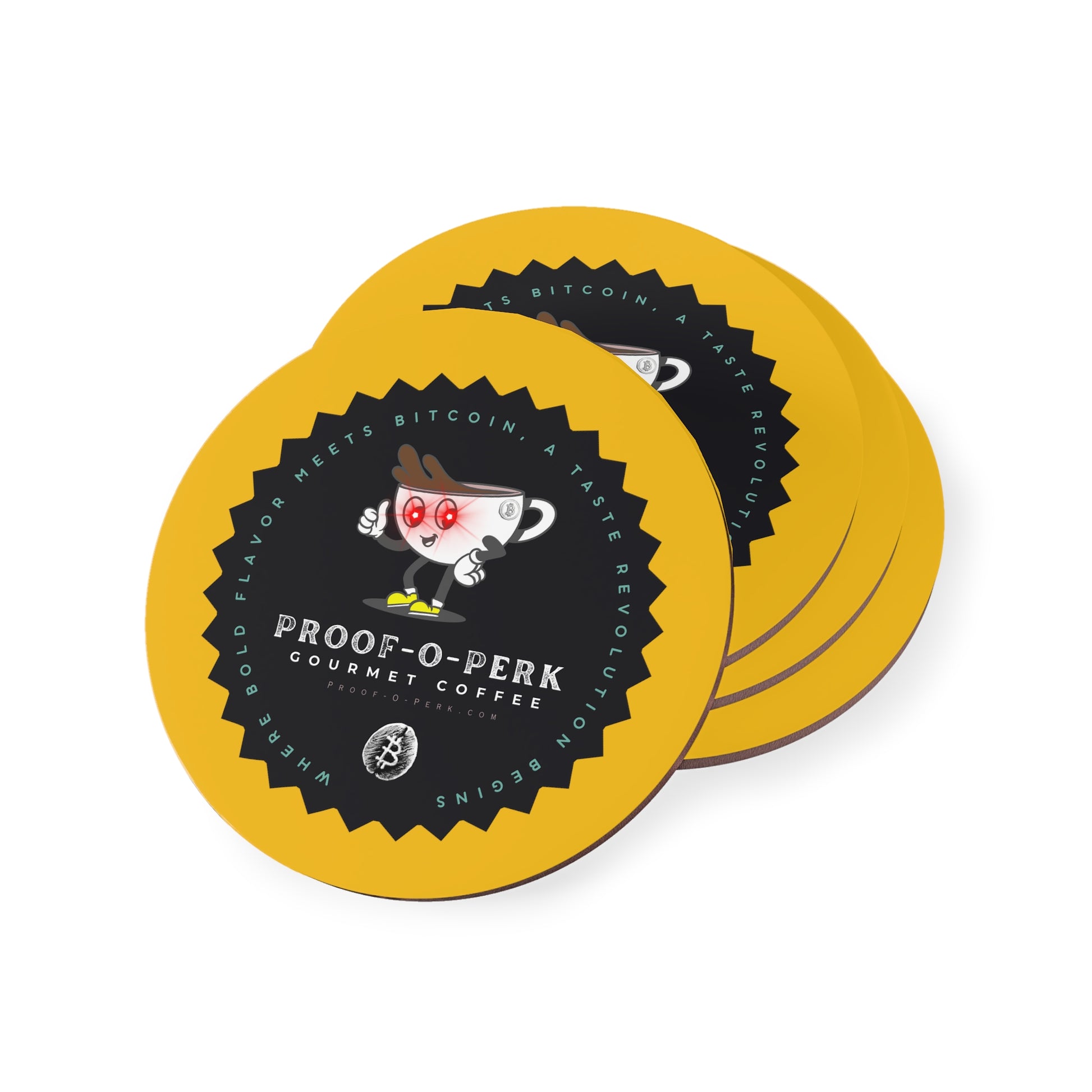 Who wouldn't want a set of Proof-O-Perk coasters to use and have on display beneath you favorite beverages?! A perfect fusion of coffee culture and digital scarcity that lets you show your love for exceptional brews and the Bitcoin revolution in style.