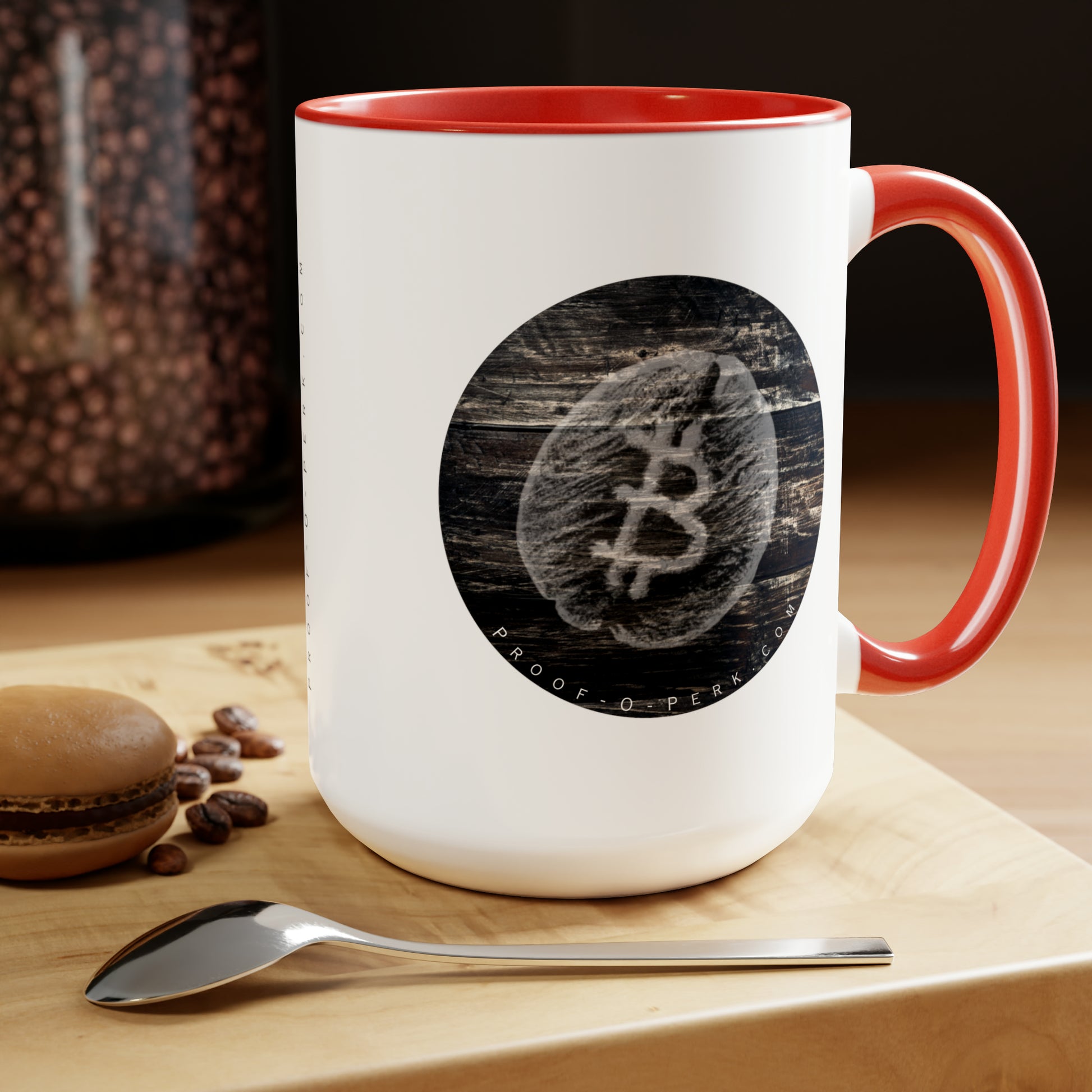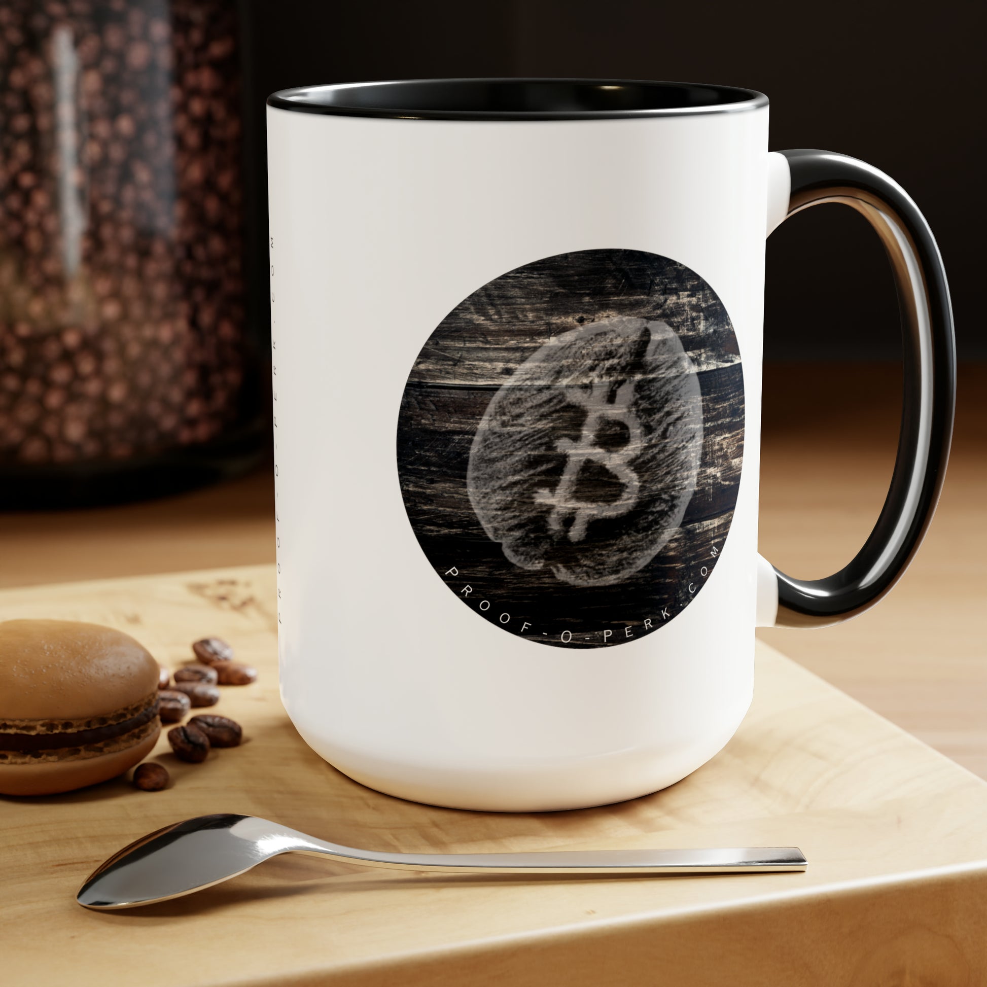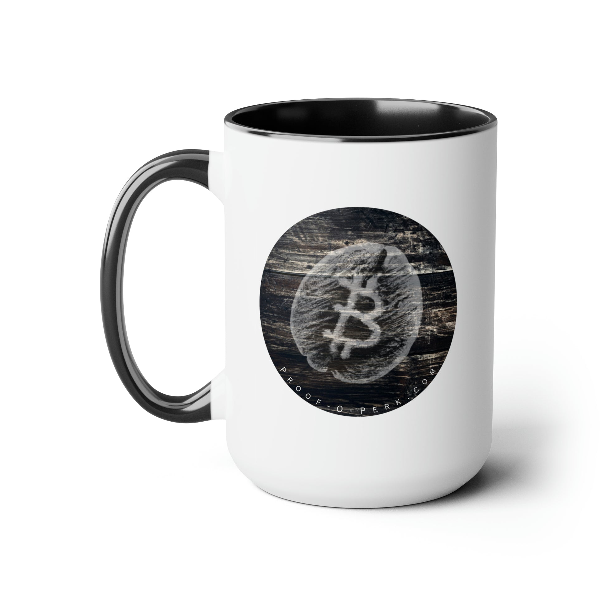 Introducing the Proof-O-Perk-inspired mug, a perfect fusion of coffee culture and digital scarcity that lets you show your love for exceptional brews and the Bitcoin revolution in style. Here to bring big gulps of coffee and style, these two-tone coffee mugs help you start the day just right while helping you to express your support for the growth of a delicious Bitcoin-inspired coffee brand. Choose between different color options to best complement your designs. Each mug comes with a colored handle, a colored interior, and a classy, glossy finish so that your mugs become an instant favorite.