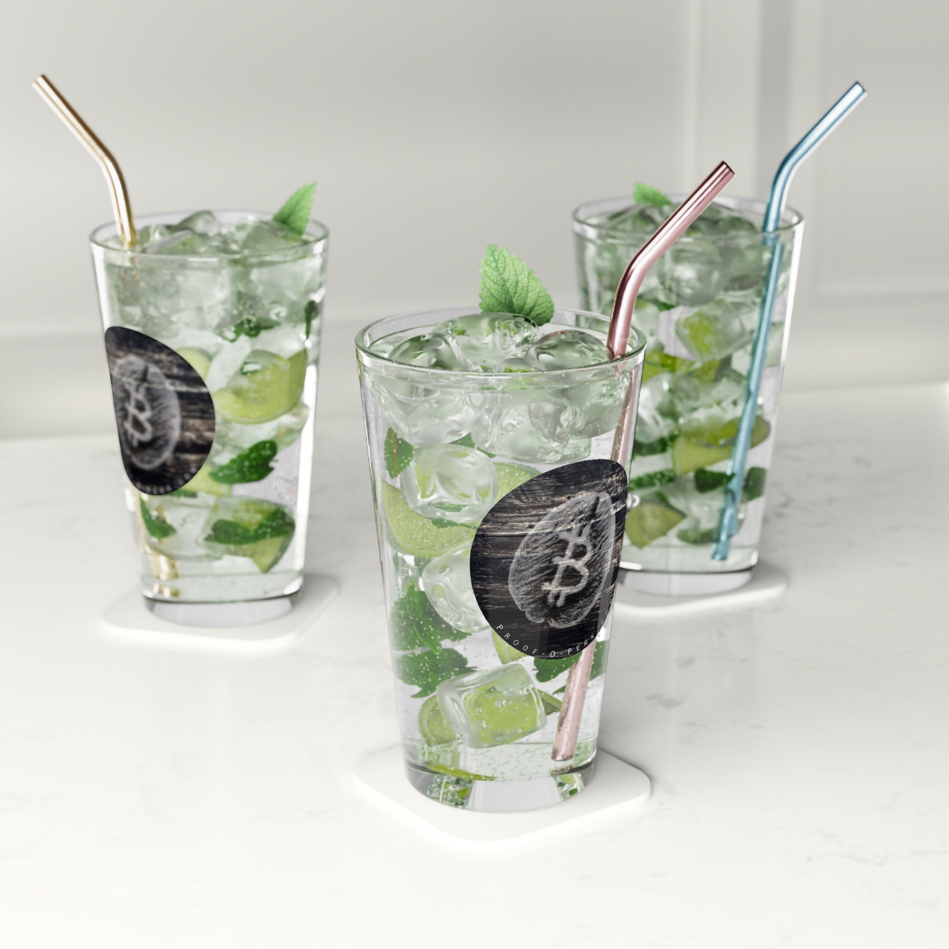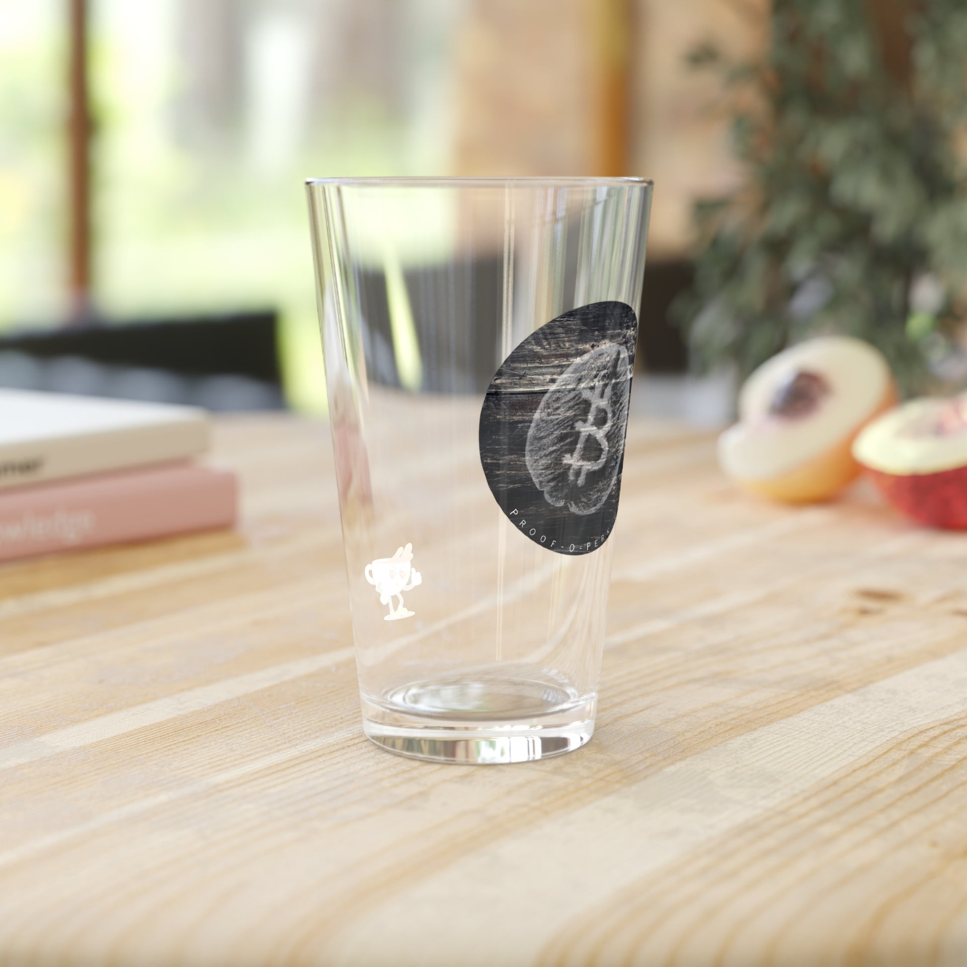 Introducing the Proof-O-Perk-inspired pint glass, a perfect fusion of coffee culture and digital scarcity that lets you show your love for exceptional brews and the Bitcoin revolution in style while you enjoy an iced coffee, frothy beverage, or drink of your choice!. These Proof-O-Perk pint glasses glasses are highly versatile, can make for a great housewarming gift, and are bound to be used in any household. In fact, buy them all and be the first in your neighborhood to own the whole set!