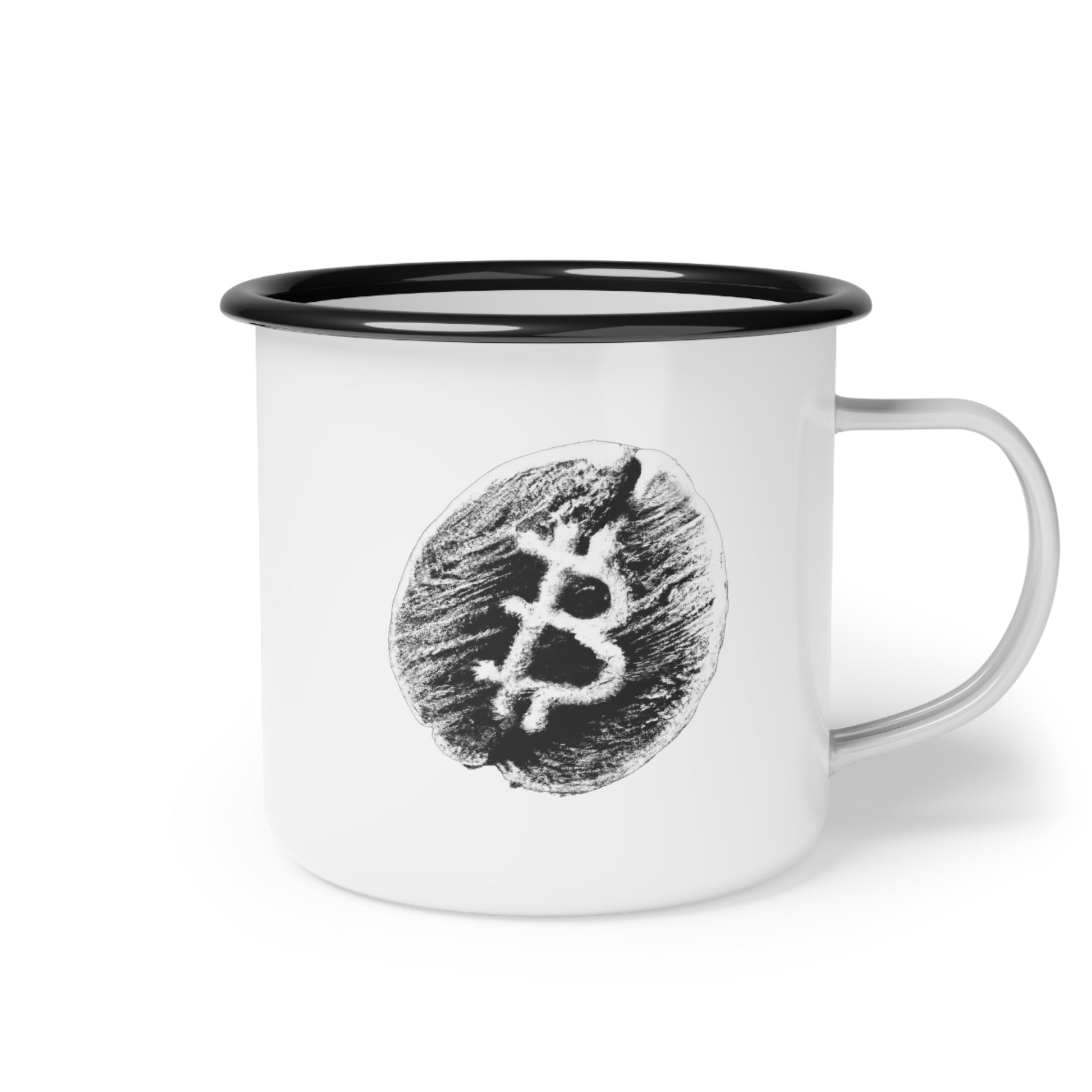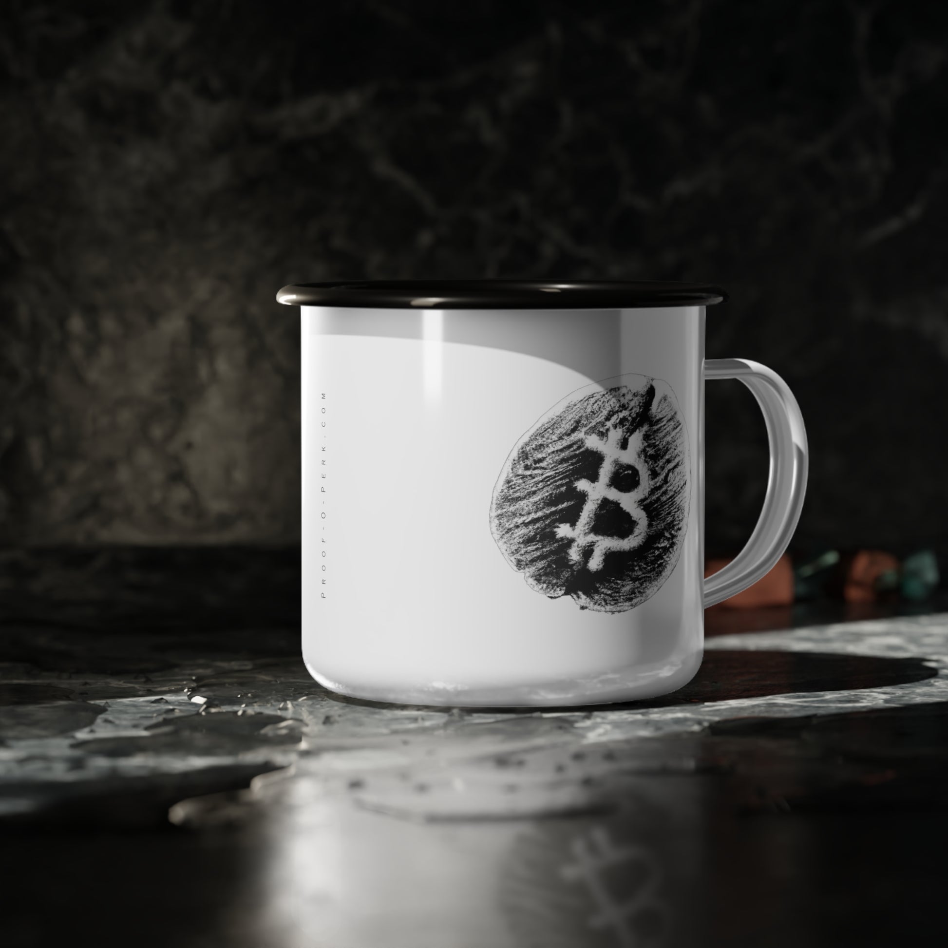 Introducing the Proof-O-Perk-inspired mug, a perfect fusion of coffee culture and digital scarcity that lets you show your love for exceptional brews and the Bitcoin revolution in style. Born to be in the Great Outdoors, this custom enamel mug is a camper's best sidekick. With 12oz. for your favorite beverage, these camping mugs are anti-alkali and acid-proof, making them a hard-wearing choice for any adventure. Plus, when at home, they can be tossed in the dishwasher for hassle-free cleaning.