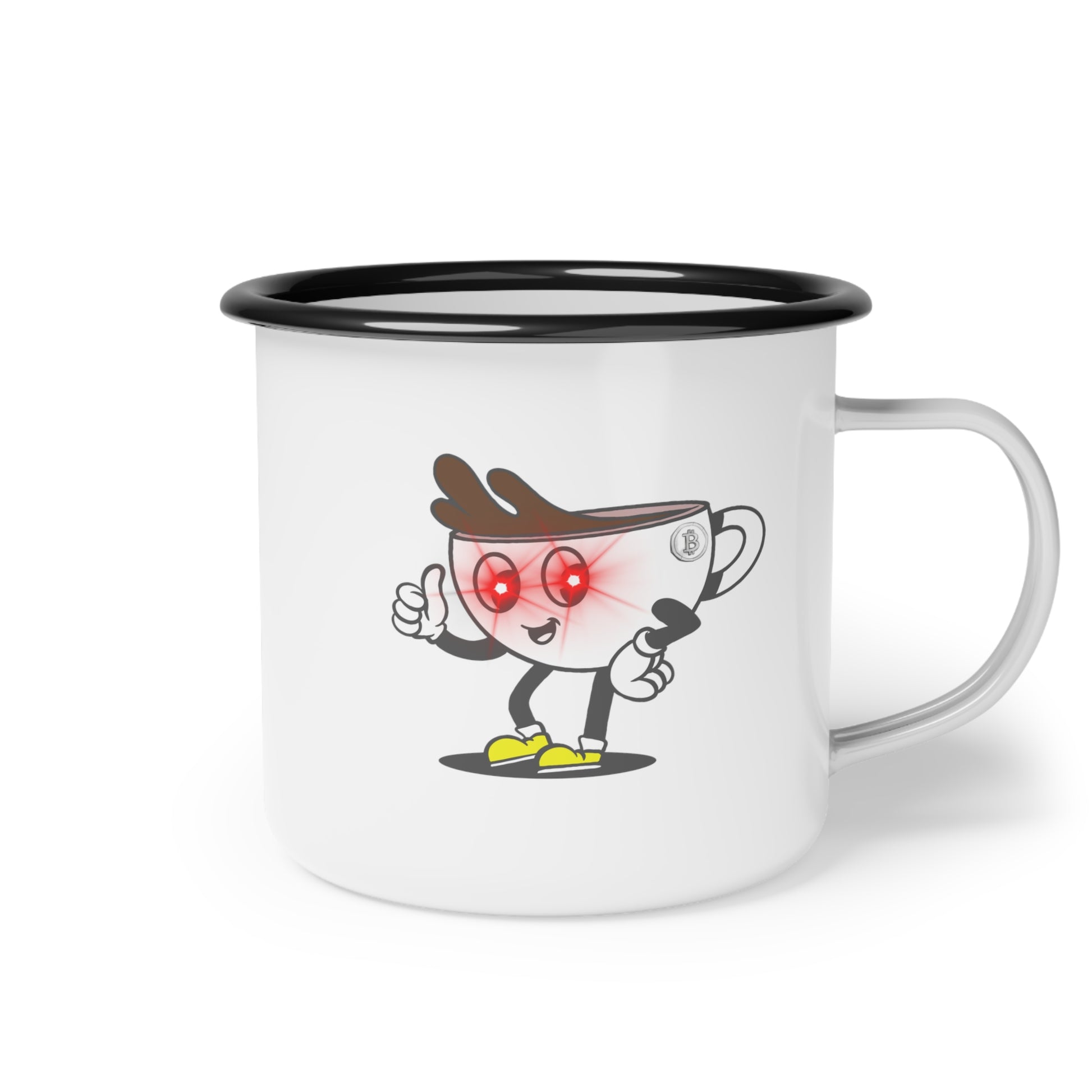Introducing the Proof-O-Perk-inspired mug, a perfect fusion of coffee culture and digital scarcity that lets you show your love for exceptional brews and the Bitcoin revolution in style. Born to be in the Great Outdoors, this custom enamel mug is a camper's best sidekick. With 12oz. for your favorite beverage, these camping mugs are anti-alkali and acid-proof, making them a hard-wearing choice for any adventure. Plus, when at home, they can be tossed in the dishwasher for hassle-free cleaning.